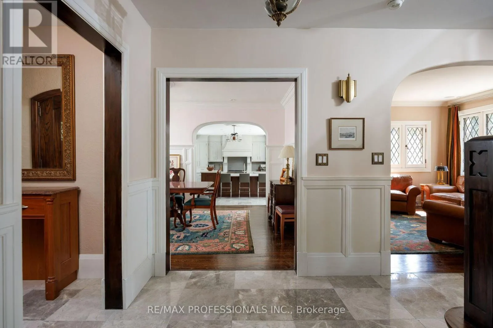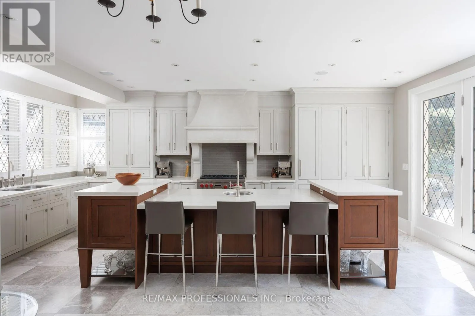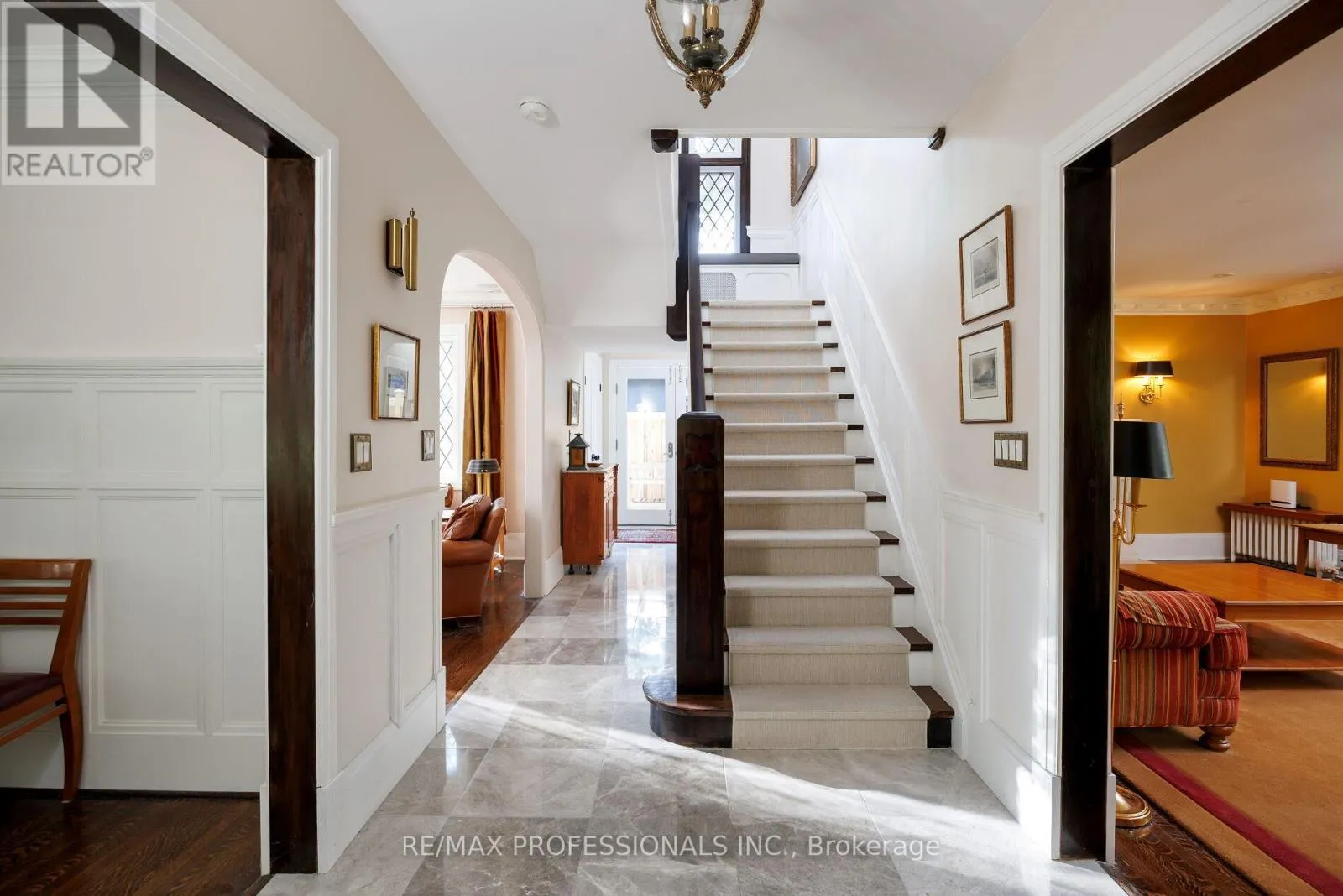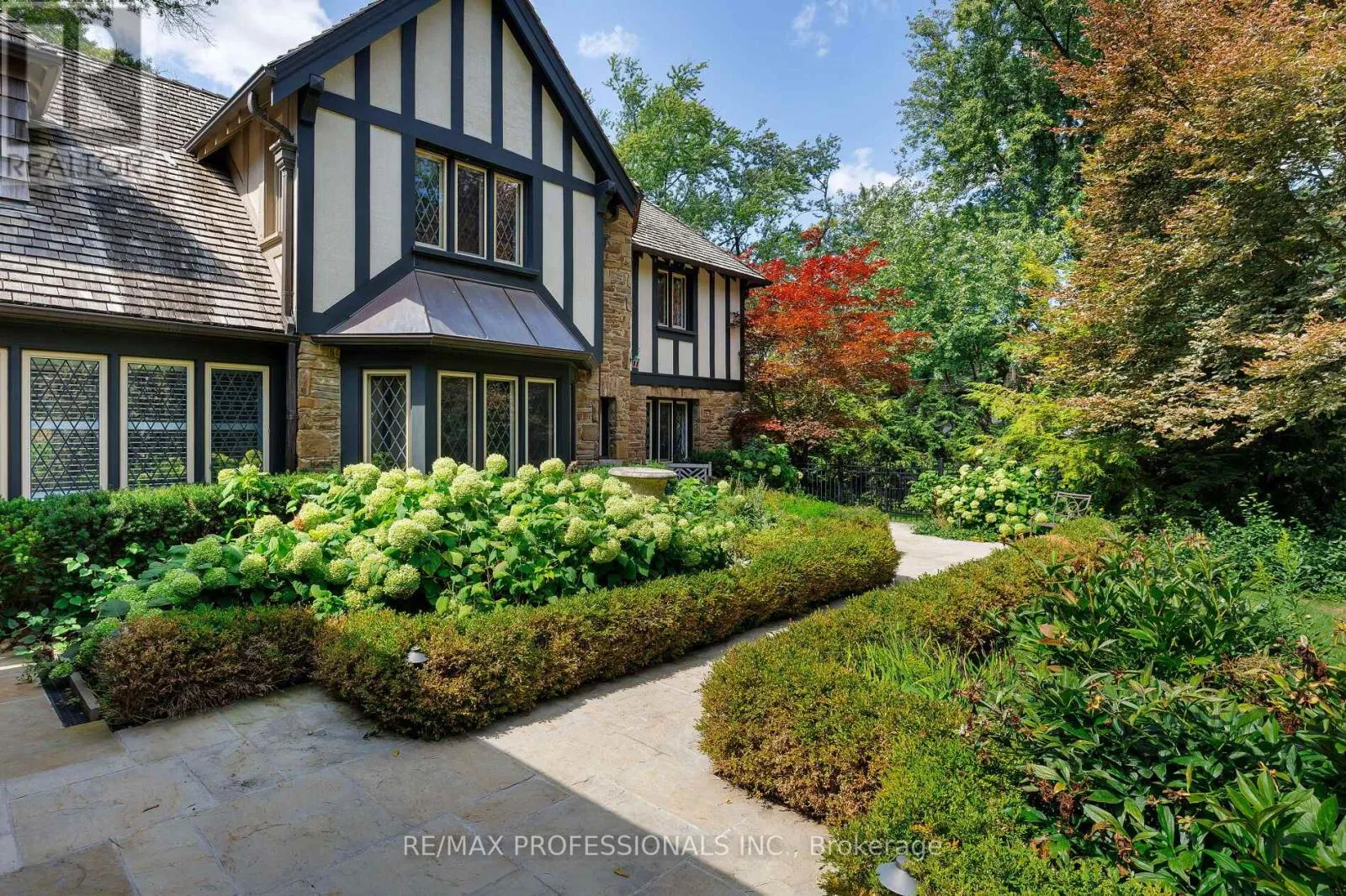 Kingsway Crescent/Queen Mary's Drive Magnificent R. Home Smith Tudor set on an elevated lot across from the Humber River Valley. Absolutely stunning architectural features, accompanied by gorgeous landscaping, an elegant foyer flanked by gracious principal rooms. The high-end, innovative, and luxurious Downsview designer kitchen opens to a courtyard patio, with a step up to a separate family room & formal dining room. The primary bedroom features a five-piece en-suite bath & multiple closets. Three additional bedrooms + two baths complete the charming second floor. Exquisite 3-car garage. Diamond-patterned leaded glass windows, tiger oak hardwood flooring & heated tile floors. #16 Kingsway Crescent remains an accurate aspirational address, perched at the intersection of the Kingsway's two most prestigious streets. Thoughtfully renovated to protect the building's vintage character, it offers a commanding presence, making it an excellent investment. (id:27476)