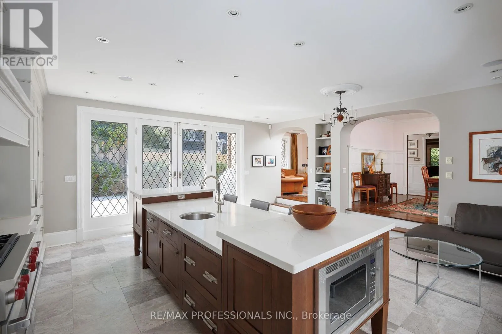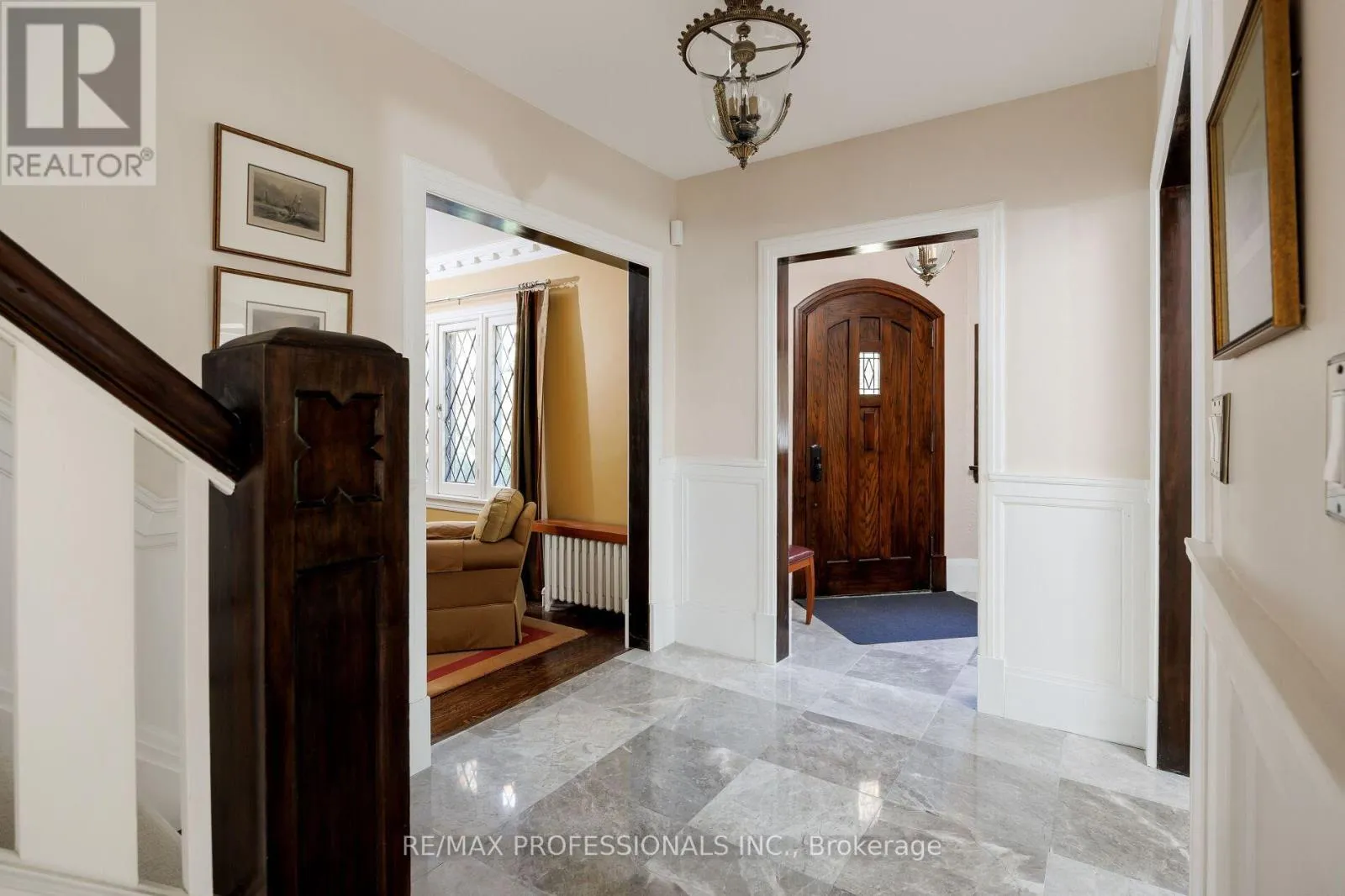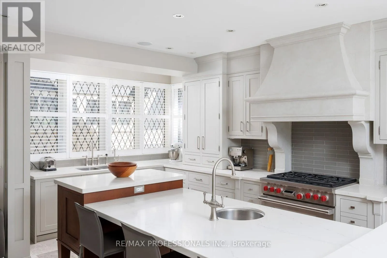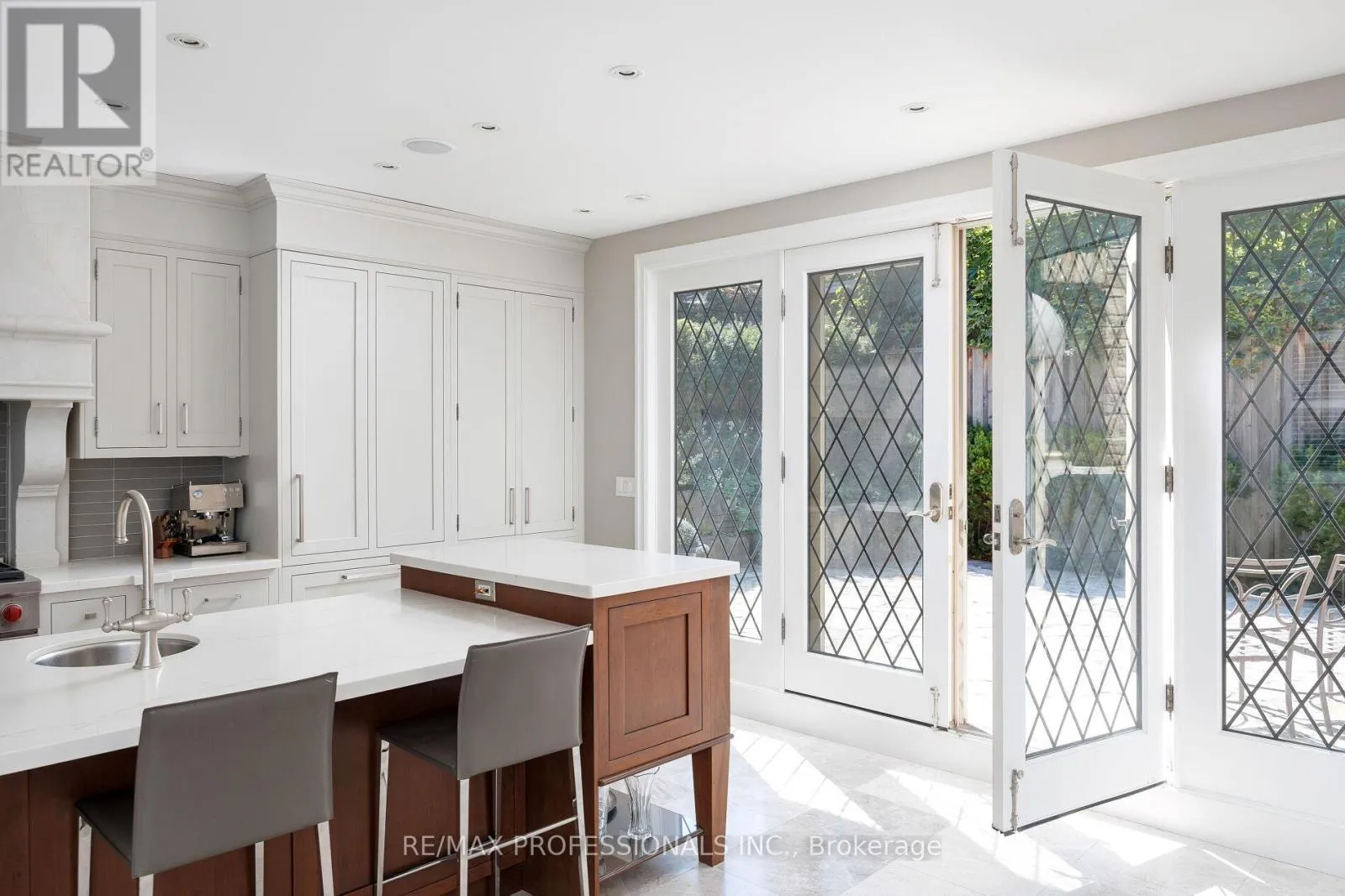 Kingsway Crescent/Queen Mary's Drive Magnificent R. Home Smith Tudor set on an elevated lot across from the Humber River Valley. Absolutely stunning architectural features, accompanied by gorgeous landscaping, an elegant foyer flanked by gracious principal rooms. The high-end, innovative, and luxurious Downsview designer kitchen opens to a courtyard patio, with a step up to a separate family room & formal dining room. The primary bedroom features a five-piece en-suite bath & multiple closets. Three additional bedrooms + two baths complete the charming second floor. Exquisite 3-car garage. Diamond-patterned leaded glass windows, tiger oak hardwood flooring & heated tile floors. #16 Kingsway Crescent remains an accurate aspirational address, perched at the intersection of the Kingsway's two most prestigious streets. Thoughtfully renovated to protect the building's vintage character, it offers a commanding presence, making it an excellent investment. (id:27476)