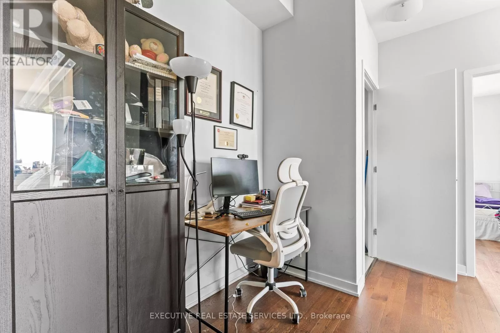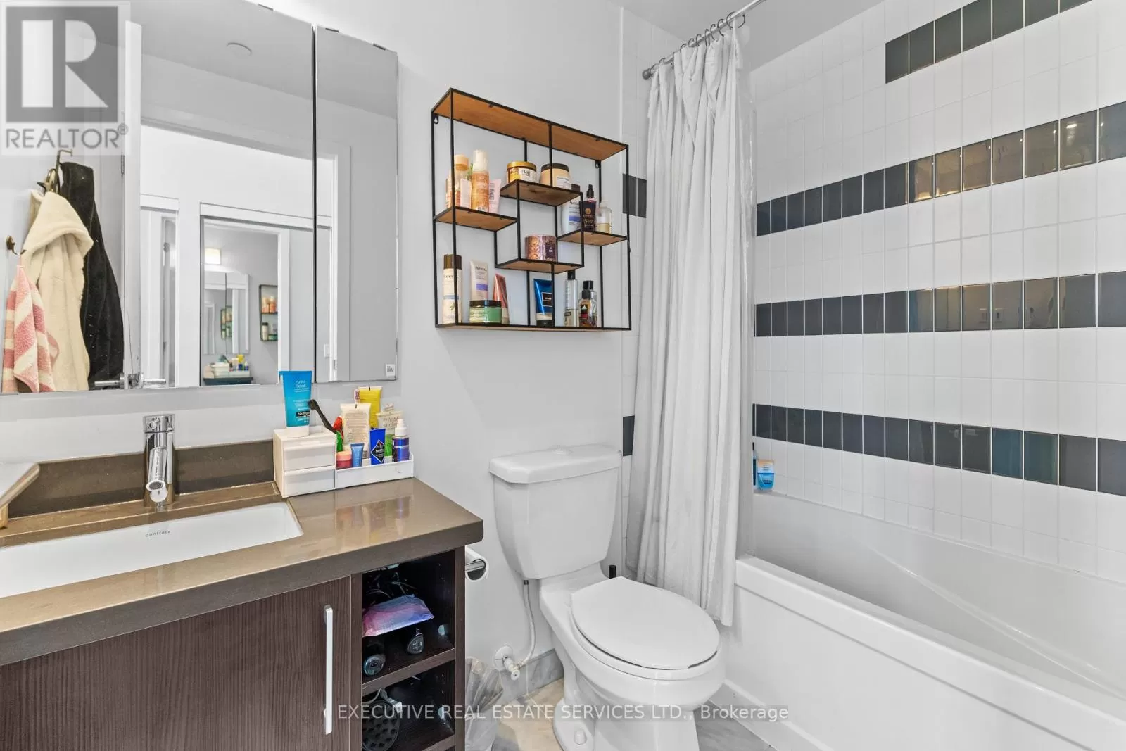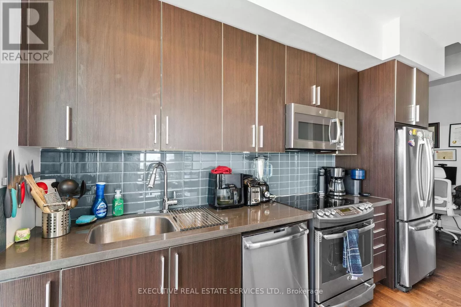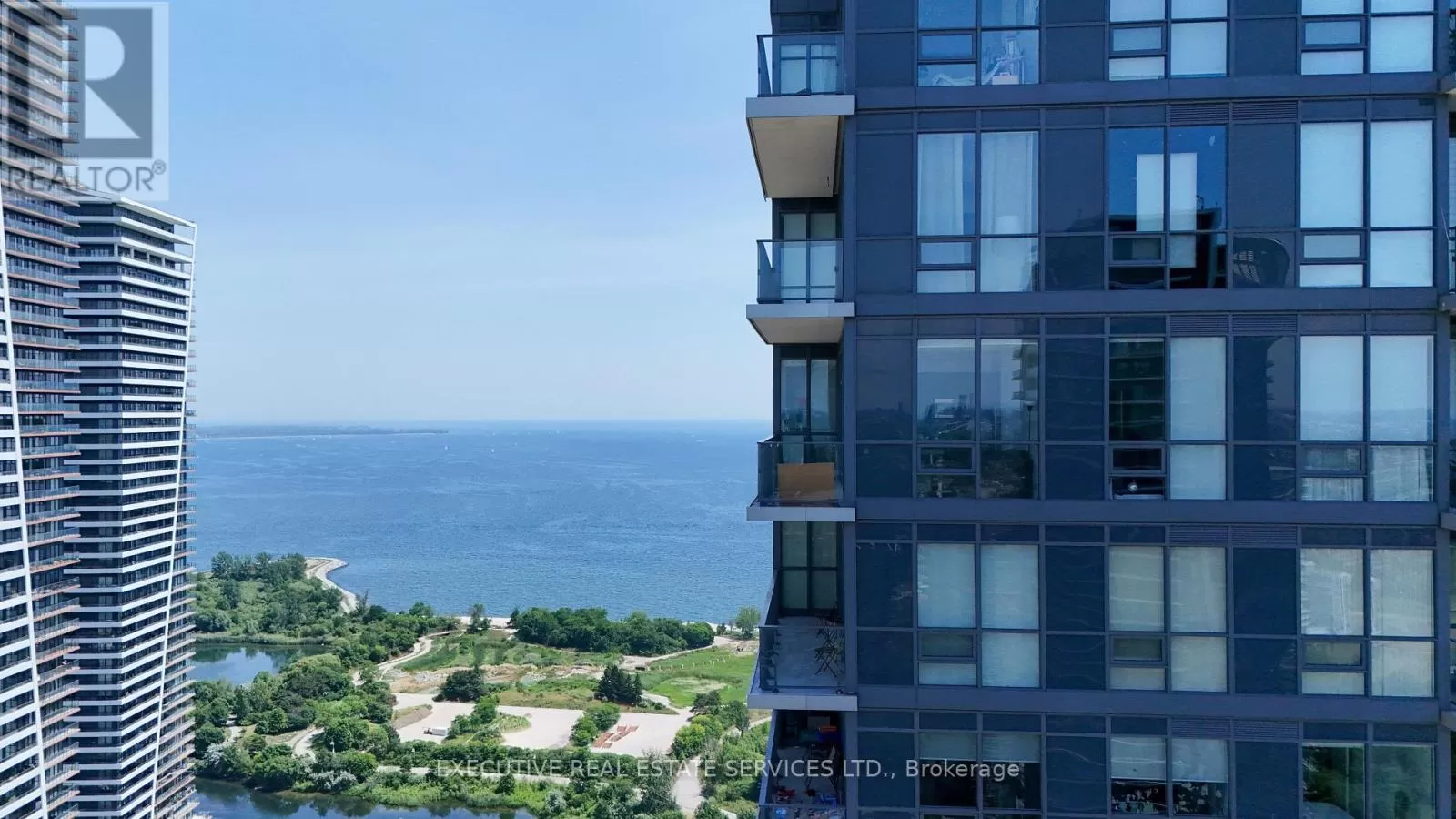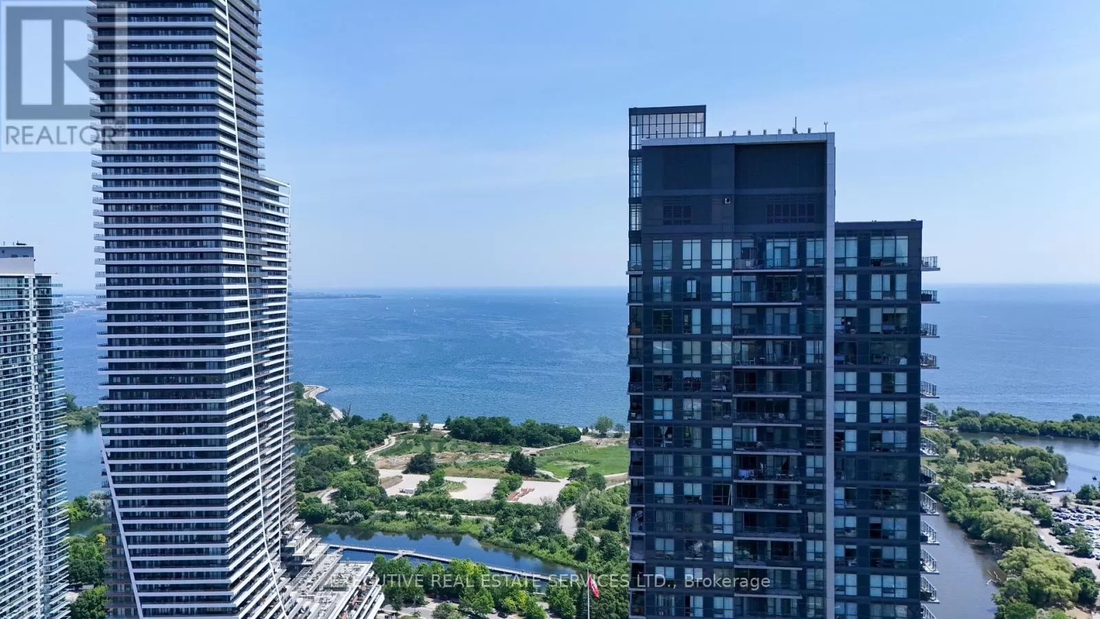 Park Lawn / Lakeshore Welcome to this stunning Lower Penthouse Corner Unit in the highly sought-after Mimico Lakefront Communities! This spacious and sun-filled 2 Bedroom + Study, 2 Bathroom suite offers a functional split-bedroom layout with floor-to-ceiling windows that fill the space with natural light and showcase northeast views of the city and lake. Enjoy the luxury of a huge, fully furnished private terrace, plus an additional balcony ideal for outdoor dining, relaxing, or entertaining above the city skyline.The modern open-concept kitchen is equipped with stainless steel appliances, sleek cabinetry, a glass tile backsplash, and plenty of counter space, flowing seamlessly into the living and dining area. The primary bedroom features a large closet and 4-piece ensuite, while the second bedroom offers generous space and natural light. The versatile study/den is perfect for a home office or reading nook. Additional features include 9-foot ceilings, full-sized stacked washer/dryer, hardwood floors, and ample closet space throughout.This unit comes with one underground parking space and a storage locker. Enjoy exceptional building amenities: fitness centre, outdoor pool, BBQ terrace, resident lounge, library, and more. Direct access to Metro, Shoppers Drug Mart, LCBO, Starbucks, and banks right below the building for unbeatable convenience. Located just steps from Lake Ontario parkland and waterfront trails, and minutes to the QEW, Gardiner Expressway, and Mimico GO Station, this location offers the perfect balance of urban lifestyle and lakeside serenity. Ideal for end-users or investors. Dont miss this rare opportunity to live in one of Etobicokes most vibrant waterfront communities! (id:27476)