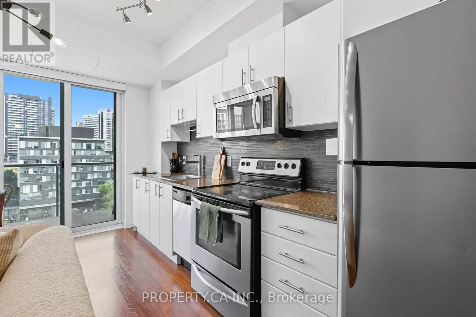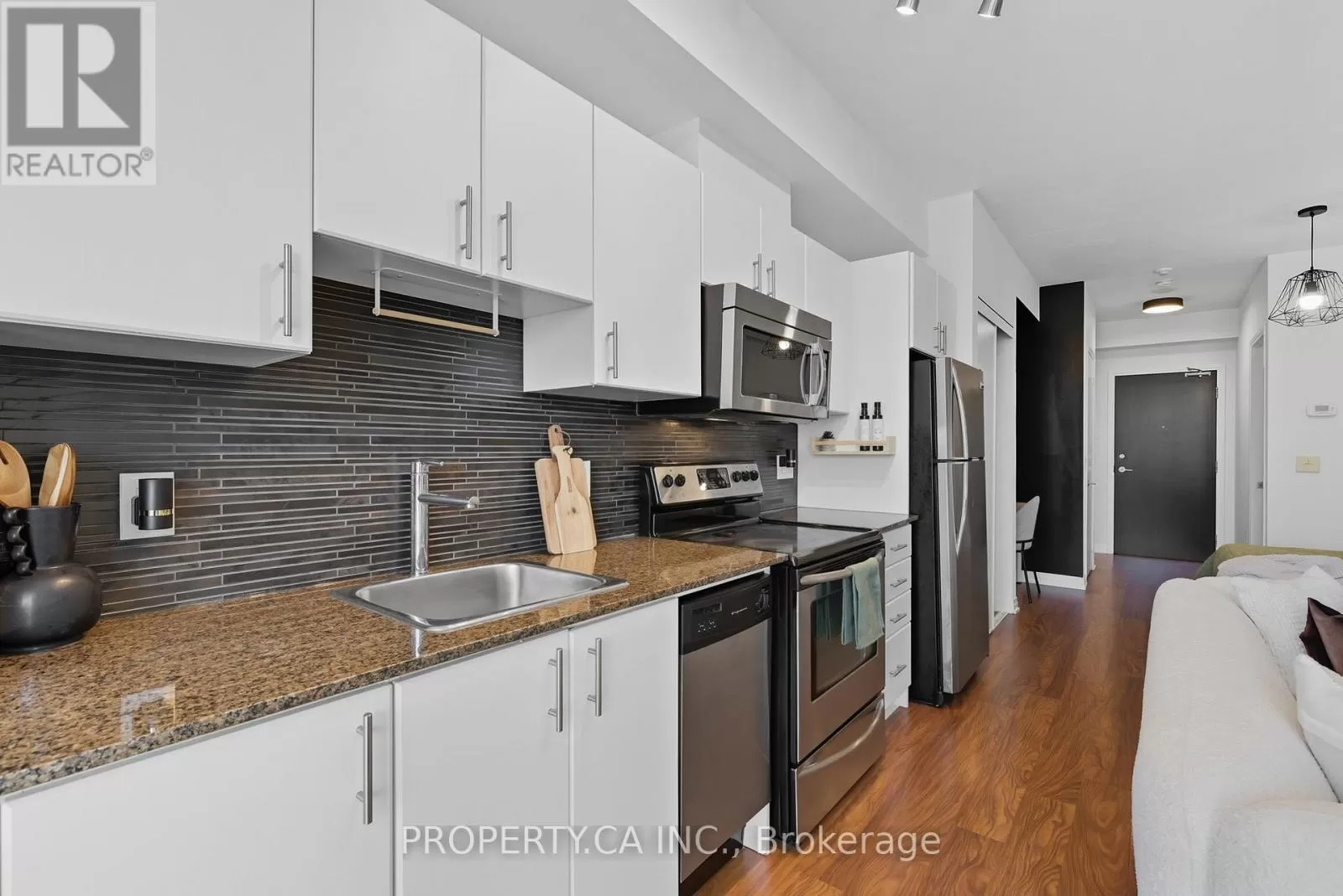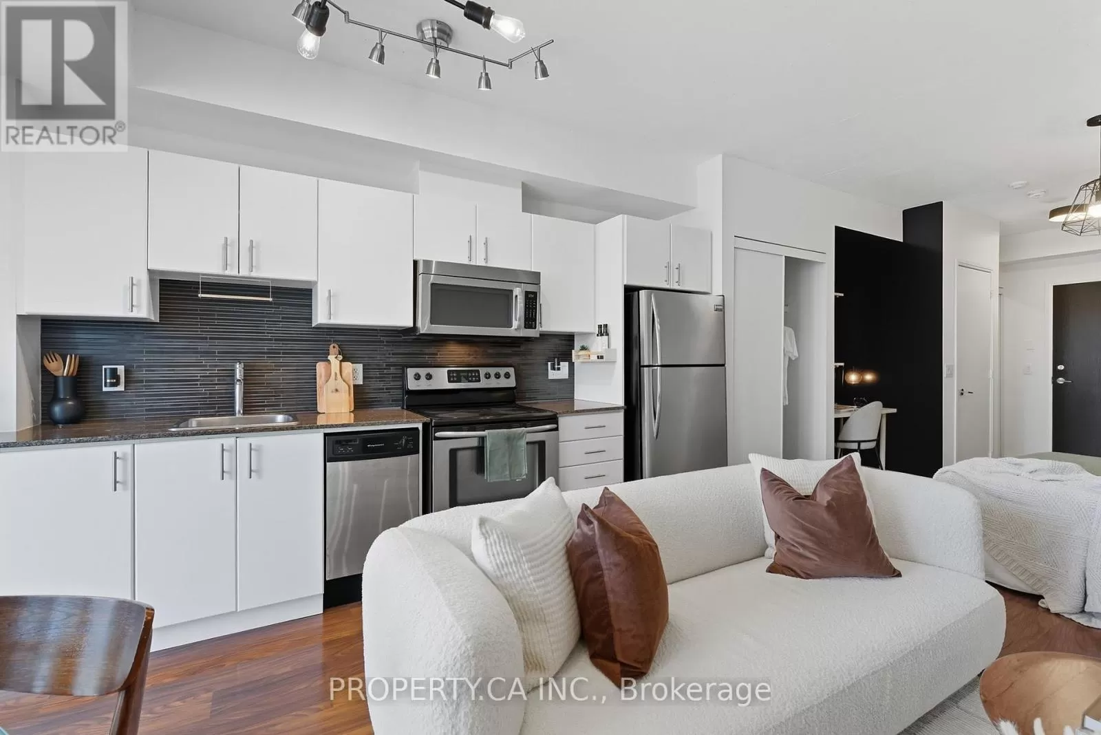 PARLIAMENT ST & DUNDAS ST E Bright, stylish, and smartly designed, this 442 sq. ft. studio offers modern living with no wasted space. Floor-to-ceiling windows showcase a sunny Eastview, while a 77 sq. ft. private balcony extends your living outdoors. Inside, enjoy a sleek 4-piece bathroom, two closets for ample ensuite storage, full-sized stainless-steel stove and fridge-freezer - rare in studio living - and ensuite laundry. One titled parking space and storage locker add everyday convenience. The building elevates your lifestyle with 24/7 security concierge, a gym, recreation & party rooms, plus a rooftop garden with BBQs. In Toronto's revitalized Regent Park, you're steps to the Pam McConnell Aquatic Centre, Regent Park Athletic Grounds & Community Centre, local cafés, and eateries. Located just 12 minutes by streetcar to Yonge-Dundas and 3 minutes to the DVP this home perfectly balances comfort, community, and connectivity. Building Amenities Include: Well equipped gym; guest suites; party and rec' rooms; rooftop garden patio w/BBQs; visitor parking and 24 hour security concierge. (id:27476)
