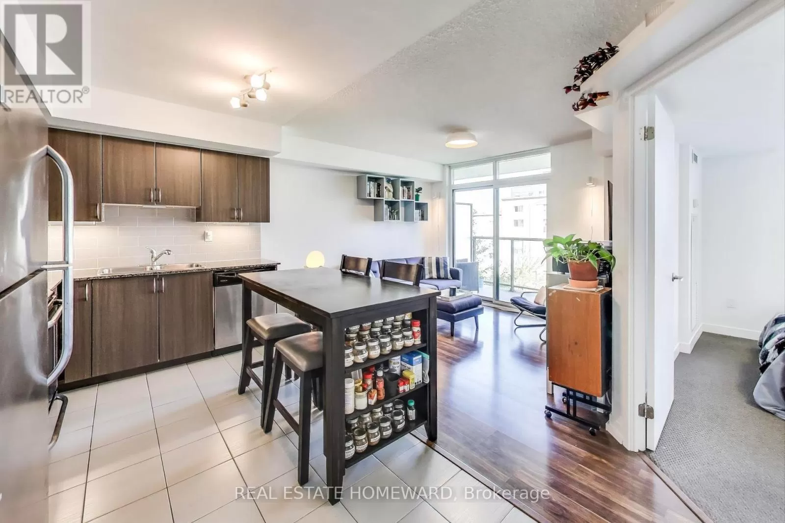 Cross Streets: Lansdowne/Dupont. ** Directions: Southwest corner of Lansdowne and Dupont. Seeking the perfect starter home, but sick of cramped living spaces and non-functional kitchens? Look no further. Unit 406 at 816 Lansdowne is the rare 1-bedroom unit that allows for both living and entertaining. Large, open concept kitchen allows for tons of storage, with living space and walkout to balcony. Working from home? Multiple options for office set-up, including in both living room and oversized primary bedroom, complete with double closet, or escape to newly opened Toronto Public Library branch around the corner. Double closet and laundry at entry ensure winter jackets and boots are kept out of sight. Located next to stairwell - forget about noisy neighbours. Fantastic location with bus line outside your door, and TTC and UP Express stations within a few minutes' walk. Grocery store, pharmacy, and other amenities a few minutes away. Easy walk to Geary Ave. (Blood Brothers, Famiglia Baldassare, Standard Time, Dark Horse Coffee and others), great restaurants and shops on Dupont Ave (Dotty, Lucia, Gus Tacos, Hale Coffee), and Bloorcourt Village (Sugo, Rurubaked, Seoul Shakers and more). (id:27476)