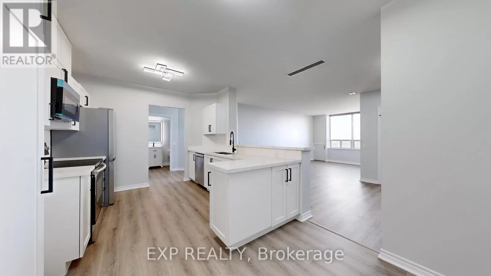 Cross Streets: Brimley Rd / Ellesmere Rd. ** Directions: Hwy 401 East to Brimley Rd. South, East on Omni Dr. Spectacularly Renovated Recently (July and August 2025). Freshly painted throughout, new kitchen, bathrooms, soft close cupboards and drawers, flooring, LED light fixtures, hardware, quartz countertops, Brand New: Stainless Steel Fridge, Dishwasher, Microwave. Custom Cellular Window Blinds throughout. Bonus Blackout Blinds for both Bedrooms for more restful sleep! Modern Matching Electric Light Fixtures throughout! Ready to be appreciated and lived in by the New Owners! Welcome to luxury living at Penthouse 09, where elegance meets modern sophistication. This stunning, spacious 2-bedroom, 2-bath condo offers Higher 8 ft 6 in ceilings, vs. lower floors (8 ft), breathtaking city views, enchanting day and night. Professionally renovated, the chefs kitchen shines with quartz countertops, undermount sink, a stylish backsplash, soft-close cabinetry with sleek black handles, and brand-new stainless steel appliances. Luxury vinyl plank floors flow throughout, leading to serene rooms. Spa-inspired bathrooms feature quartz counters, undermount sinks, anti-fog LED mirrors, and modern fixtures. A stackable washer/dryer adds everyday convenience. Freshly painted in soothing greys, this 1,128 sq. ft. penthouse includes a striking accent wall that elevates the space. Penthouse 09 ensures ultimate privacy with no one above you, while its unbeatable location offers every convenience. Just a 1-minute walk to Scarborough Centre Station and a 6-minute walk to Brimley Rd. transit, commuting is effortless. Scarborough Town Centre, the Civic Centre, and Albert Campbell Square with its gardens, skating rink, and outdoor events are all nearby. Nature lovers will appreciate Birkdale Ravine, home to trails, a playground, and a vibrant community centre. For peace of mind, Scarborough Health Network is only 2.2 km away. This is more than a home; its a lifestyle where every day feels like a luxury retreat. Welcome to 115 Omni Dr., Penthouse 09 your dream sanctuary in the sky. Excellent Value :) (id:27476)
