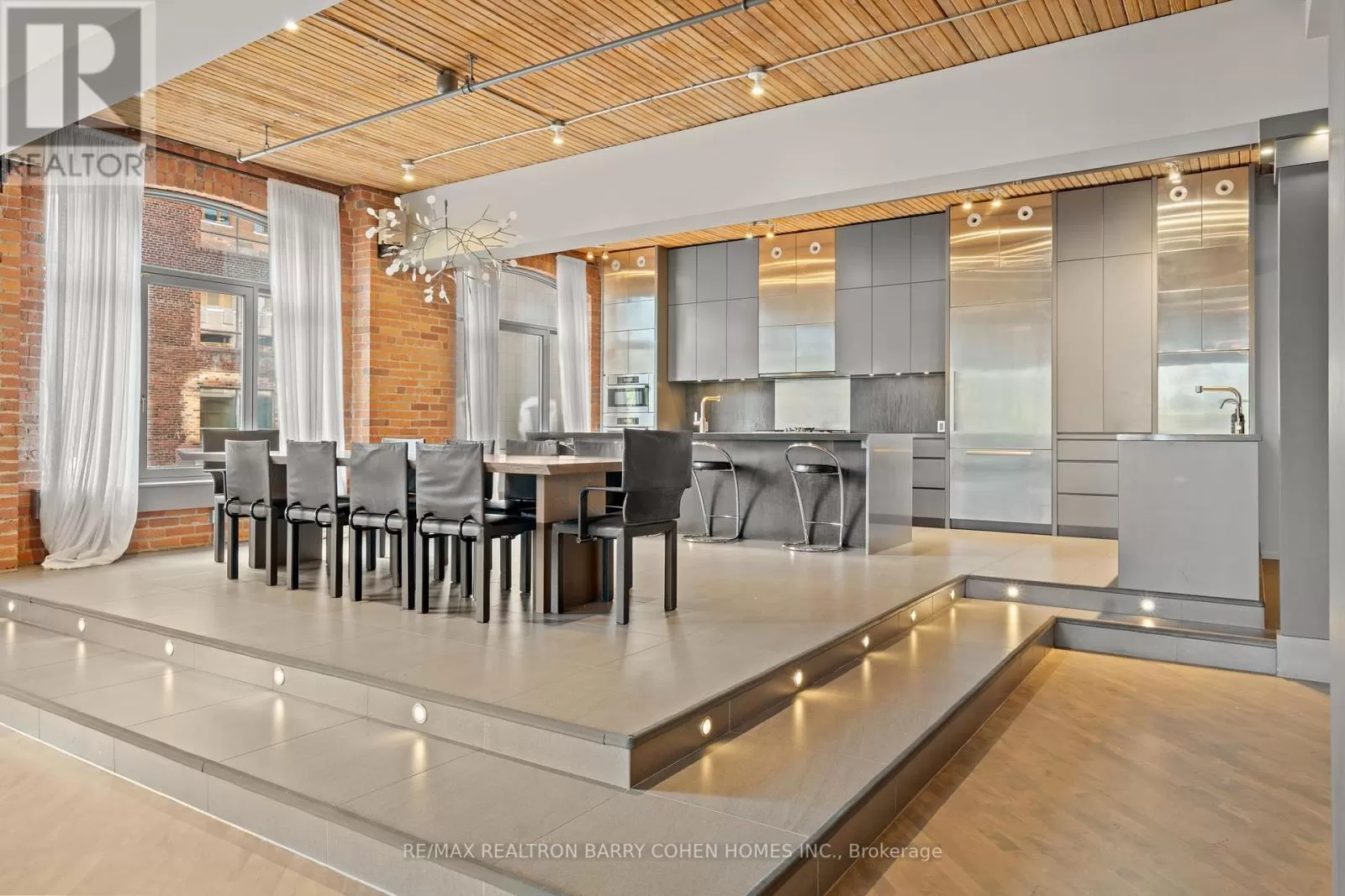 Cross Streets: Wellington St W/Spadina Ave. ** Directions: East of Portland. The Pinnacle Of Toronto Loft Living In High-Demand King West Neighbourhood. Remarkable Contemporary Space Features Approx 5000 Sqft With Direct Elevator Access, Exposed Brick, Soaring 12 ft Ceilings And Tall South- And West-Facing Windows. 2 Stunning South Facing Juliette Balconies. The Chef's Kitchen, Featuring Stainless Steel Miele Appliances And Long Centre Island, Is Open In Design To The Raised Dining Area, Enormous Living Room Complete With Gas Fireplace, And Expansive Wet Bar - The Perfect Entertaining Space. Primary Suite Features Its Own Gas Fireplace, Large His & Hers Dressing Rooms And An Enviable Spa-Like 7pc Ensuite. The 2nd Bedroom Boasts An Expansive Seating Area To Serve As A Family Room, Plus A Concealed Murphy Bed And 4pc Semi-Ensuite While A Bonus Space Off The Living Room Makes For The Ideal Flex Space For A Home Office, Studio Or 4th Bedroom. An Entertainer's Delight In The Heart Of King West! (id:27476)