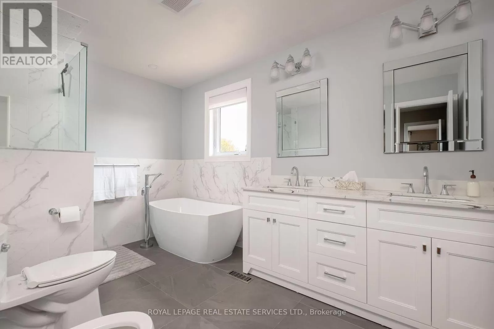Royal York & The Westway Live like royalty on Westroyal! Welcome to this sensational 5+1 bedroom, 4 bathroom residence where size meets sophistication. The possibilities are endless,with a design ideal for family living, multigenerational lifestyles, or the flexibility of an in-law suite. From the moment you step into the grand foyer, soaring ceilings, gleaming porcelain tile, and a sweeping staircase create an immediate sense of scale and elegance.The expansive main floor flows seamlessly between formal and casual spaces.A sun-filled living room, refined dining room, and inviting family room with a wood-burning fireplace offer the perfect balance of warmth and grandeur. At the heart of the home, the newly renovated (2024) eat-in kitchen combines modern functionality with timeless style,opening gracefully to the outdoors. Step onto the covered porch and into a fully fenced backyard with a generous lawn and storage ideal for entertaining or private retreat.Upstairs, discover three large, beautifully appointed bedrooms and a four-piece main bath. The luxurious primary suite is a sanctuary unto itself, featuring a Juliette balcony, a walk-through walk-in closet, and a spa-inspired six-piece ensuite bath.The lower level enhances versatility with a separate entrance and access to the double car garage. A vast recreation and living area with a gas fireplace is complemented by a full kitchen, above-grade windows, an additional bedroom, a four-piece bath, and an oversized laundry room with built-in storage, double sinks, and ample space.Perfectly positioned, this home offers everyday easewalking distance to excellent schools, TTC, shopping, Starbucks, and just one bus to the subway, UP Express, and GO Train.UP Express ensures a seamless commute downtown, while quick highway and airport access add convenience. Surrounded by parksincluding Westway, Alex Marchetti, Valleyfieldyoull enjoy yearround outdoor activities such as pickleball, tennis, skating, and scenic walks.Flat roof(2024)Kitchen(2024) (id:27476)