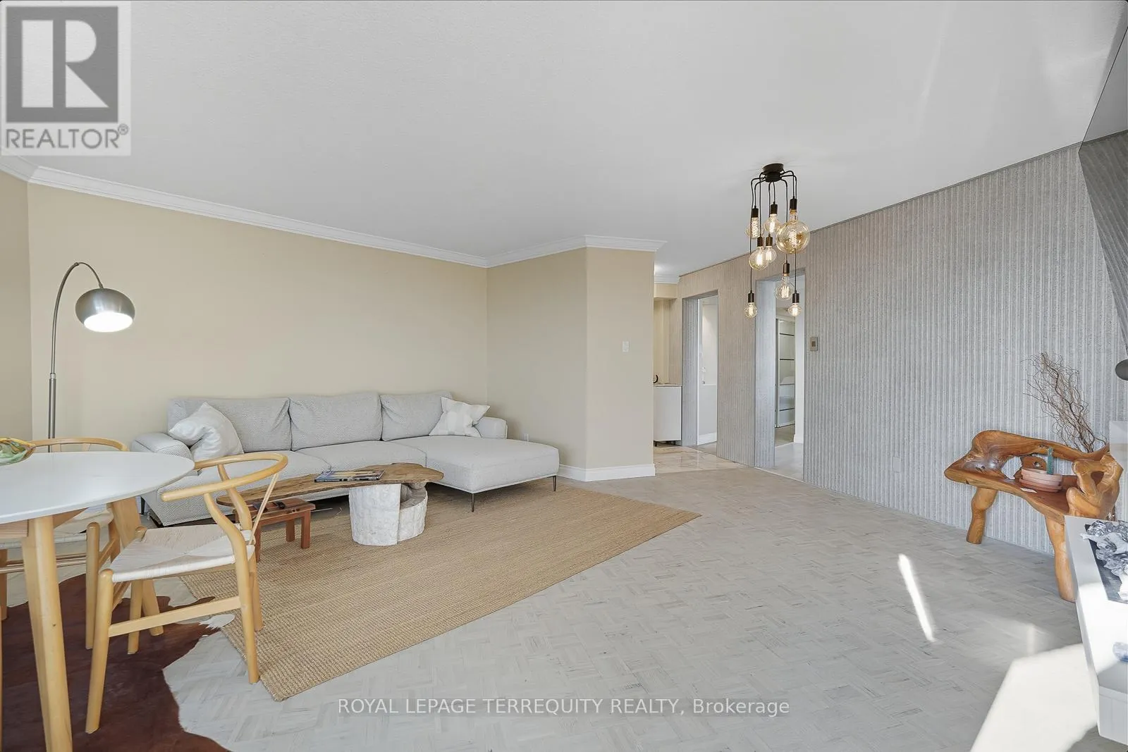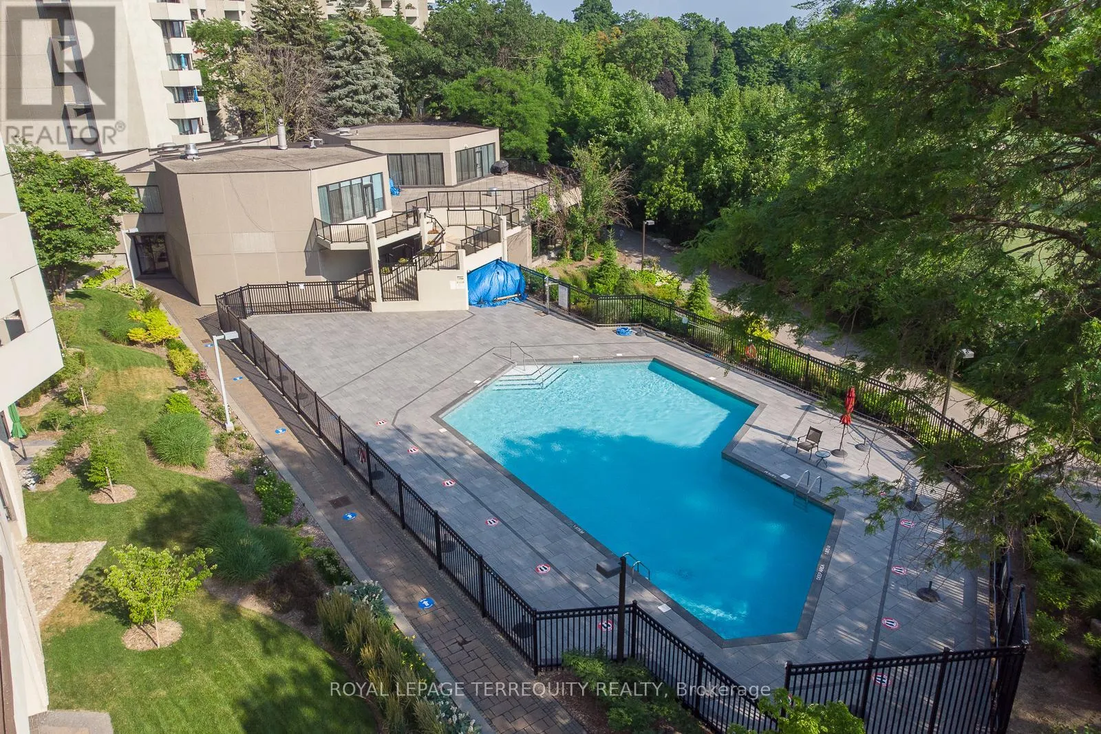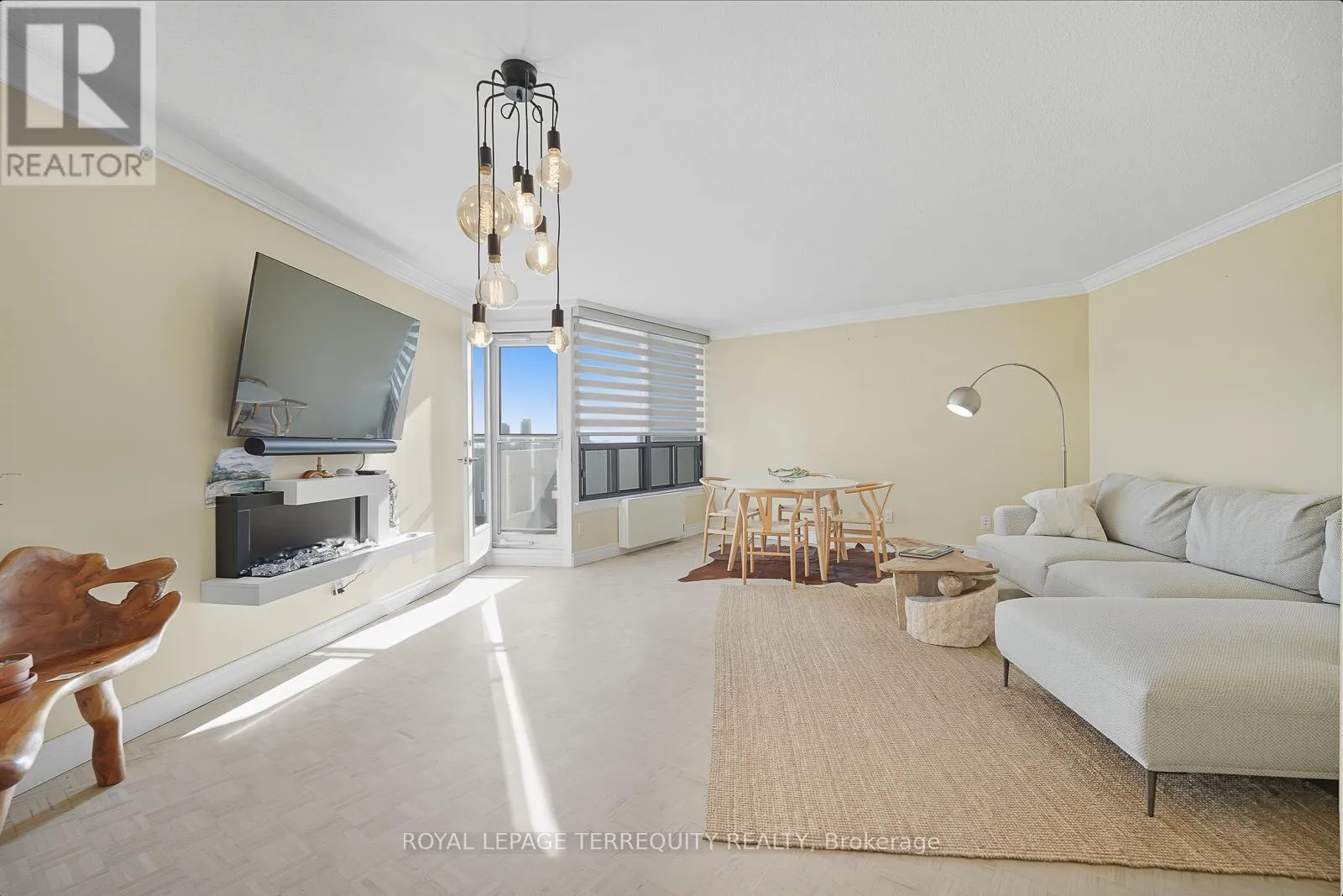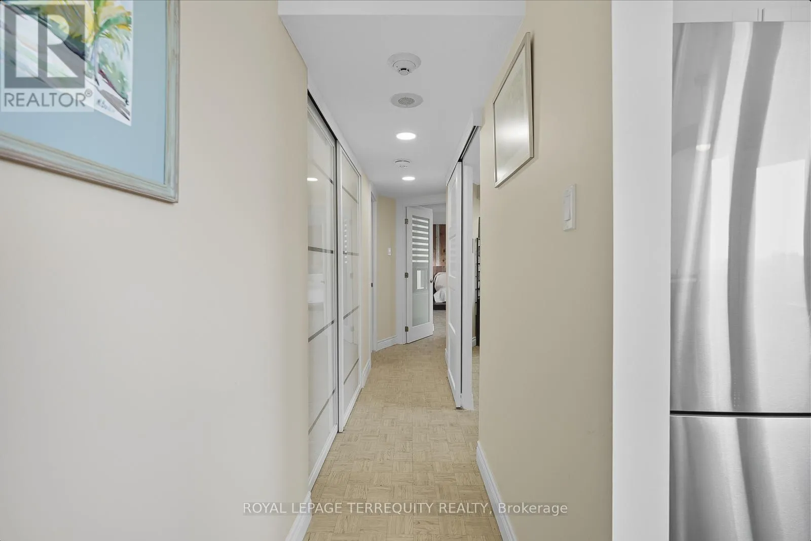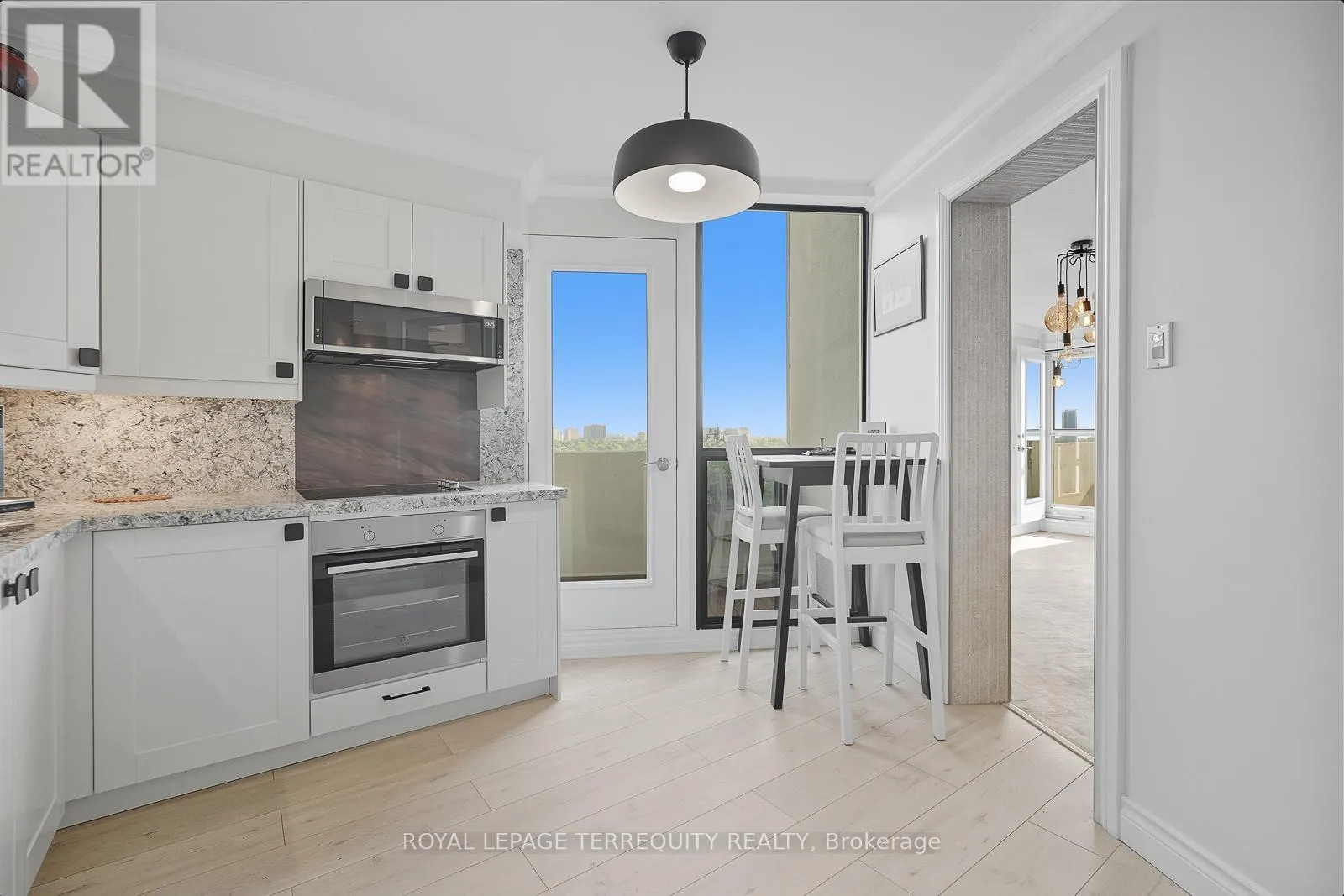 Burnhamthorpe/Mill WELCOME TO THE MASTERS. This 2-bedroom & 2 washroom one-level condo suite features a large master bedroom with an impressive walk-in closet, 3pc ensuite, and walk-out to private balcony. The stylish updated kitchen includes a walkout to a second balcony where you can enjoy barbecuing. The open concept living & dining area offers yet another walk-out to a balcony showcasing spectacular views of the downtown Toronto skyline.DO NOT MISS! (id:27476)