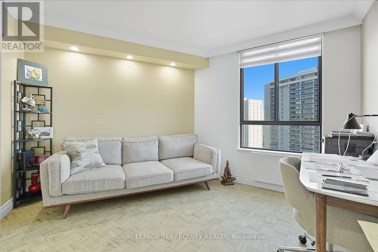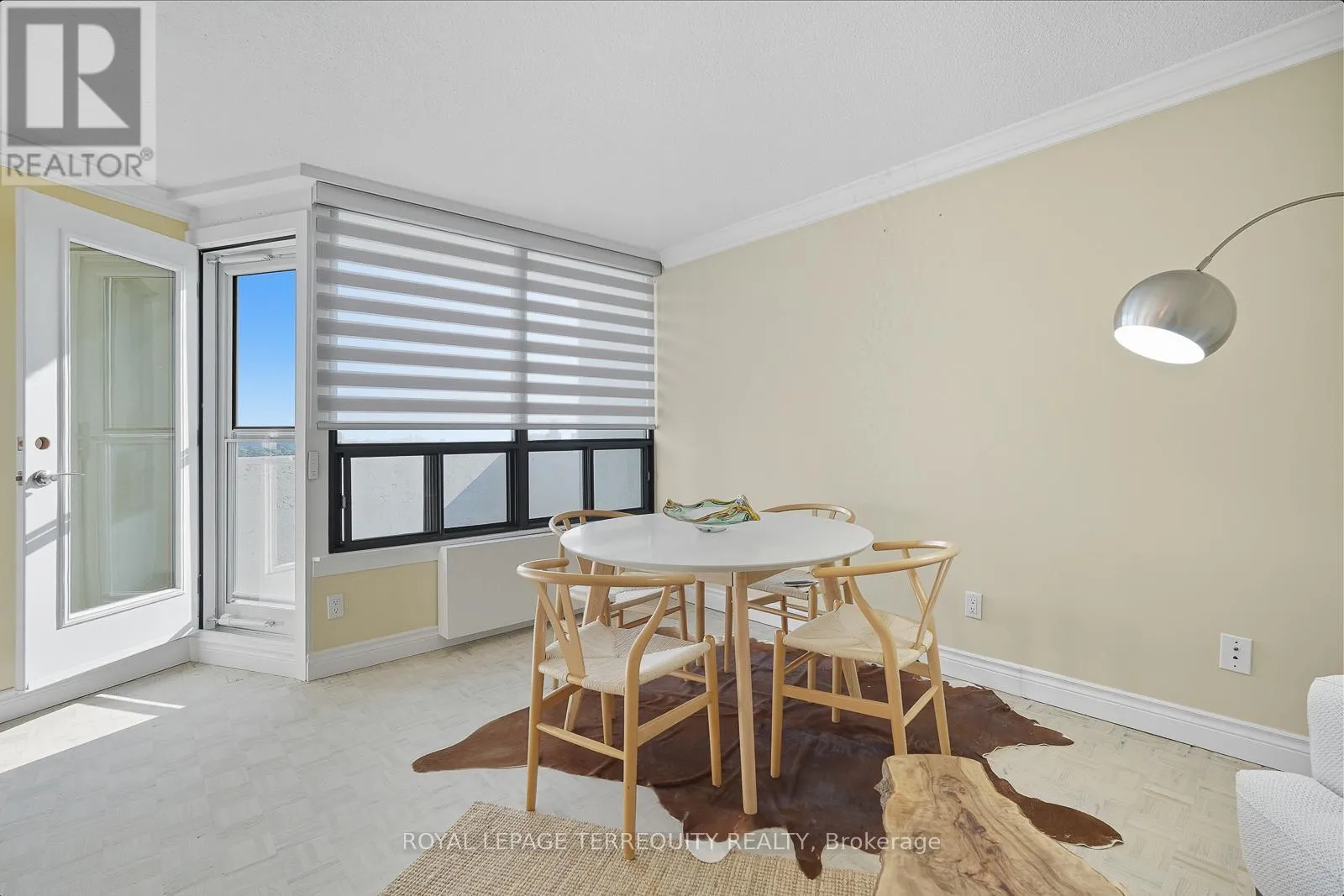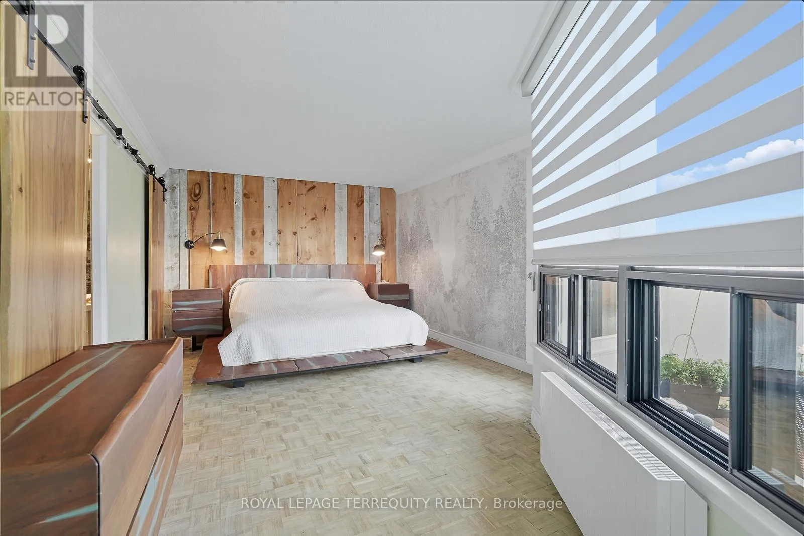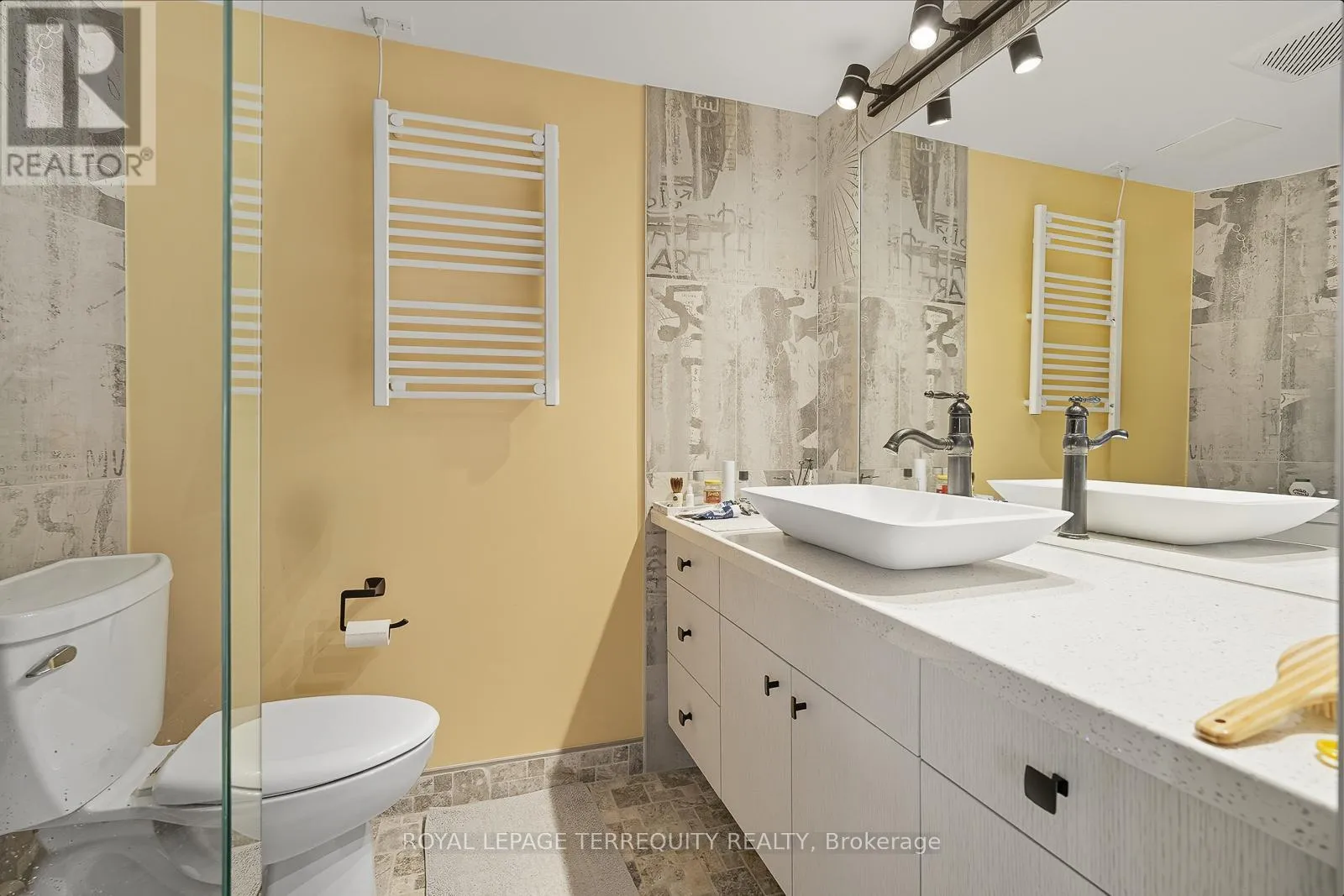 Burnhamthorpe/Mill WELCOME TO THE MASTERS. This 2-bedroom & 2 washroom one-level condo suite features a large master bedroom with an impressive walk-in closet, 3pc ensuite, and walk-out to private balcony. The stylish updated kitchen includes a walkout to a second balcony where you can enjoy barbecuing. The open concept living & dining area offers yet another walk-out to a balcony showcasing spectacular views of the downtown Toronto skyline.DO NOT MISS! (id:27476)