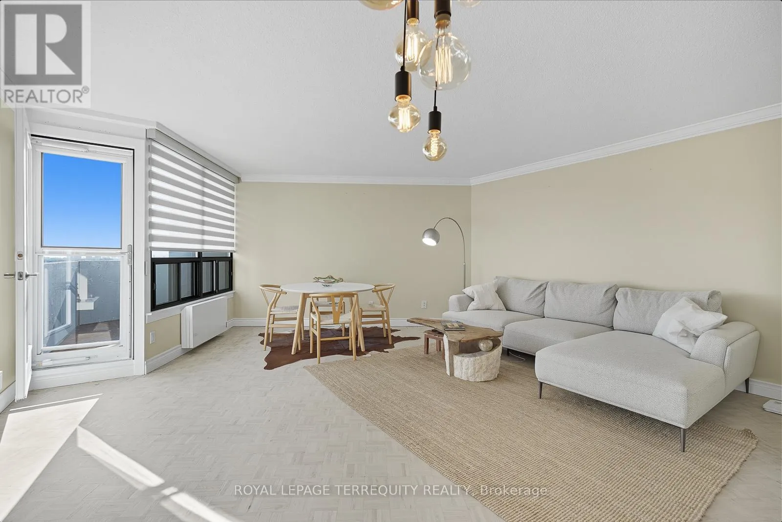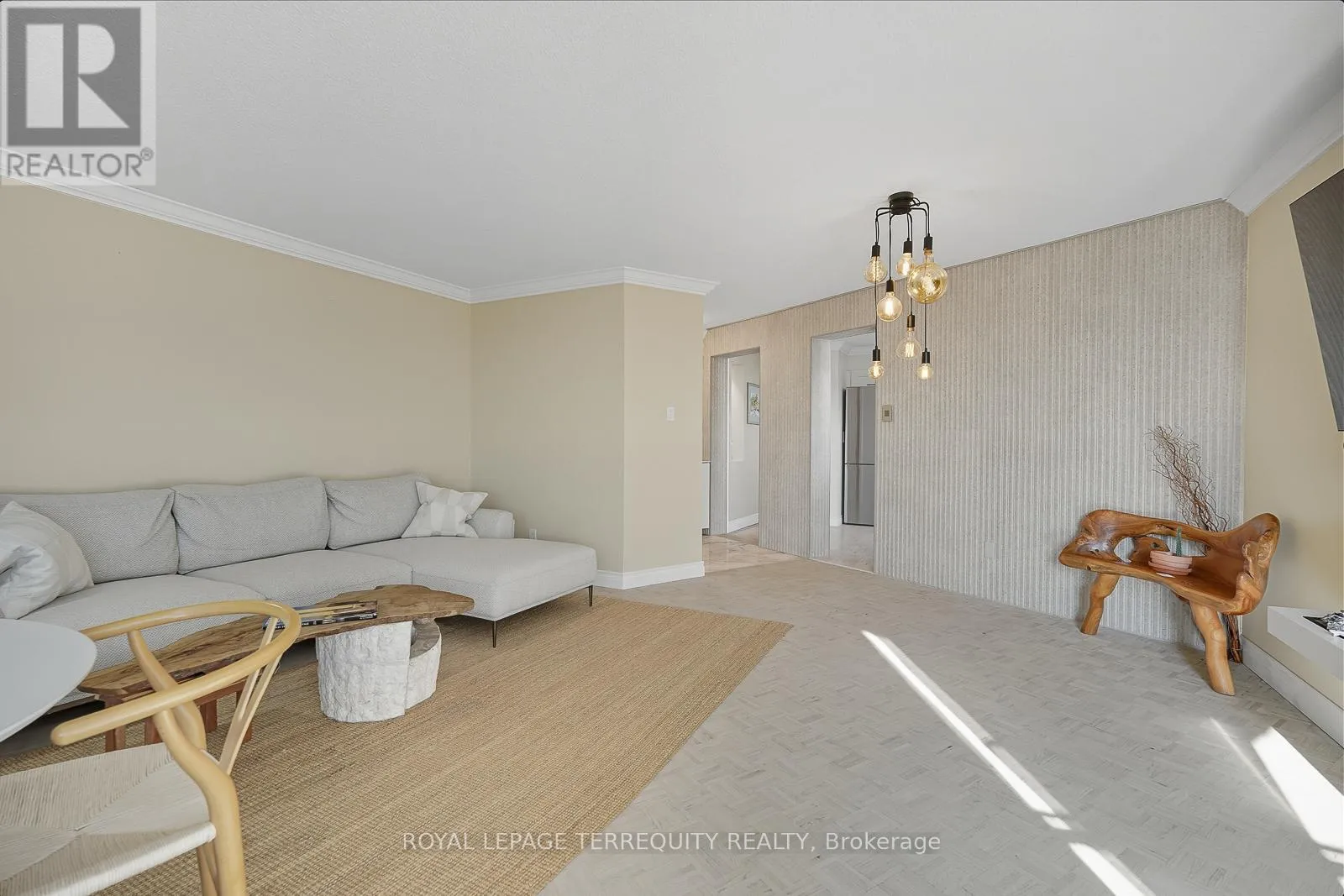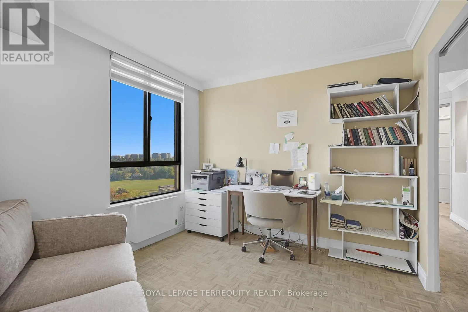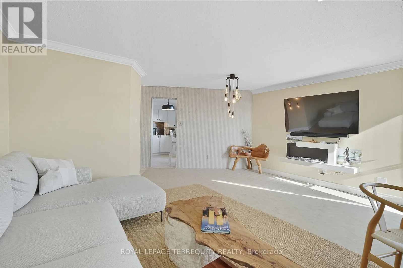 Burnhamthorpe/Mill WELCOME TO THE MASTERS. This 2-bedroom & 2 washroom one-level condo suite features a large master bedroom with an impressive walk-in closet, 3pc ensuite, and walk-out to private balcony. The stylish updated kitchen includes a walkout to a second balcony where you can enjoy barbecuing. The open concept living & dining area offers yet another walk-out to a balcony showcasing spectacular views of the downtown Toronto skyline.DO NOT MISS! (id:27476)