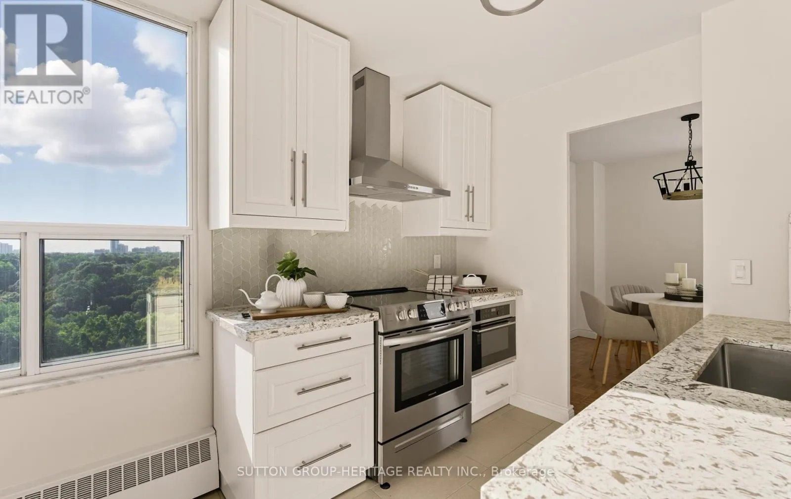 Cross Streets: Spanbridge & Vicora. ** Directions: Don Mills & Gateway Blvd. Your Perfect Toronto Condo Awaits! Step into this stunning bright and spacious 3-bedroom, 2-bathroom corner suite, where comfort meets convenience in the heart of North York. Featuring panoramic south, east & west facing ravine views, this home offers a serene backdrop that's rare to find in the city.The primary retreat comes complete with its own 2-piece ensuite and double closet, while the functional L-shaped living and dining room is bathed in natural light perfect for both everyday living and entertaining. Enjoy your morning coffee or unwind in the evening on the oversized balcony, seamlessly accessed through sliding glass doors.You'll love the brand-new open concept kitchen (2020), freshly painted interiors, and modern lighting updates that make this home move-in ready. Additional perks include a large in-suite storage room, parking, locker, and all-inclusive maintenance fees that cover utilities and Rogers cable.This well-managed building boasts incredible amenities: an indoor pool, fitness centre, sauna, and on-site convenience store. With TTC at your doorstep, and quick access to the DVP, 401, and downtown Toronto, commuting is effortless.Everything you need is minutes away schools, parks, libraries, community centres, places of worship, East York Town Centre, Costco, Superstore, grocery stores, and more. New lobby (2024). This is more than a condo its a lifestyle. Don't miss this rare opportunity to own a spacious, upgraded home in a prime North York location. (id:27476)