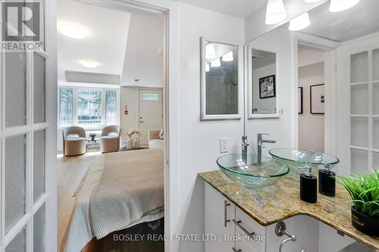Jarvis/Wellesley Tucked away on a quiet, tree-lined street in the heart of the city, this freshly renovated ground-level studio is completely move-in ready, offering the perfect blend of charm, function, and downtown convenience. The suite features new flooring, fresh paint, and a thoughtfully designed open layout. You'll love the walk-out to a private patio, ample storage, a walk-in closet, and an en-suite laundry, combining style and practicality in one inviting space. Whether you're a first-time buyer, investor, or looking for a stylish pied-Ã -terre, this unit checks all the boxes. The boutique building has a welcoming community feel and is just steps from transit, shops, dining, and everything downtown Toronto has to offer. A genuine turnkey opportunity in a vibrant and connected location. (id:27476)
