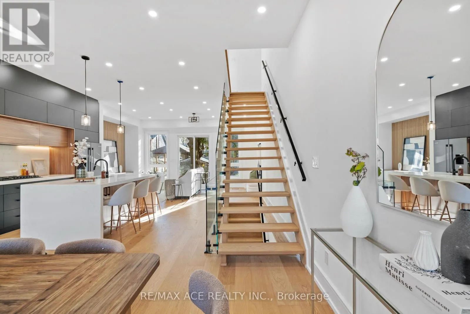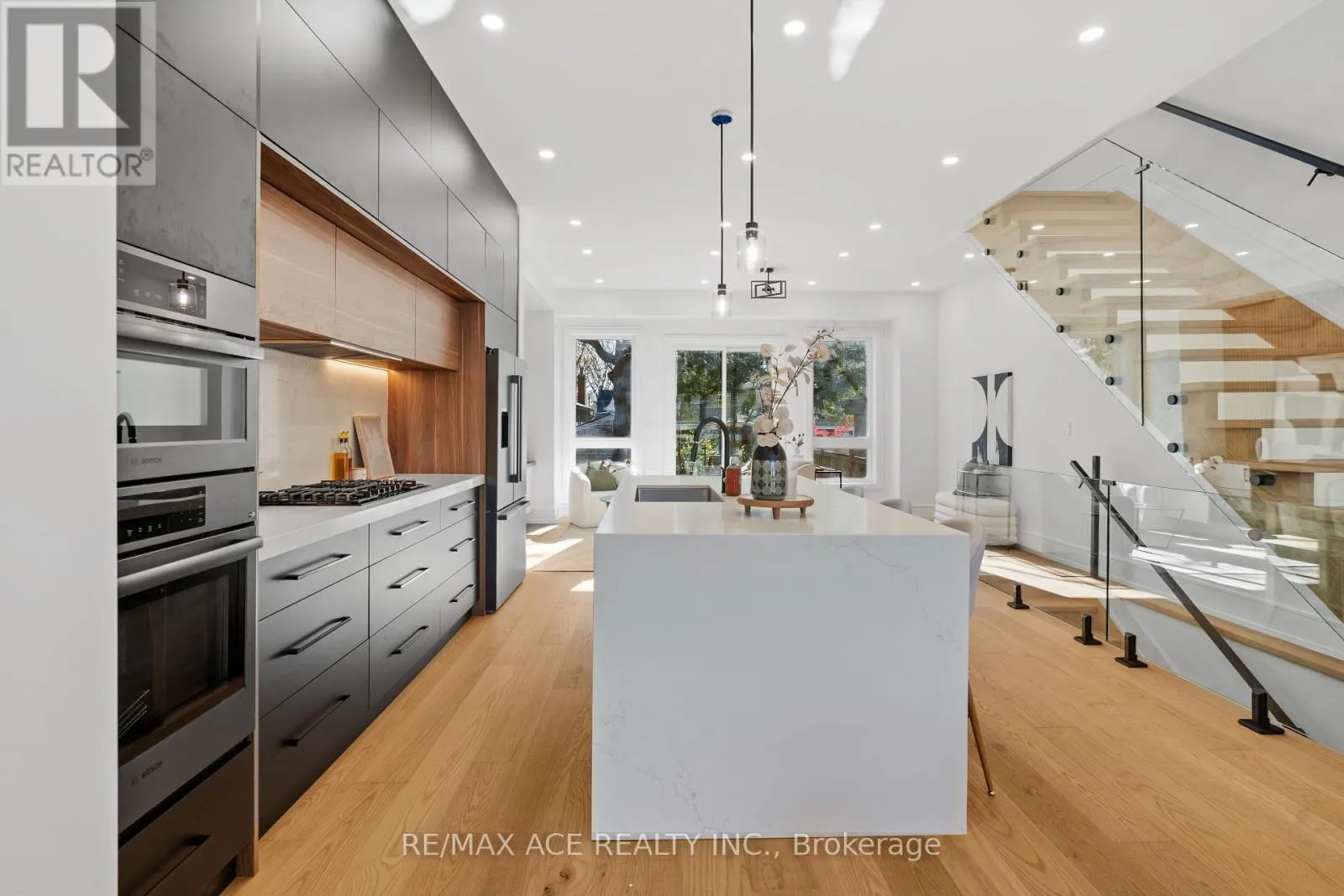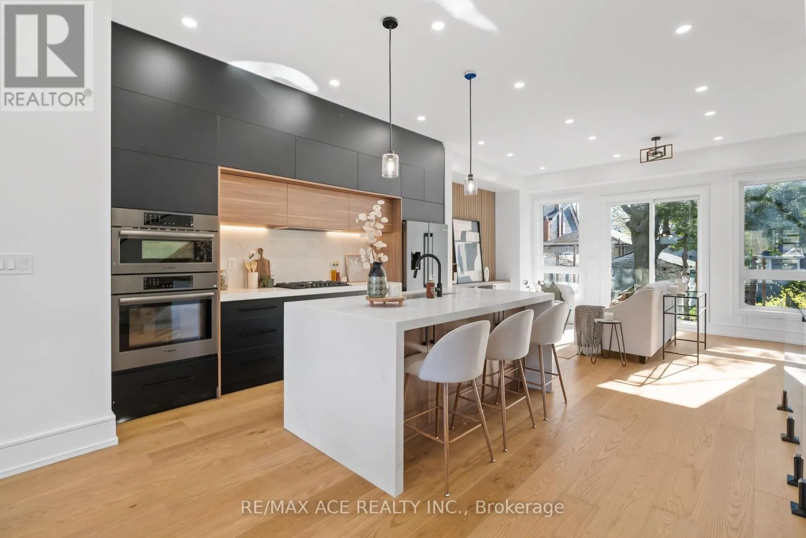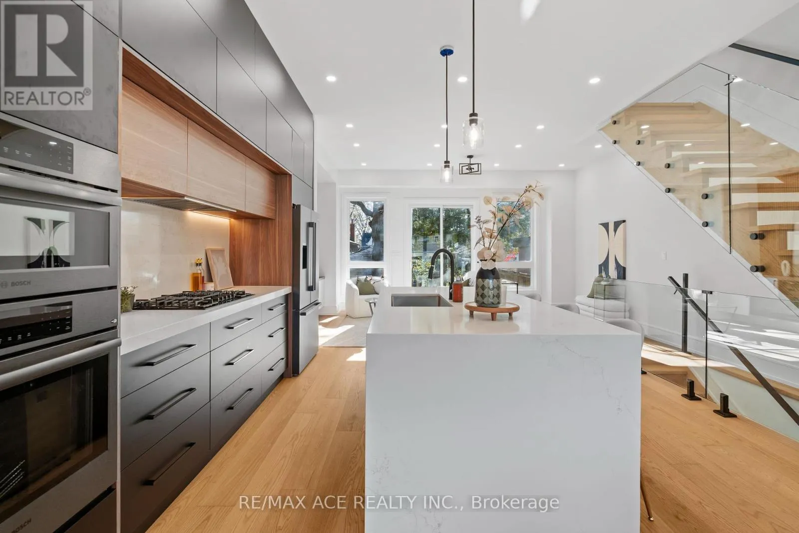 Warden Ave & Kingston Rd Experience refined modern living at 122 Warden Ave!!! a custom-built 3-bedroom showpiece tucked away at the quiet end of Warden Avenue. This stunning home features soaring 10 ft ceilings on the main floor and 9 ft ceilings upstairs, complemented by open riser stairs with sleek glass railings that add architectural elegance and flow. The designer kitchen showcases premium cabinetry, quartz countertops, and high-end appliances, while custom doors, detailed trim work, and rich finishes throughout highlight the craftsmanship. Ideal for families and professionals, this residence offers both comfort and sophistication in a peaceful, sought-after enclave near top schools, parks, the beach, and downtown. A rare opportunity to own a truly elevated home in one of Torontos hidden gems. (id:27476)