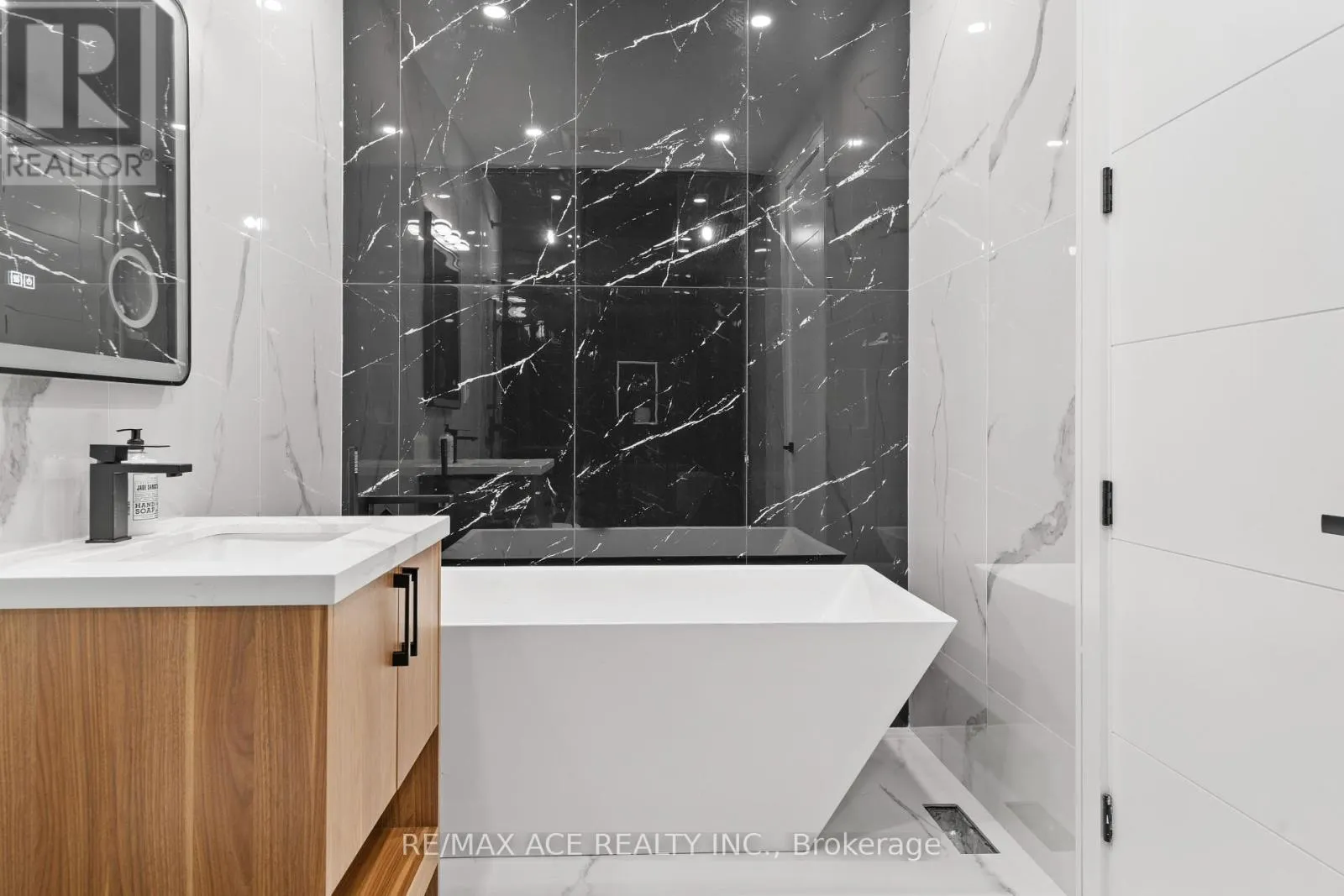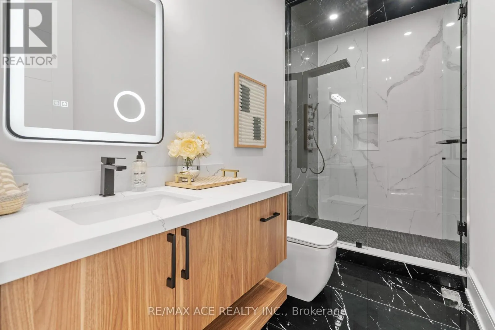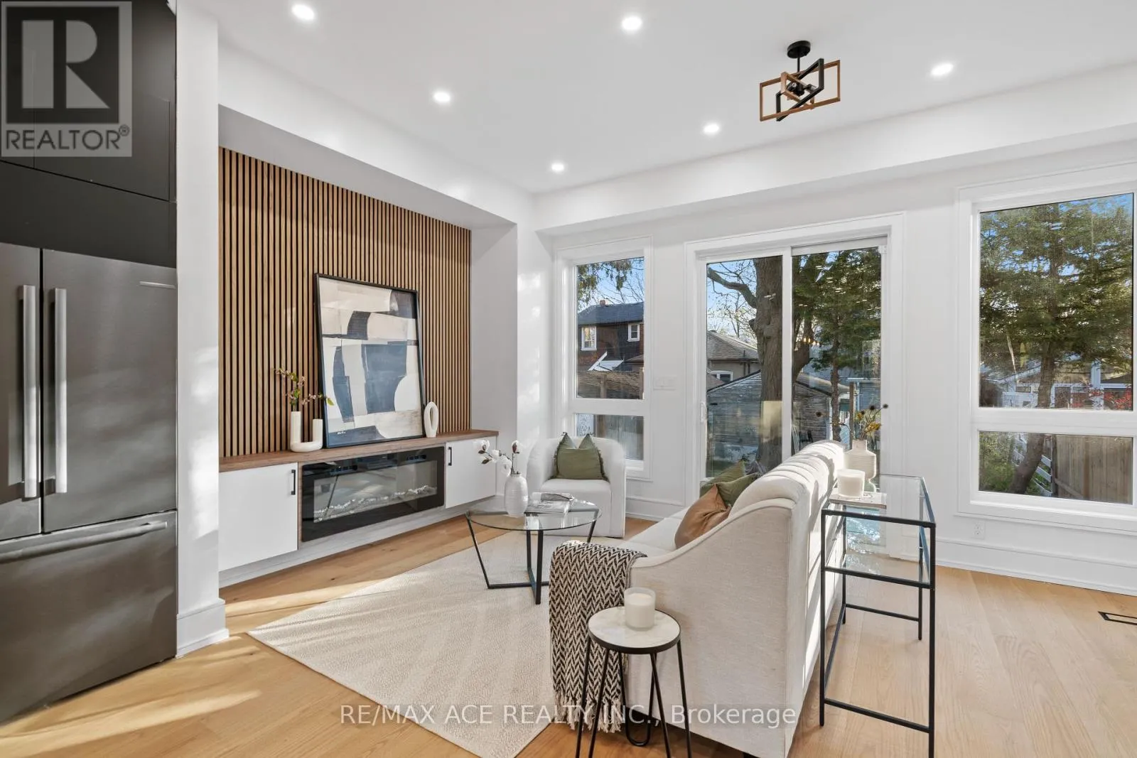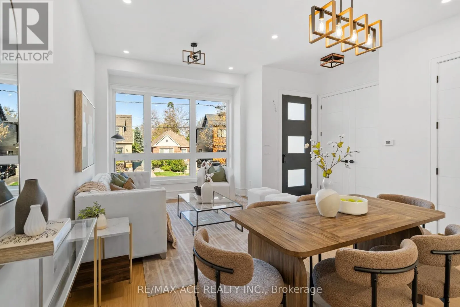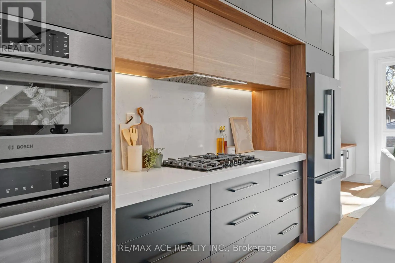 Warden Ave & Kingston Rd Experience refined modern living at 122 Warden Ave!!! a custom-built 3-bedroom showpiece tucked away at the quiet end of Warden Avenue. This stunning home features soaring 10 ft ceilings on the main floor and 9 ft ceilings upstairs, complemented by open riser stairs with sleek glass railings that add architectural elegance and flow. The designer kitchen showcases premium cabinetry, quartz countertops, and high-end appliances, while custom doors, detailed trim work, and rich finishes throughout highlight the craftsmanship. Ideal for families and professionals, this residence offers both comfort and sophistication in a peaceful, sought-after enclave near top schools, parks, the beach, and downtown. A rare opportunity to own a truly elevated home in one of Torontos hidden gems. (id:27476)