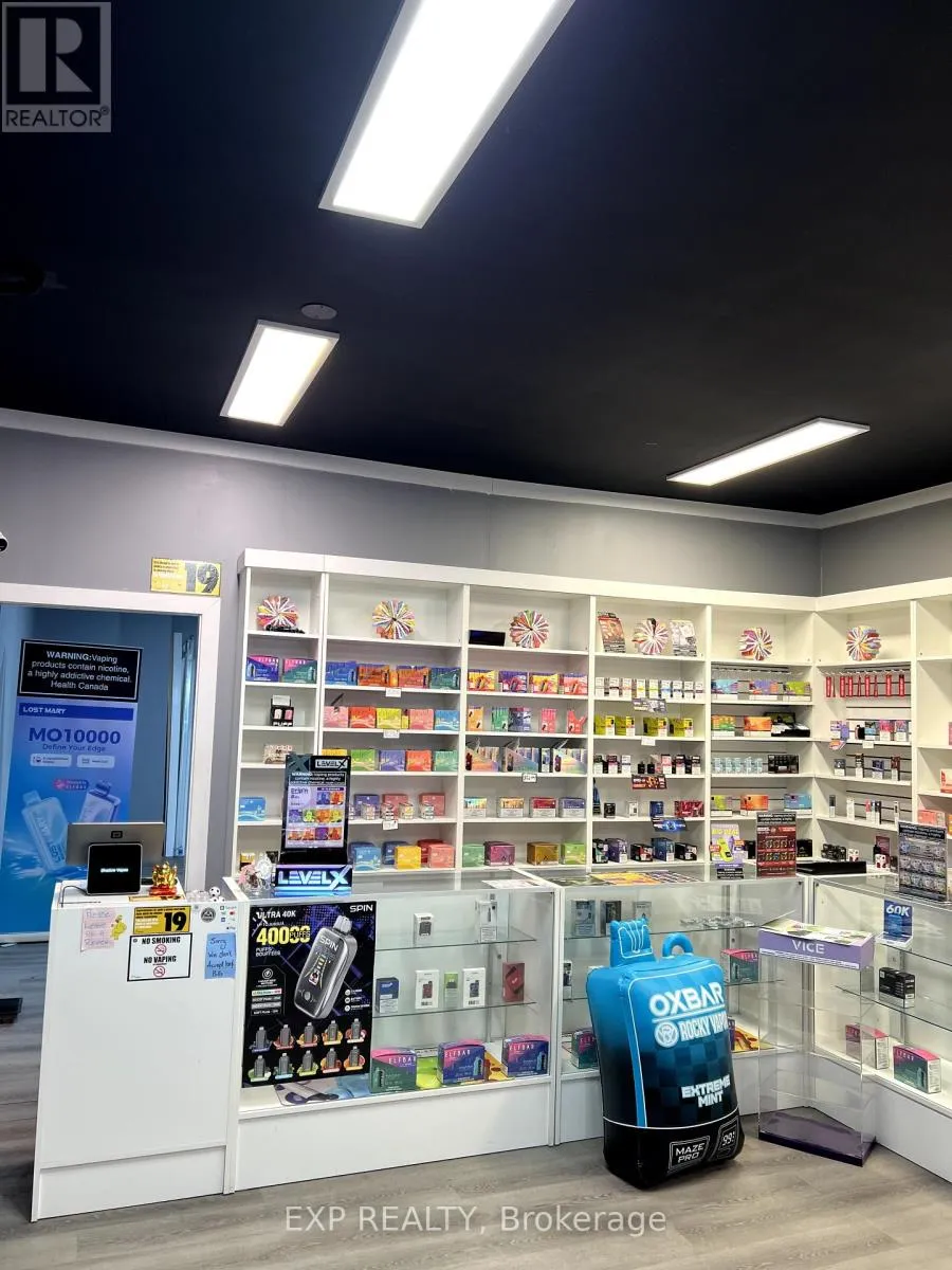 St Clair Ave And Pharmacy Ave An exceptional opportunity is available to acquire a high-end vape retail store at St. Clair Ave and Pharmacy Avenue in the East End of Toronto. This modern, renovated storefront is strategically located near major transit routes, schools, and residential neighbourhoods, ensuring a steady flow of potential customers. The sale includes all display units, shelving, furniture, and a modern Point-of-Sale (POS)system. The current owner is willing to train the new buyer, introduce them to vendors, and assist with licensing. The sale includes the lease, storefront, and business assets; the operating name can be negotiated separately. Inventory is not included in the price. With good profit margins and room to expand, this business offers a great opportunity. The location is on a major TTC route and is surrounded by AAA tenants like Tim Hortons, Pizza Hut, Dairy Queen, and a cannabis shop, providing excellent foot traffic. (id:27476)