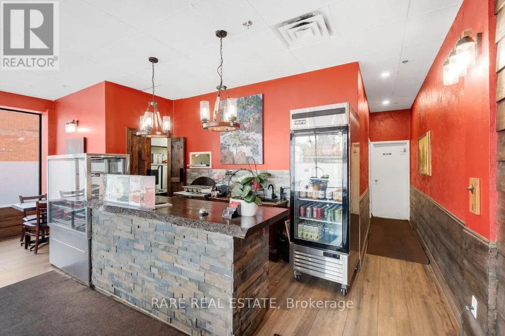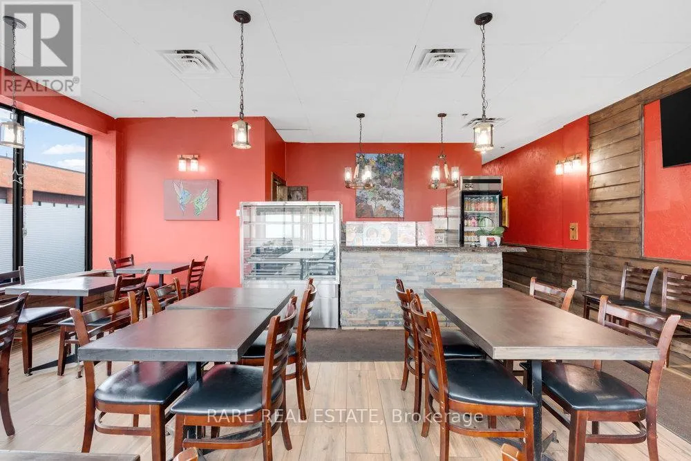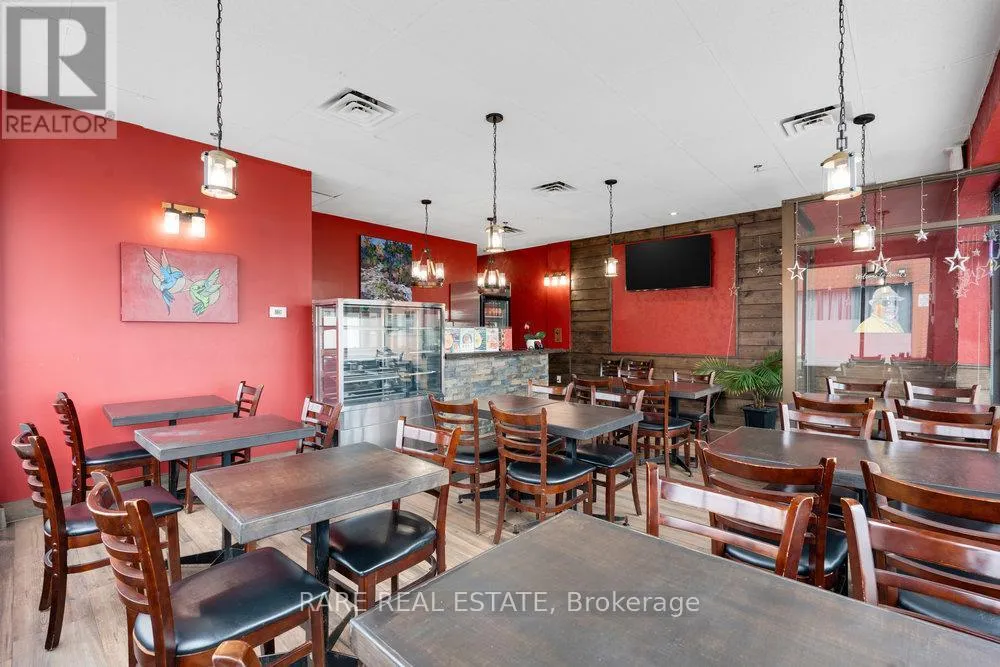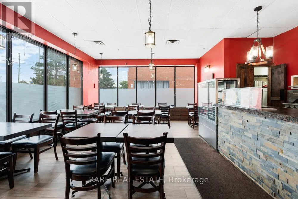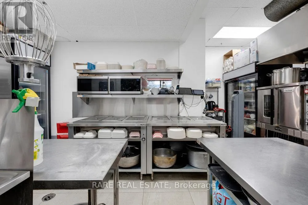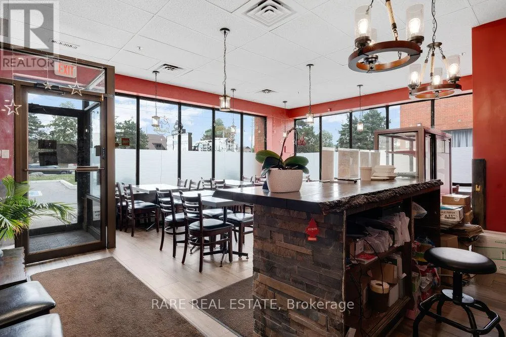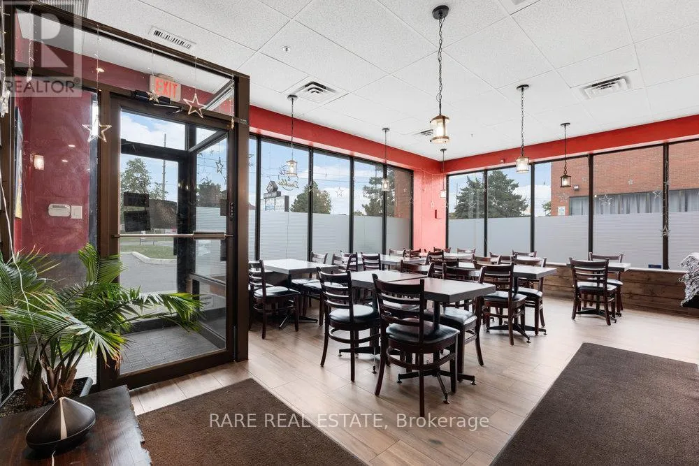 Cross Streets: Steeles Ave & Weston Rd. ** Directions: Property is Close to Highways 200 & 407. Excellent corner unit with main road exposure on Steeles Ave & Weston Rd. Features two storefront windows, two separate entrances, and two driveway entrances perfect for visibility and customer access. Enjoy great street exposure within this busy complex, just minutes from Highways 400 & 407.Previously operated as a popular breakfast joint for over 30 years, this location has a proven track record and a loyal local following. The plumbing and electrical were upgraded a few years ago, making this a turnkey opportunity for any restaurateur, baker, or caterer. All the equipment needed to start cooking is readily available and included in the sale, allowing a new owner to plug in and start generating revenue immediately.This is an amazing opportunity for someone with a passion for food and hospitality to bring their culinary vision to life in a thriving, high-traffic community. The unit benefits from a great landlord and an established setup that can support a wide variety of restaurant concepts. (id:27476)