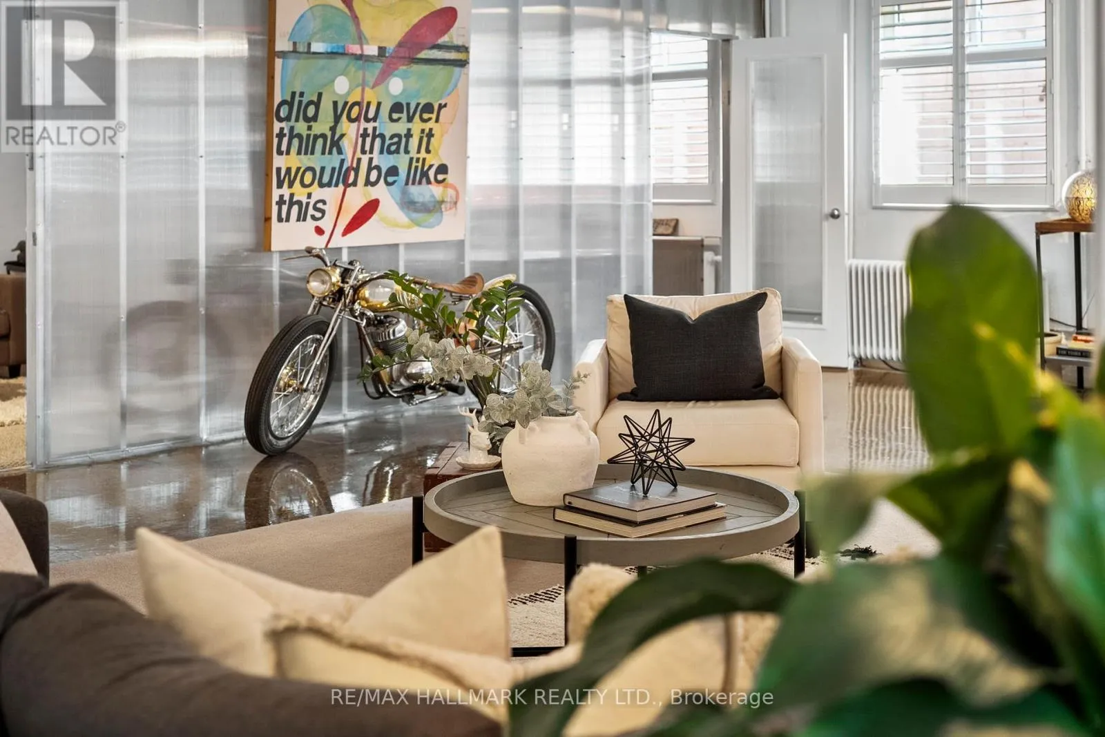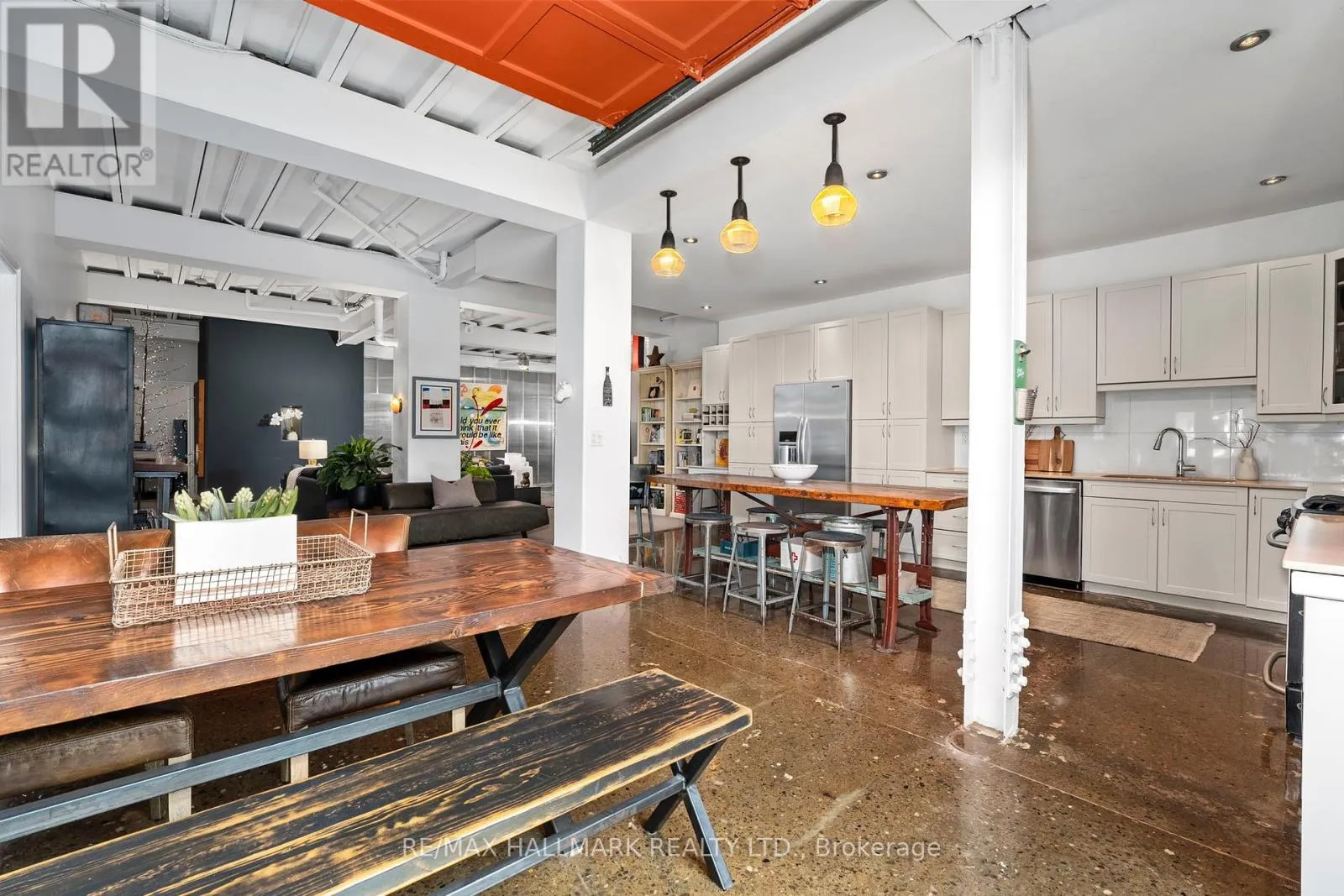 Cross Streets: Greenwood / Queen. ** Directions: 2B Minto. One of Leslieville's largest and most distinctive 4 bedroom, 2 private office loft in the coveted Bakery Lofts of Leslieville. This loft is truly one of a kind and super rare! Expansive 2,356 sq ft builders suite (not including the terrace or the 2 parking spots). Private single-car garage with direct access to the loft, as well as a second surface parking spot in front of your unit with private terrace access. Very large storage locker located in the lower level. Located just south of Queen Street and east of Jones, an authentic, open-concept living experience with plenty of original design features that give it a truly unique character. Soaring 10 foot ceilings, polished concrete floors, and vintage light fixtures that pay homage to the building's history. Massive chef's kitchen with abundant cabinetry, stainless steel appliances & a built-in wine fridge. Spacious living and dining areas. Convenient coat closet. Large primary bedroom with luxurious ensuite bathroom with four bedrooms in total, this loft provides plenty of space for family, guests, and two dedicated home offices, one of which is currently set up as a gym. Whether you're looking for a chic, modern space in the heart of Leslieville or a quiet retreat with tons of character, this stunning loft offers the best of both worlds. If this is up your alley, book your showing quickly because you won't find a space like this again. (id:27476)