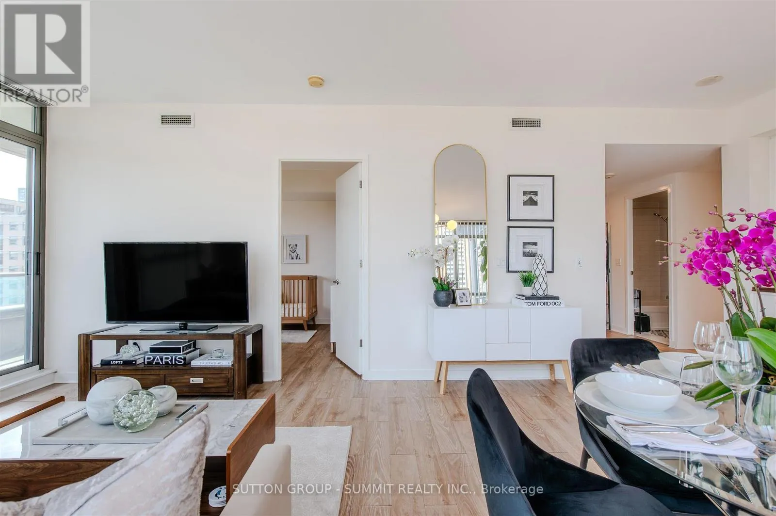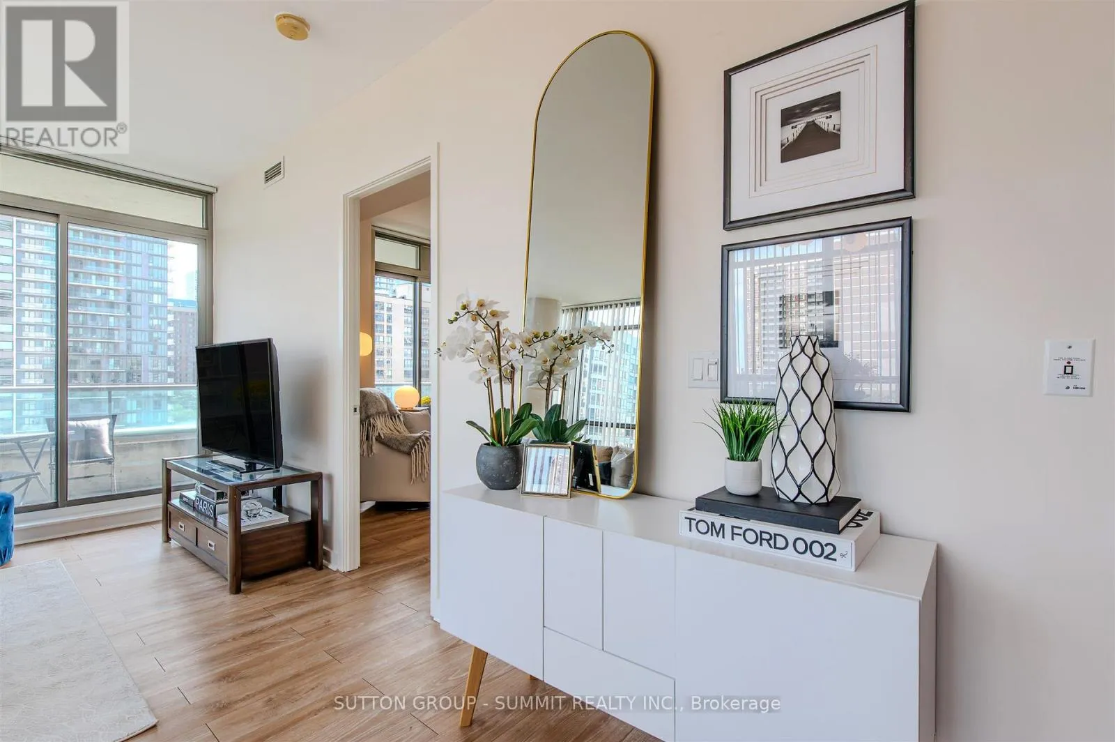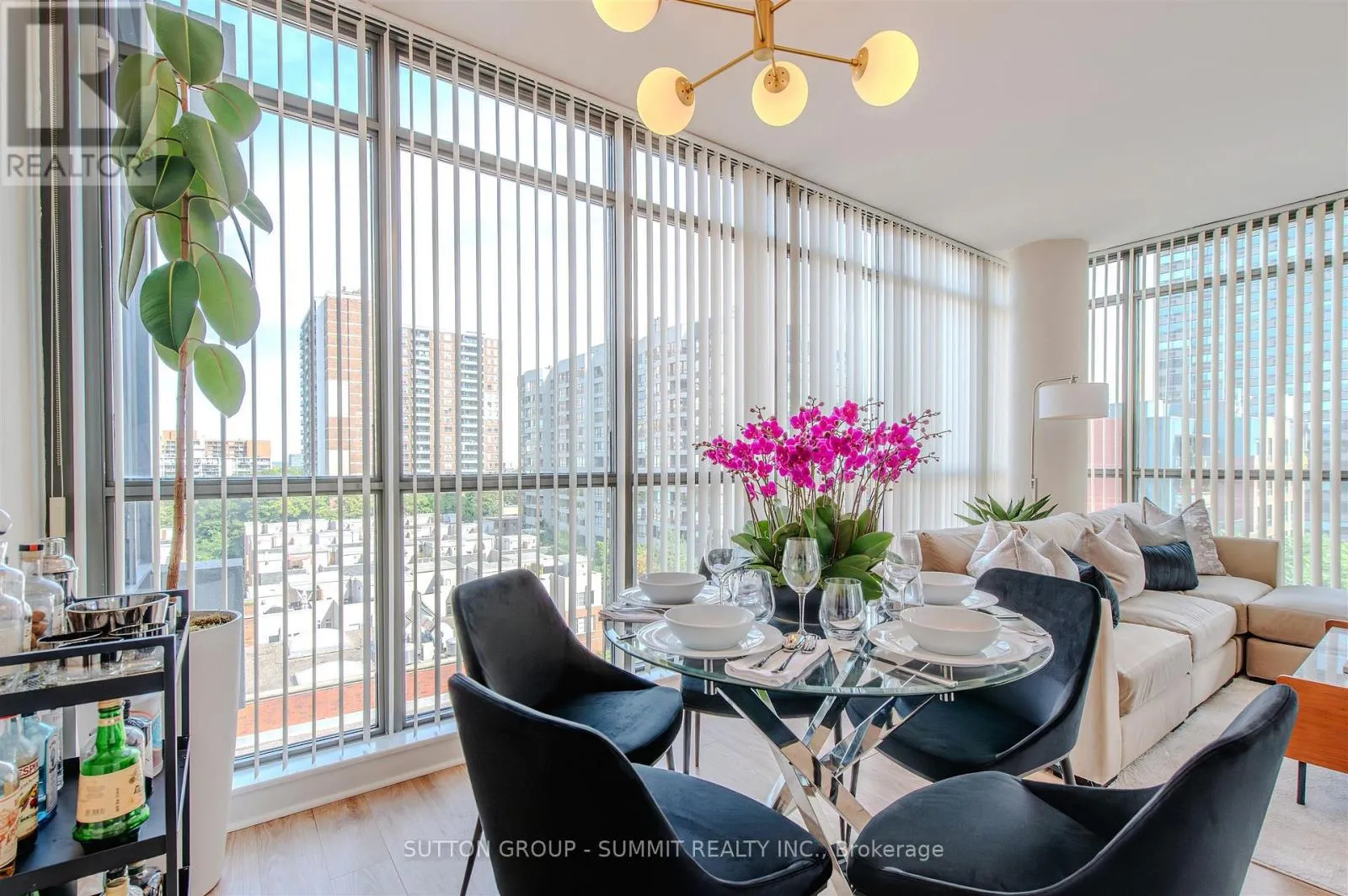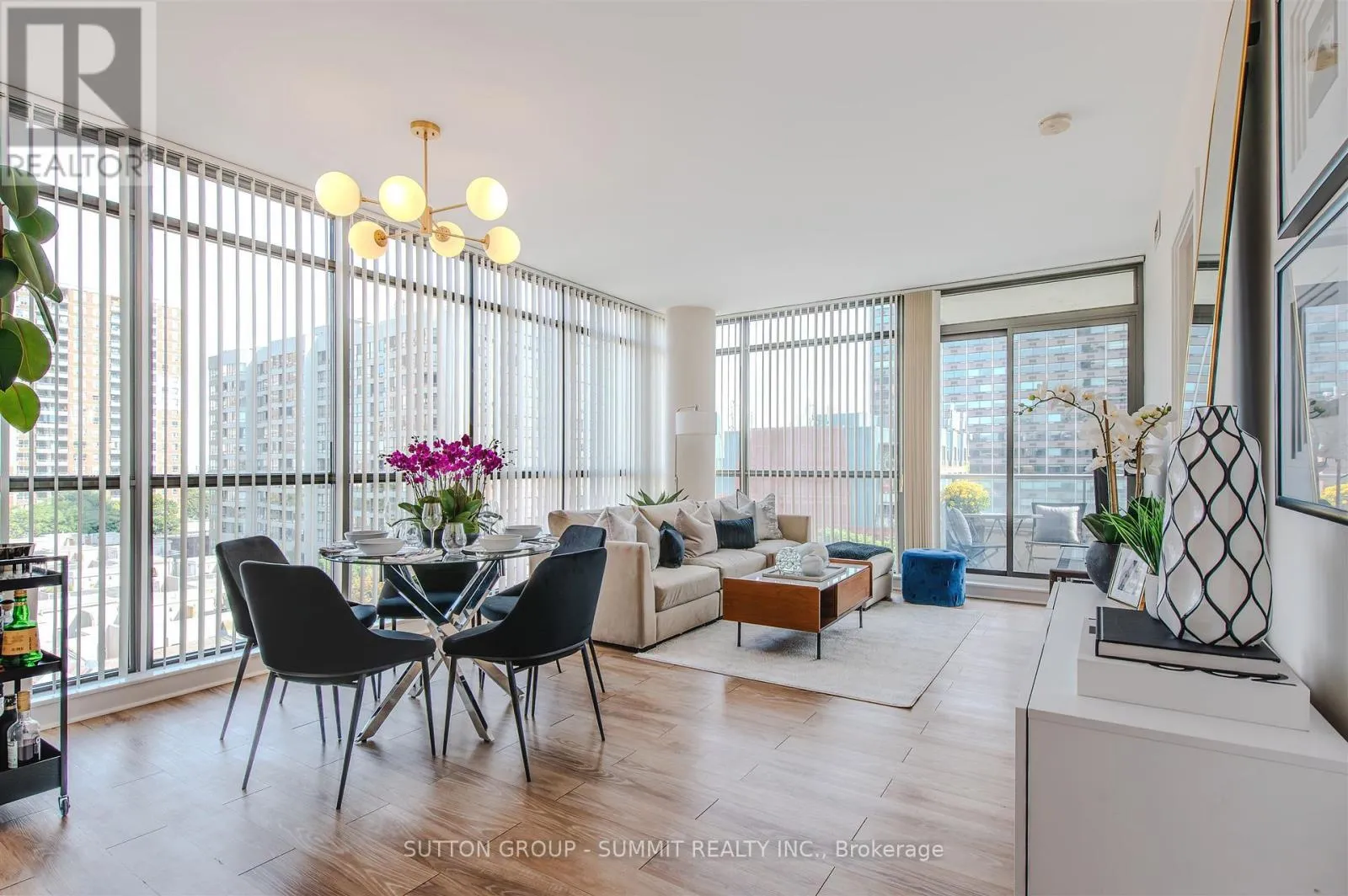 Church & Carlton Welcome to this fabulous corner suite perfectly perched south facing in Radio City's south tower. This split 2 bedroom layout offers a wonderful bright and Airy open concept living & dining area boasting large expansive floor to ceiling windows and well proportioned bedrooms. A generous size balcony is accessible from the sliding doors in the living as well as sliding doors in the Primary Bedroom. Light warm laminate floors marry all the principal spaces while a bright white kitchen is outfitted with desirable stainless steel appliances (Fridge & Stove-2021, Microwave 2022). Ensuite laundry features upgraded newer Stacked washer/dryer combo-2024. Conveniently located and just steps from public transit,Parks, Schools, Shops, Restaurants, Loblaws, U of T, TMU, Eaton Centre. Just a short drive to DVP/QEW. This iconic neighbourhood welcomes you home! (id:27476)