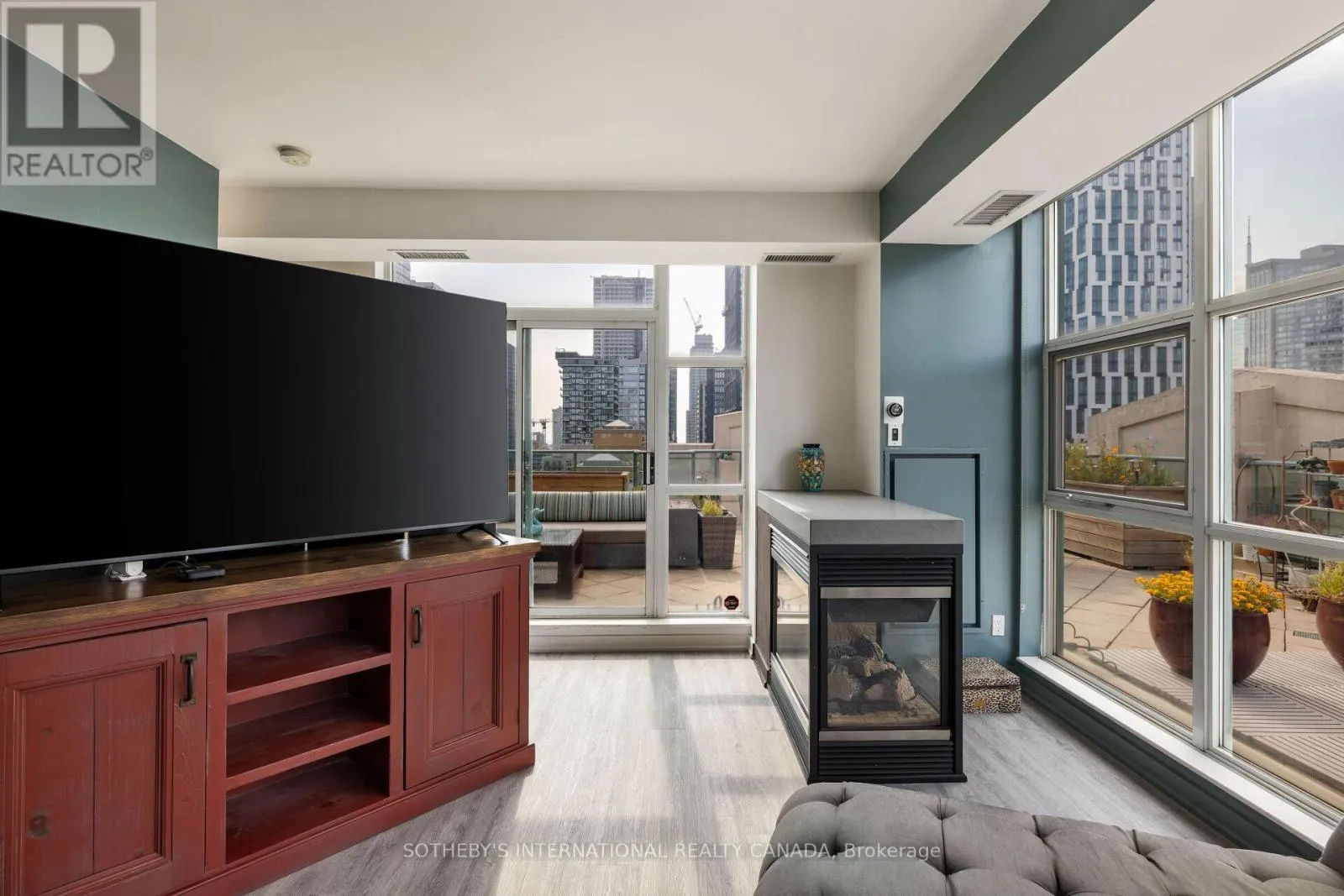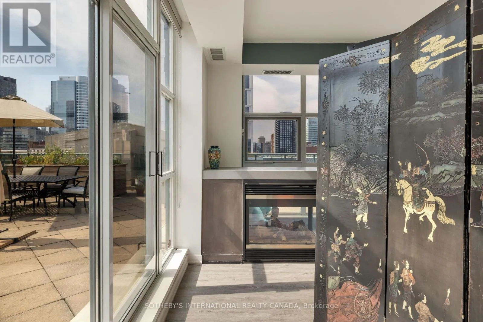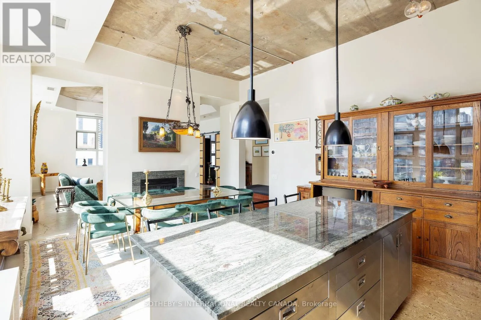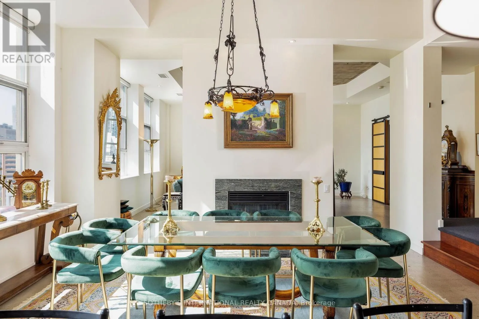 Church and Dundas Overflowing with personality, this stylish and sun-filled New York-style hard loft conversion commands an unparalleled view of thriving downtown Toronto from your house in the sky. The heart of the city pulses just outside your door, but inside is your oasis. Ideally positioned in the dynamic and diverse Church-Yonge Corridor, this 2-bedroom, 2.5-bath home with 2,487 square feet of living space offers easy access to the entire city. Astonishing 24-foot ceilings in the entrance foyer create an airy, relaxed vibe that designers have maximized for elegance and comfort. The main level is an art lovers dream with ample well-lit wall space, library shelving, a two-sided fireplace and polished concrete flooring. A gourmands kitchen with Bertazzoni gas stove and microwave, custom double-level cabinetry, cork flooring, and a professional size, extra large, granite-topped centre island beckons culinary creativity. Upstairs, the primary bedroom suite envelops you in serenity with a gas fireplace, jacuzzi tub, dual vanities, and panoramic skyline views through floor-to-ceiling windows unrivalled by any in this city. Multiple walkouts lead to an enormous private rooftop terrace (1,220 sq. ft.)with southern, western and northern views that includes shack with shelves, fridge, and water/gas hookups for convenient outdoor entertaining or just enjoying a quiet evening beverage. Amenities Include Basketball Court, Gym, Rooftop Indoor Pool, Rooftop Dog Park. Don't Miss Out on this Unique Loft! (id:27476)