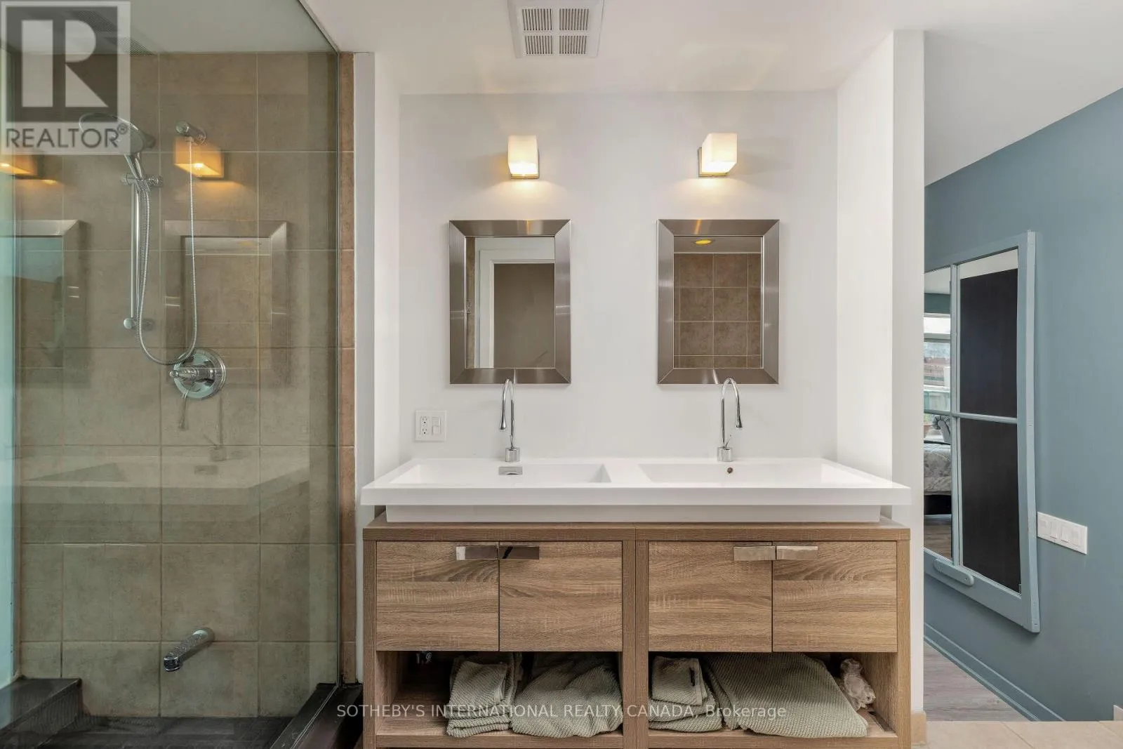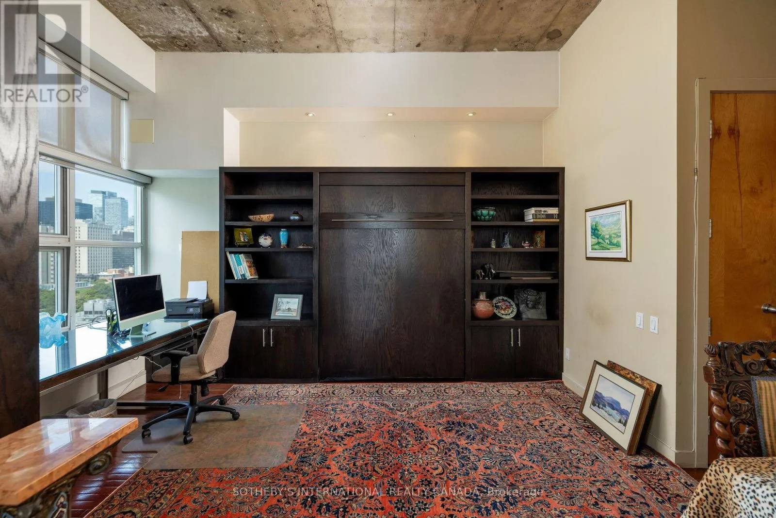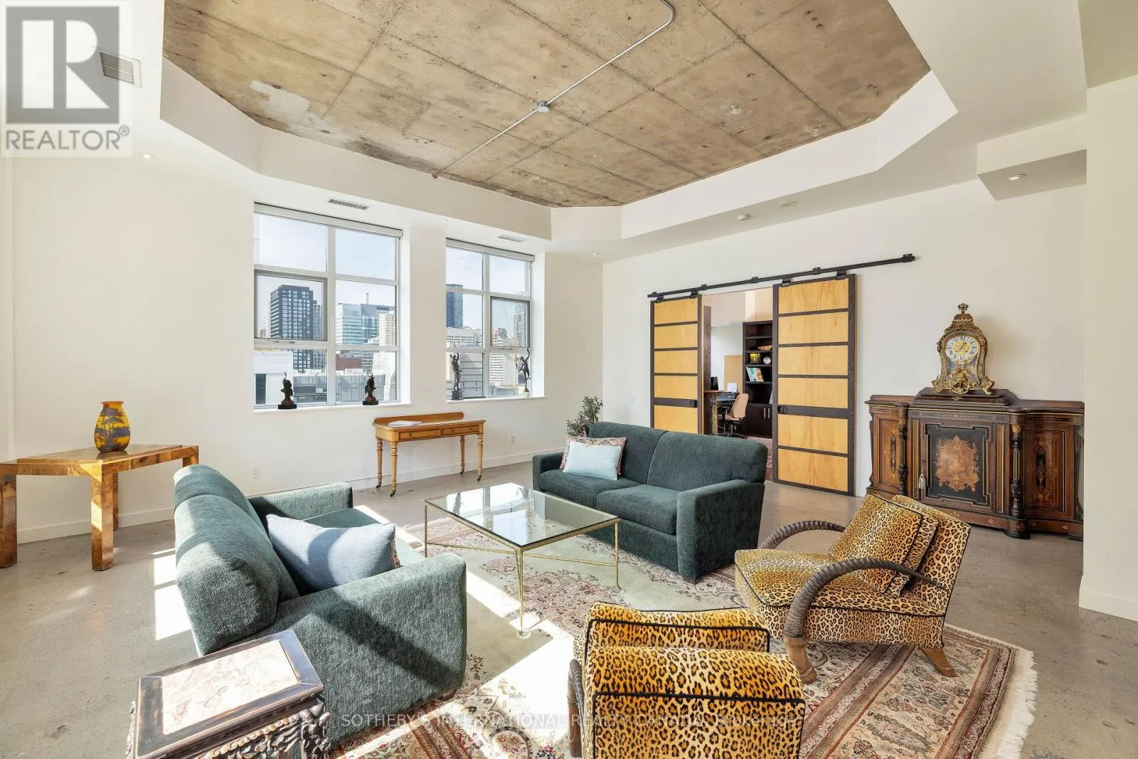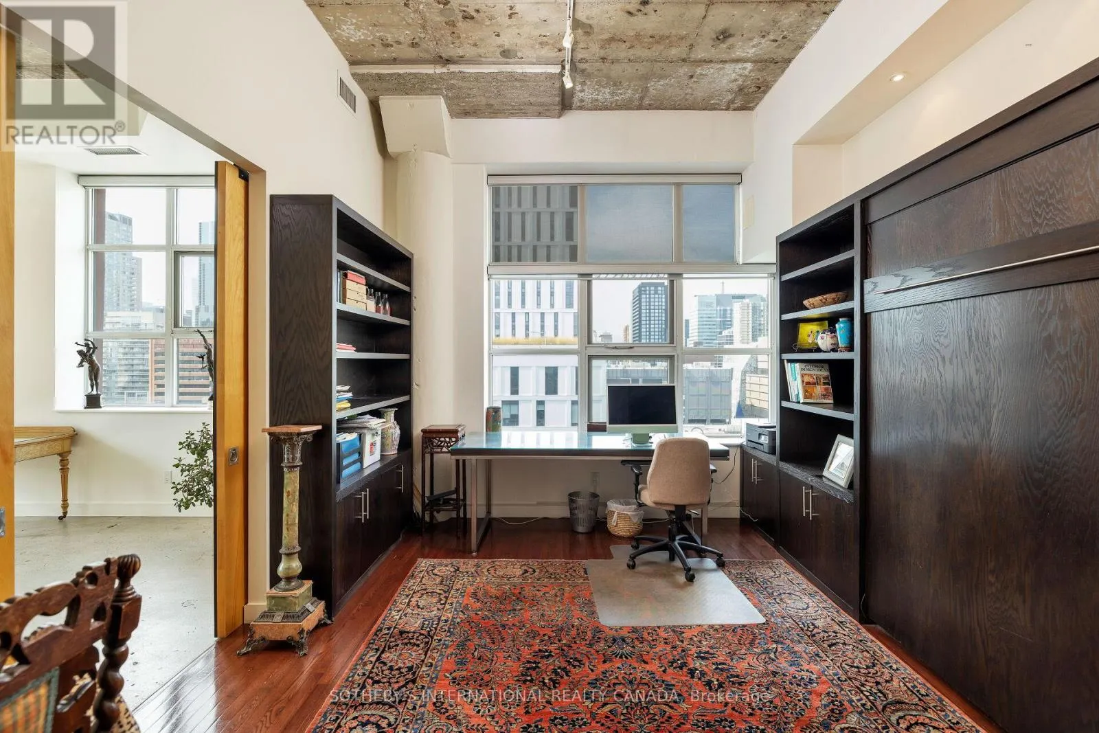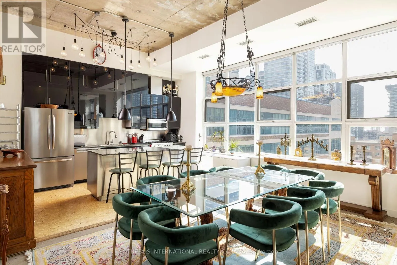 Church and Dundas Overflowing with personality, this stylish and sun-filled New York-style hard loft conversion commands an unparalleled view of thriving downtown Toronto from your house in the sky. The heart of the city pulses just outside your door, but inside is your oasis. Ideally positioned in the dynamic and diverse Church-Yonge Corridor, this 2-bedroom, 2.5-bath home with 2,487 square feet of living space offers easy access to the entire city. Astonishing 24-foot ceilings in the entrance foyer create an airy, relaxed vibe that designers have maximized for elegance and comfort. The main level is an art lovers dream with ample well-lit wall space, library shelving, a two-sided fireplace and polished concrete flooring. A gourmands kitchen with Bertazzoni gas stove and microwave, custom double-level cabinetry, cork flooring, and a professional size, extra large, granite-topped centre island beckons culinary creativity. Upstairs, the primary bedroom suite envelops you in serenity with a gas fireplace, jacuzzi tub, dual vanities, and panoramic skyline views through floor-to-ceiling windows unrivalled by any in this city. Multiple walkouts lead to an enormous private rooftop terrace (1,220 sq. ft.)with southern, western and northern views that includes shack with shelves, fridge, and water/gas hookups for convenient outdoor entertaining or just enjoying a quiet evening beverage. Amenities Include Basketball Court, Gym, Rooftop Indoor Pool, Rooftop Dog Park. Don't Miss Out on this Unique Loft! (id:27476)