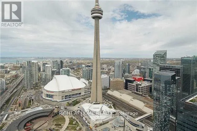 Cross Streets: York And Lakeshore. ** Directions: Gardener Expressway E to York St. Corner Penthouse 2 Bed+ Study And 2 Washroom At The Top Floor 57 With High 9' Ceiling. Clear And Unblocked View Of Cn Tower, Lake And The Downtown Below From Living Area,Both Bedrooms, Large Balcony And Wrap Around Windows.A Better View than this may not be possible to Rogers Centre and Cn Tower. Hardwood Floor On The Living Area.Designer's Kitchen With Built In Appliances.Walk To Union Station, Harbour-Front,Financial And Entertainment District. Pictures are before Executive midterm rentals in the Unit (id:27476)