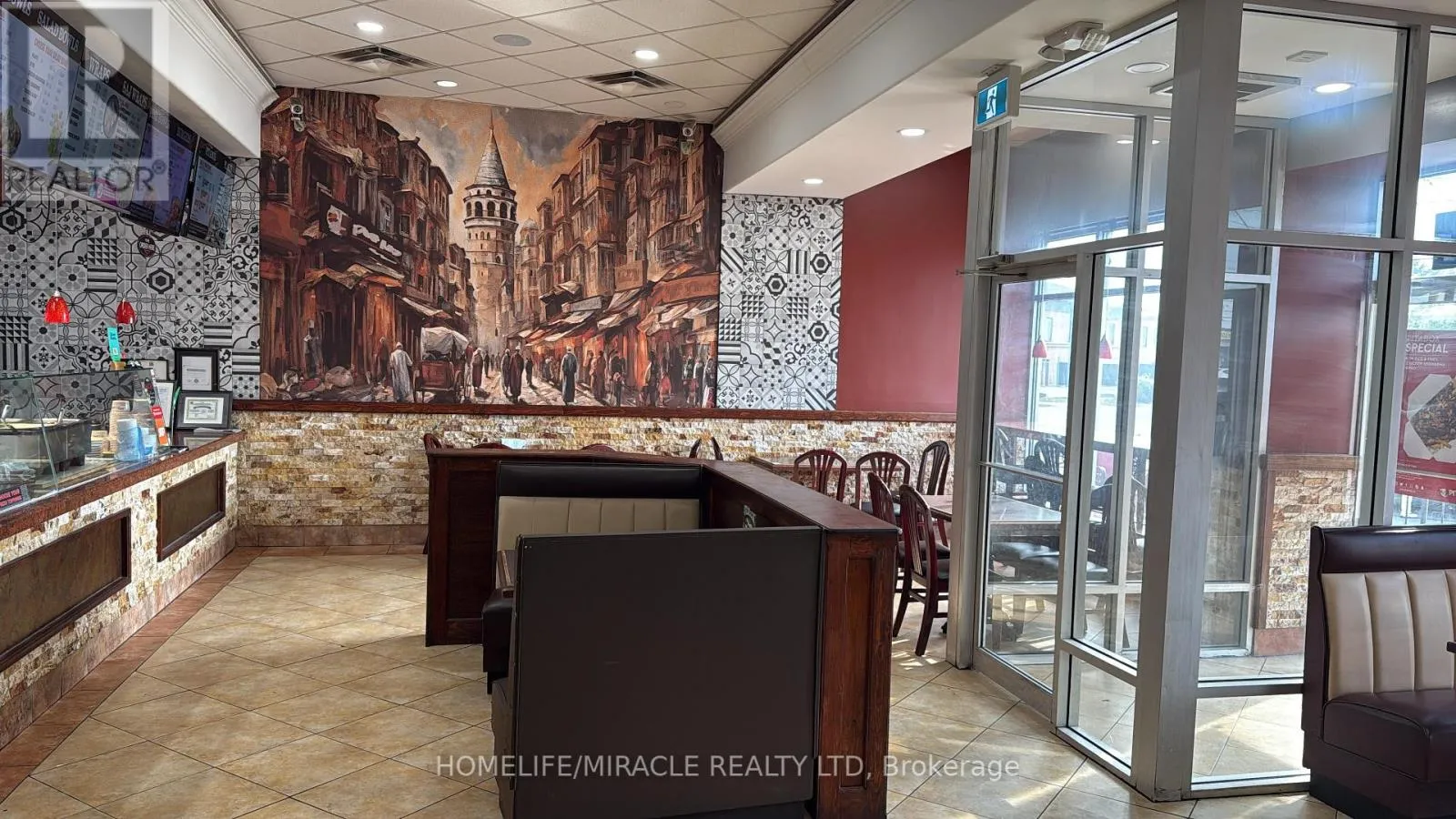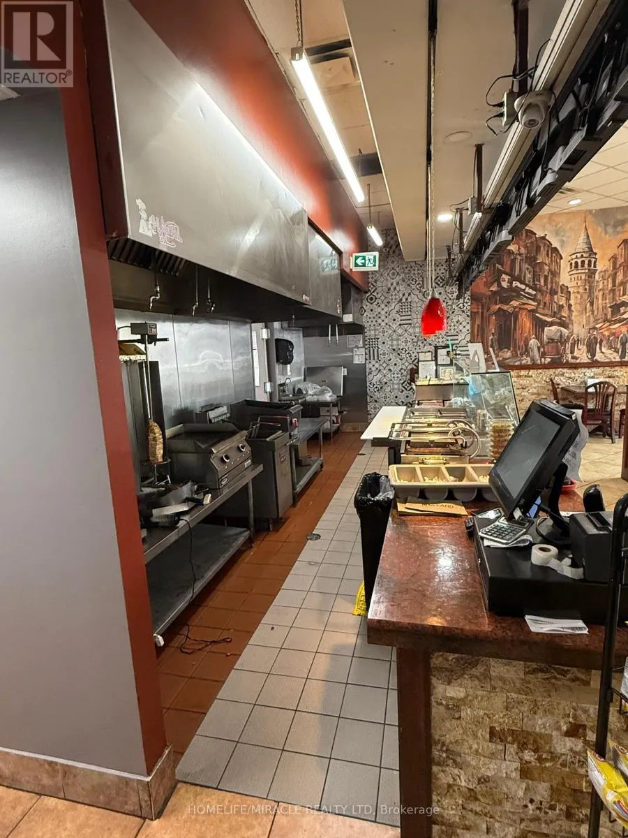 Martin Grove/ Rexdale Profit making location for SALE, chance for you to get in and open any restaurant of your choice to take benefit of this amazing location. ---Buyers have the flexibility to convert the space to a traditional Indian restaurant or other non-competing concept with landlord consent.---Fantastic Opportunity in Prime North Etobicoke Location - Can Be Converted to Other Food Concepts! Turnkey opportunity to own a fully equipped restaurant located at 285 Rexdale Blvd, just off HWY 27 and close to HWY 401, 409 & Rexdale Blvd in the heart of Etobicoke's thriving commercial and industrial corridor with Tim Hortons being your neighbor. This strategically positioned plaza location offers exceptional exposure, surrounded by high-density office condos, busy industrial hubs, and a strong residential population. Ideal for lunch rush and dinner traffic, this unit is also perfectly situated for meal prep and delivery services like tiffin or catering especially with Humber being at a 7 min distance. The current setup features a state-of-the-art commercial kitchen, ideal forhigh-volume cooking operations. All equipment and leasehold improvements are in pristine condition. The existing franchise is performing well with solid monthly sales and potential for rapid growth under active ownership. Alternatively, buyers have the flexibility to convert the space to a traditional Indian restaurant or other non-competing concept with landlord consent. Rent is affordable at approx. $8700/month (TMI, HST, Water included). Long lease available. This is an excellent opportunity for owner-operators or food entrepreneurs looking for a central location with built-in clientele and room to scale. (id:27476)