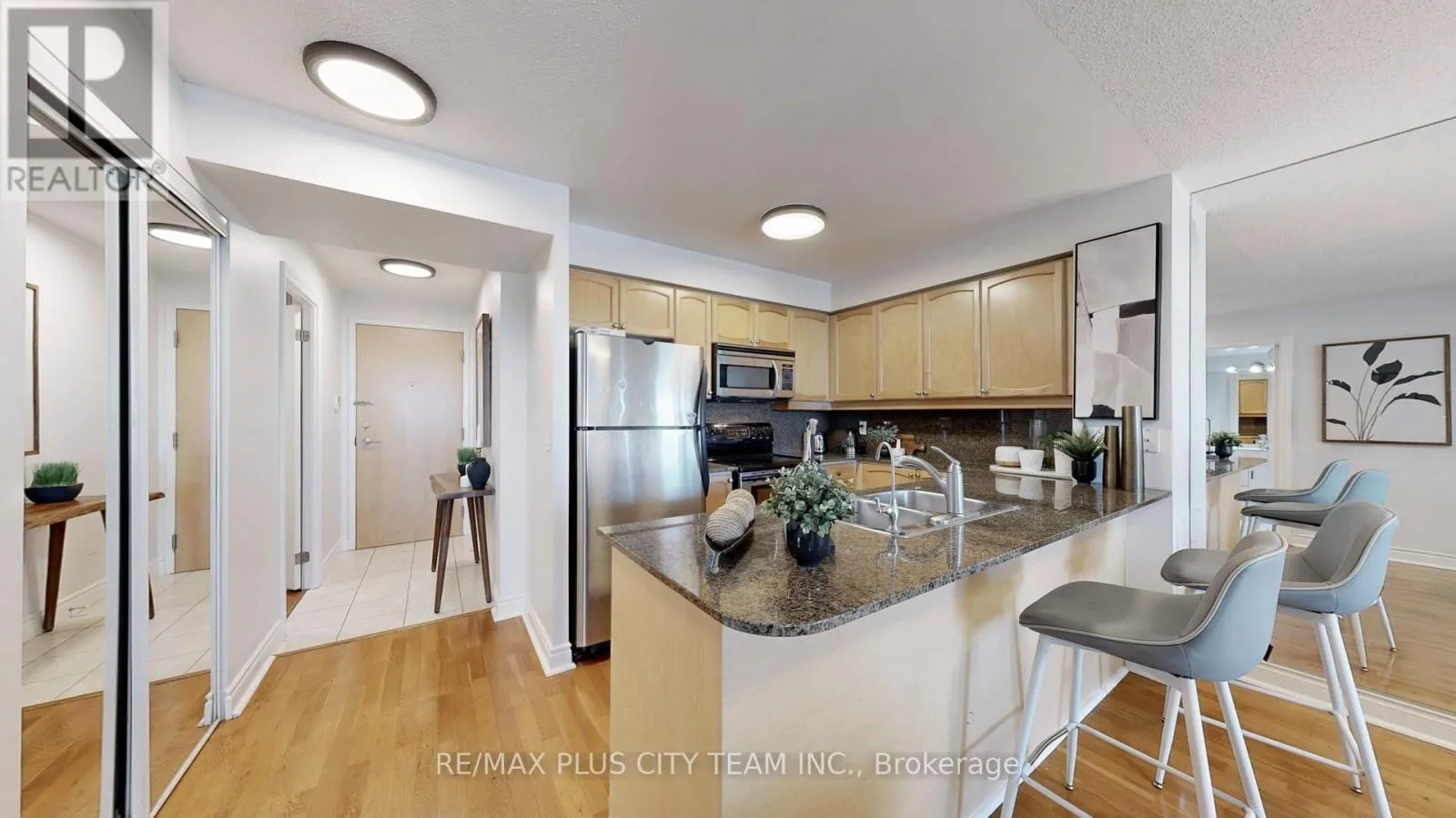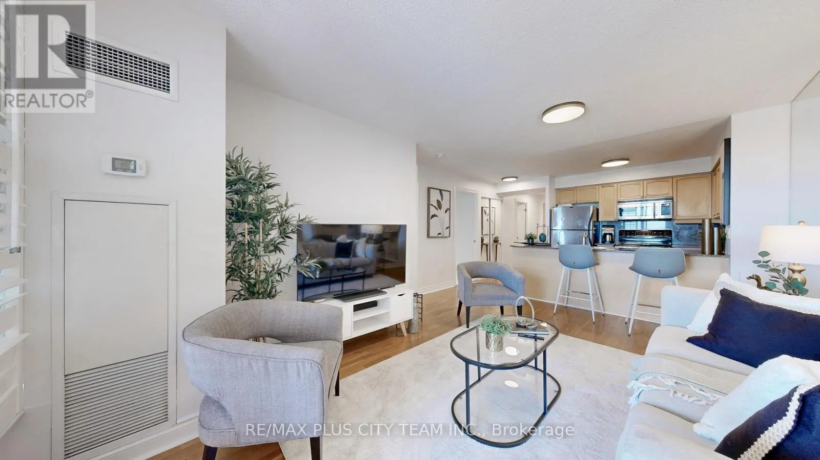 Cross Streets: Mccowan / Highway 401. ** Directions: Brimley and 401. Welcome to Equinox II by Monarch! This bright and spacious 1-bedroom + den suite offers an exceptional opportunity in the heart of Scarborough Town Centre. With approximately 661 sq. ft. of interior space and a rare oversized 300 sq. ft. private balcony, this high-floor unit features large windows that fill the open-concept layout with natural light. The generous den provides flexible use as a second bedroom, office, or guest space. Designed for modern living, this well-maintained unit is the perfect blend of comfort and function. Enjoy premium amenities including a fully equipped gym, indoor pool, theatre, virtual golf, billiards lounge, party room, guest suites, and 24-hour concierge. Maintenance fees include all utilities, heat, hydro, and water as well as parking and a locker for added value and convenience. Just steps to the TTC, Scarborough Town Centre, YMCA, parks, restaurants, and minutes to Highway 401, this location offers unbeatable connectivity and urban convenience. Ideal for first-time buyers, investors, or downsizers looking for a vibrant community and lifestyle in one of the city's most dynamic neighbourhoods. (id:27476)