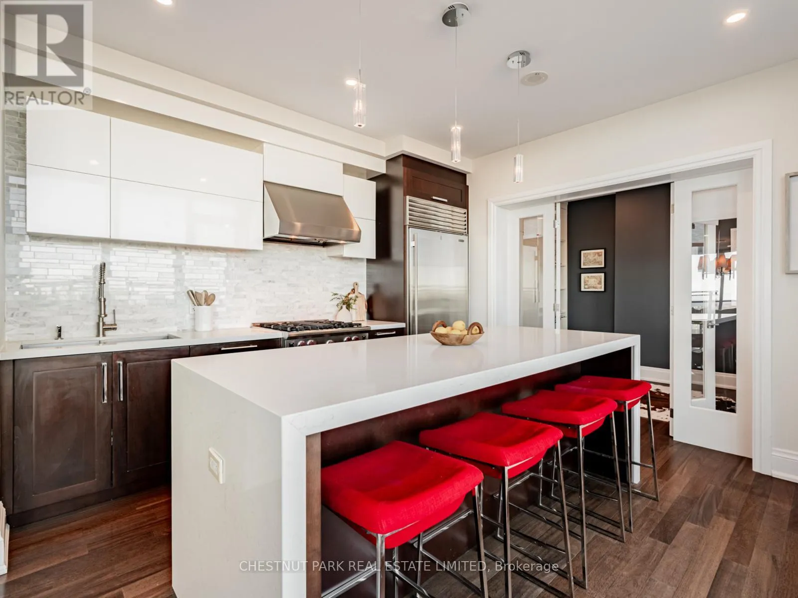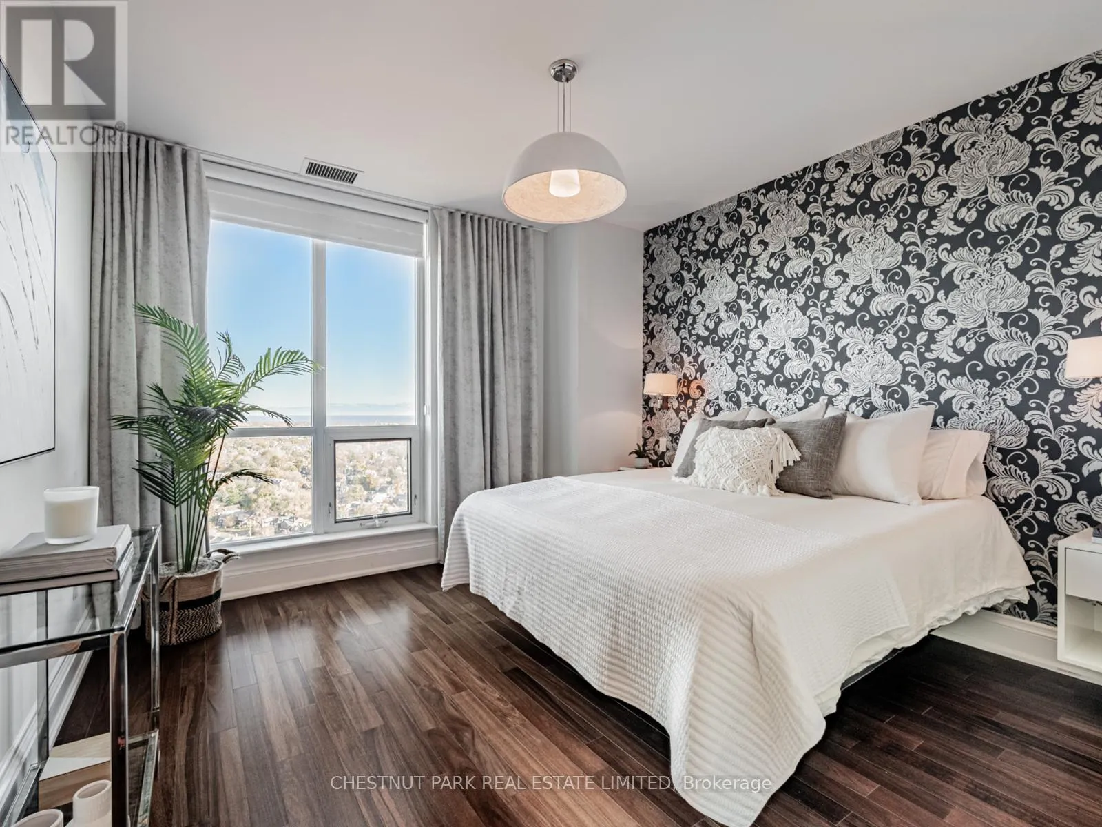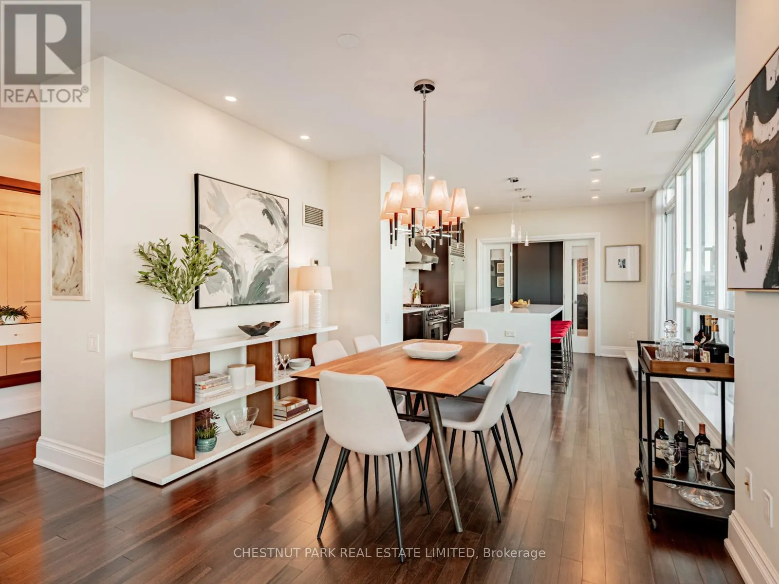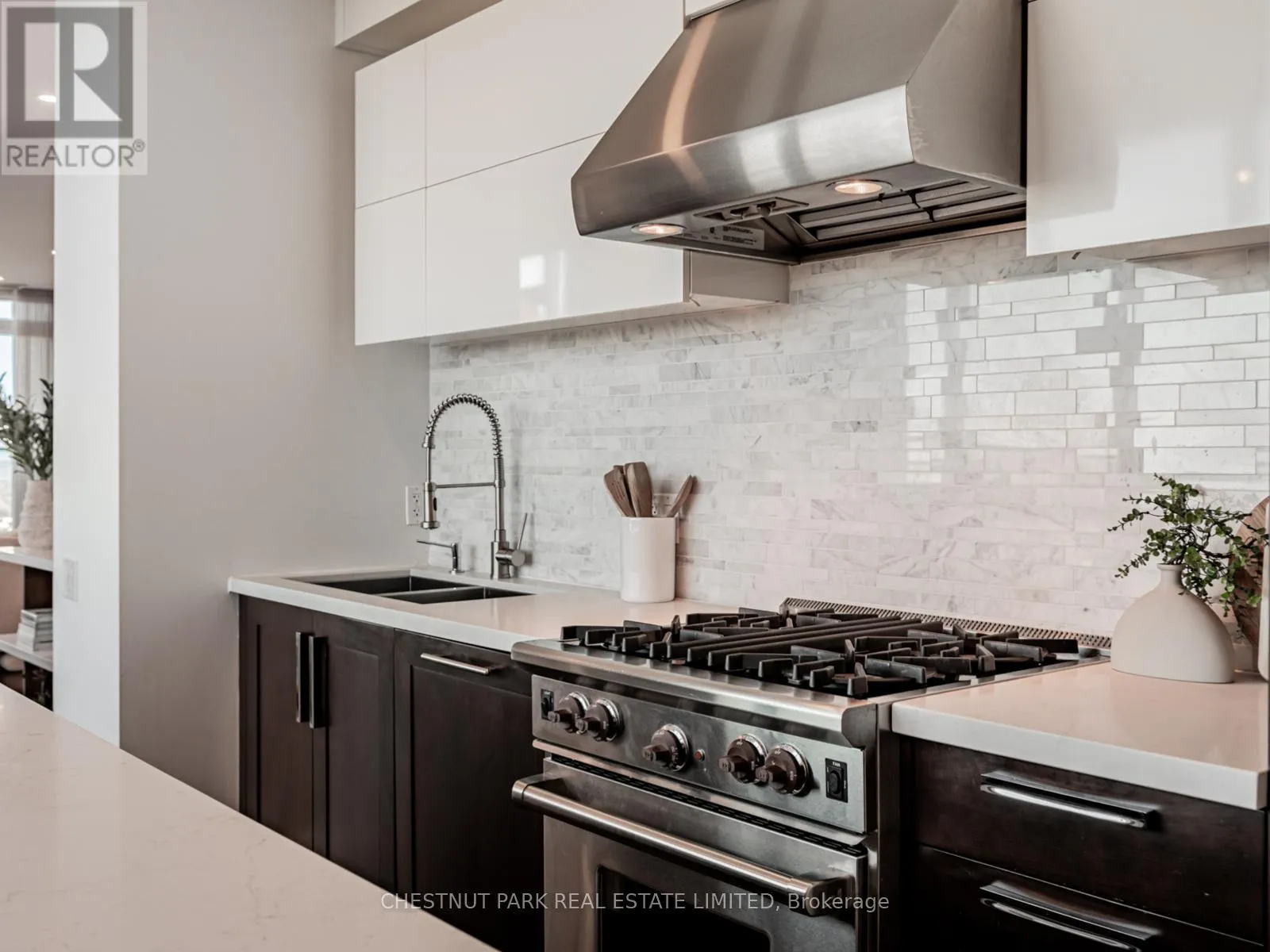 Broadview Ave & Mortimer Ave As one of only two penthouses in the building, this breathtaking corner suite offers panoramic north east views that stretch endlessly, providing a dramatic backdrop for daily life & evening relaxation. With 1,554 sq ft of beautifully designed & upgraded interiors and approx. 700 sq ft of outdoor space, this condo is bathed in natural light, thanks to the floor-to-ceiling windows that accentuate the open, airy atmosphere.The spacious, open-concept living & dining areas, accented by warm hardwood flooring & a cozy gas fireplace with custom built-ins, effortlessly connect to both a large terrace & a balcony. Imagine stepping out from either the living or dining room to savor the impressive skyline views, creating the perfect setting for entertaining or simply unwinding under the stars. A Bose sound system elevates the ambiance in the living, dining, office & terrace, providing a perfect soundtrack to complement every moment.Designed for culinary enthusiasts, the renovated kitchen boasts wolf & sub-zero appliances & ample space to create unforgettable meals. Featuring 2 generously sized bedrooms, a versatile den/office (which has a murphy bed & could serve as a 3rd bedroom), & 2 full bathrooms. A rare oversized terrace allows for outdoor lounging & BBQing while you take in the unobstructed views from your luxurious penthouse. With the added convenience of 2 underground side-by-side parking spaces & a locker for extra storage, this penthouse offers not only breathtaking beauty but also thoughtful practicality. Situated just minutes to the Brickworks, Playter Estates, the Danforth, with a walk score of 90, bike score of 98 & transit score of 94, you are just a few minutes to the subway & walking & biking trails. An incredible location that combines the best of nature and city conveniences. This suite combines design, stunning views, convenience & effortless luxury in the heart of our vibrant city. (id:27476)