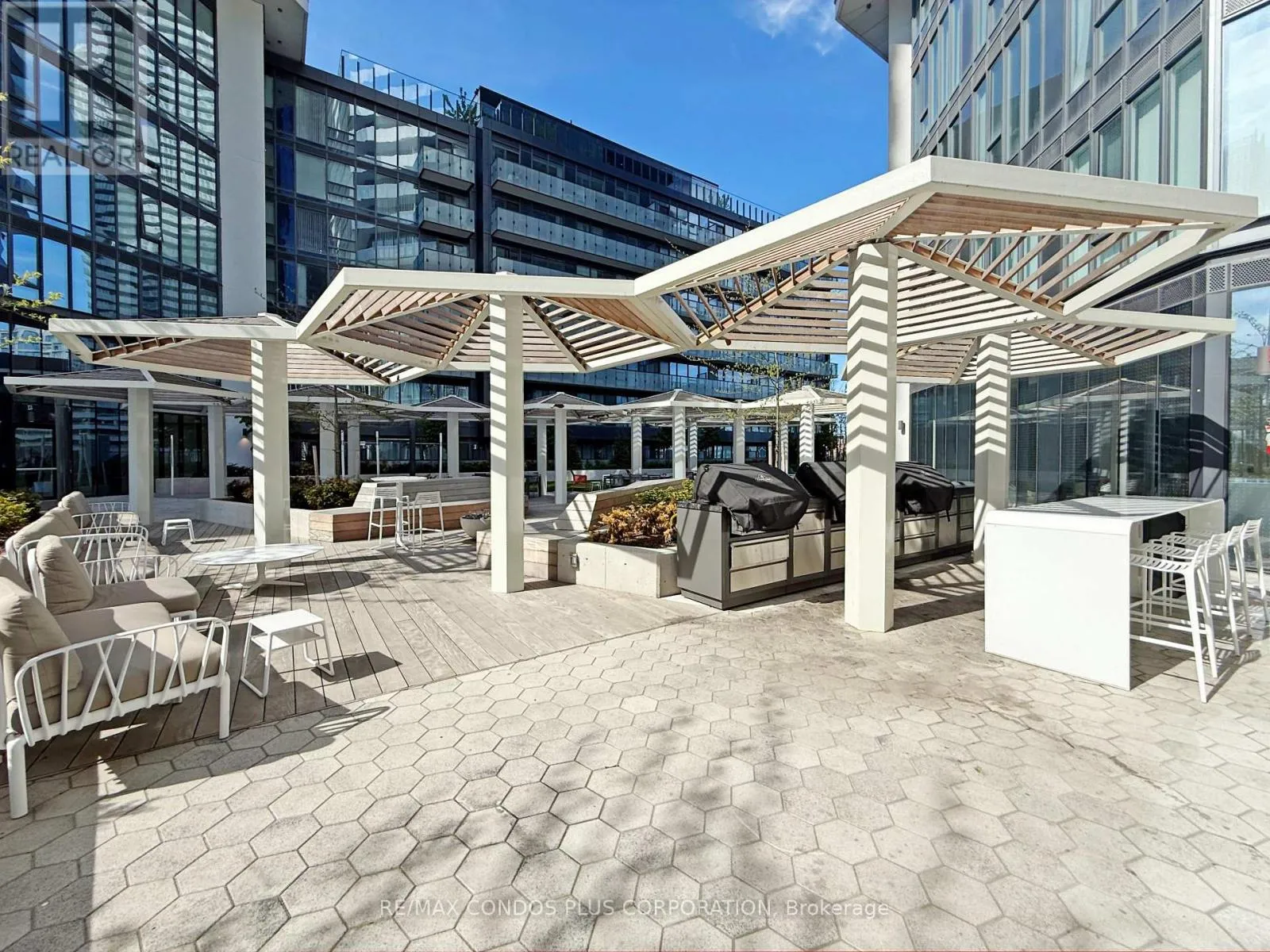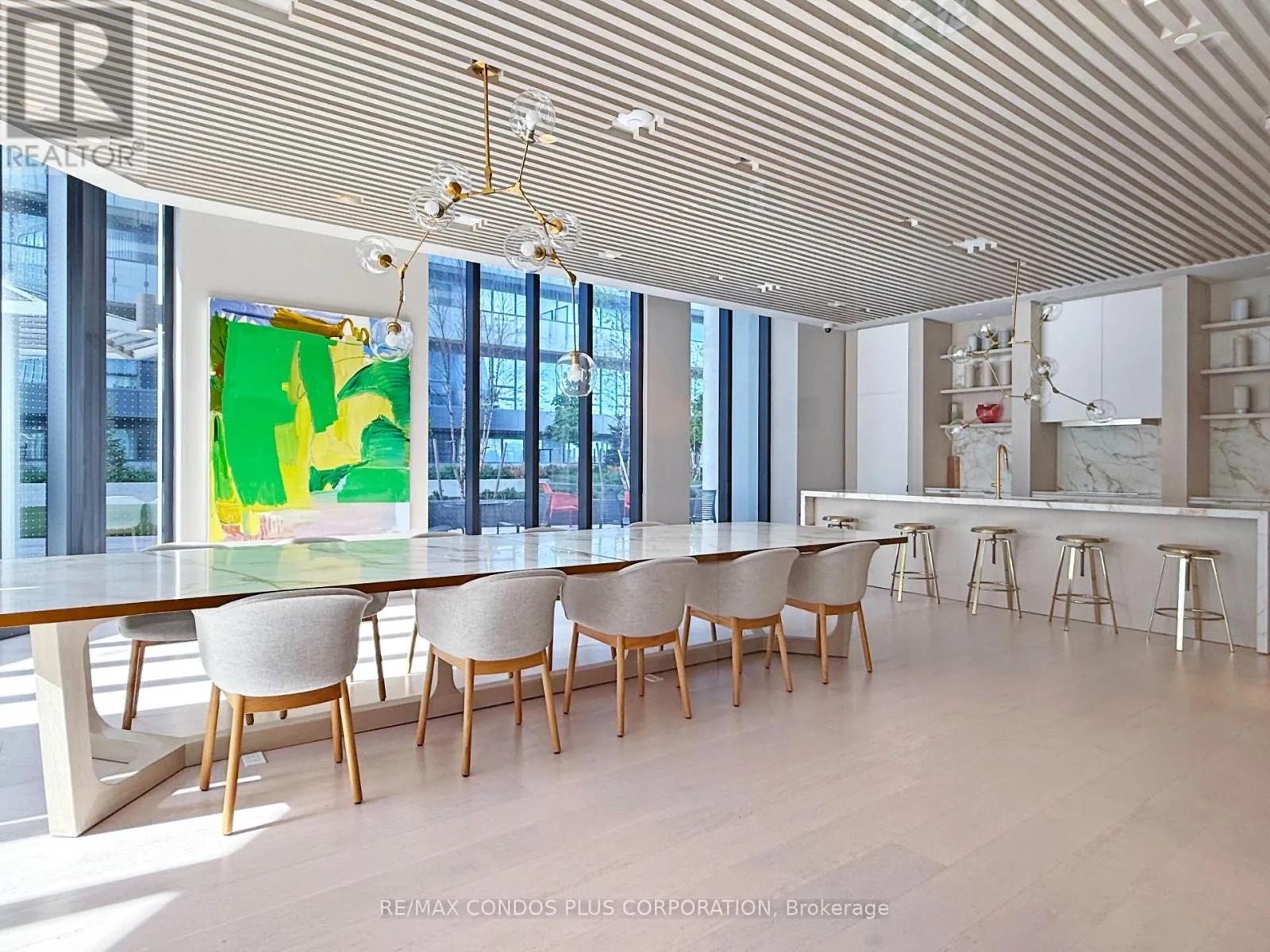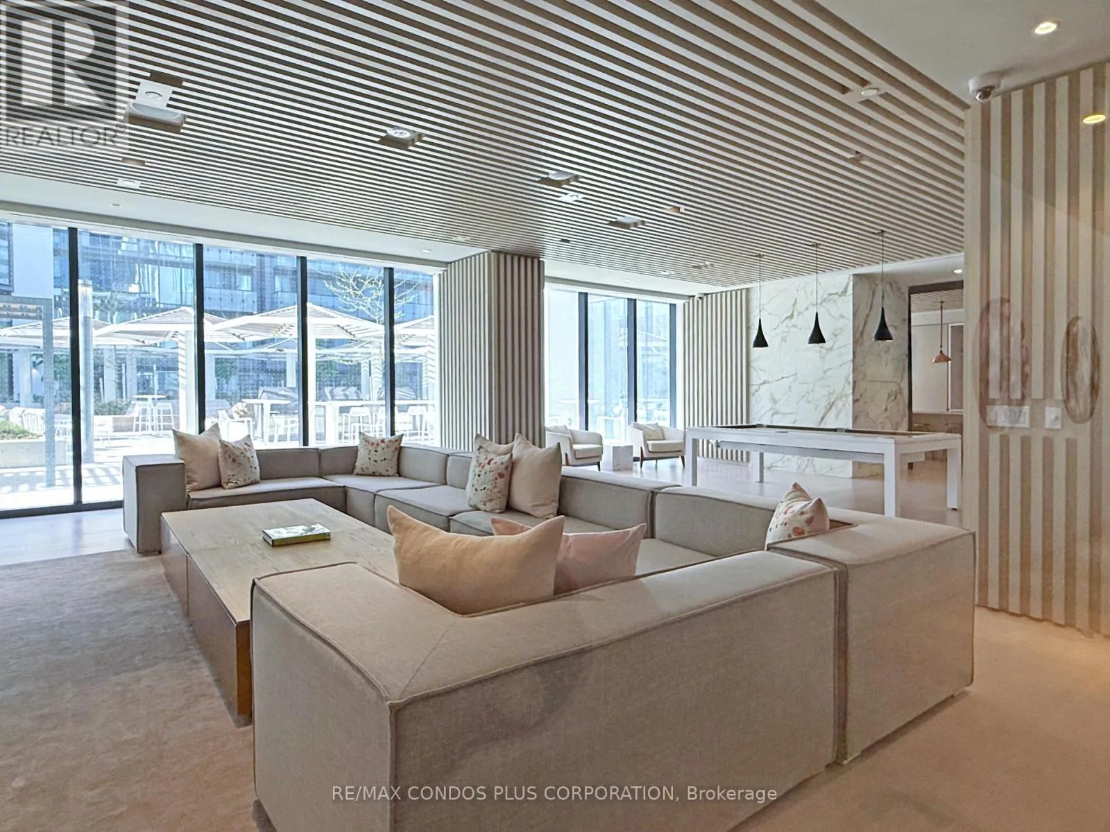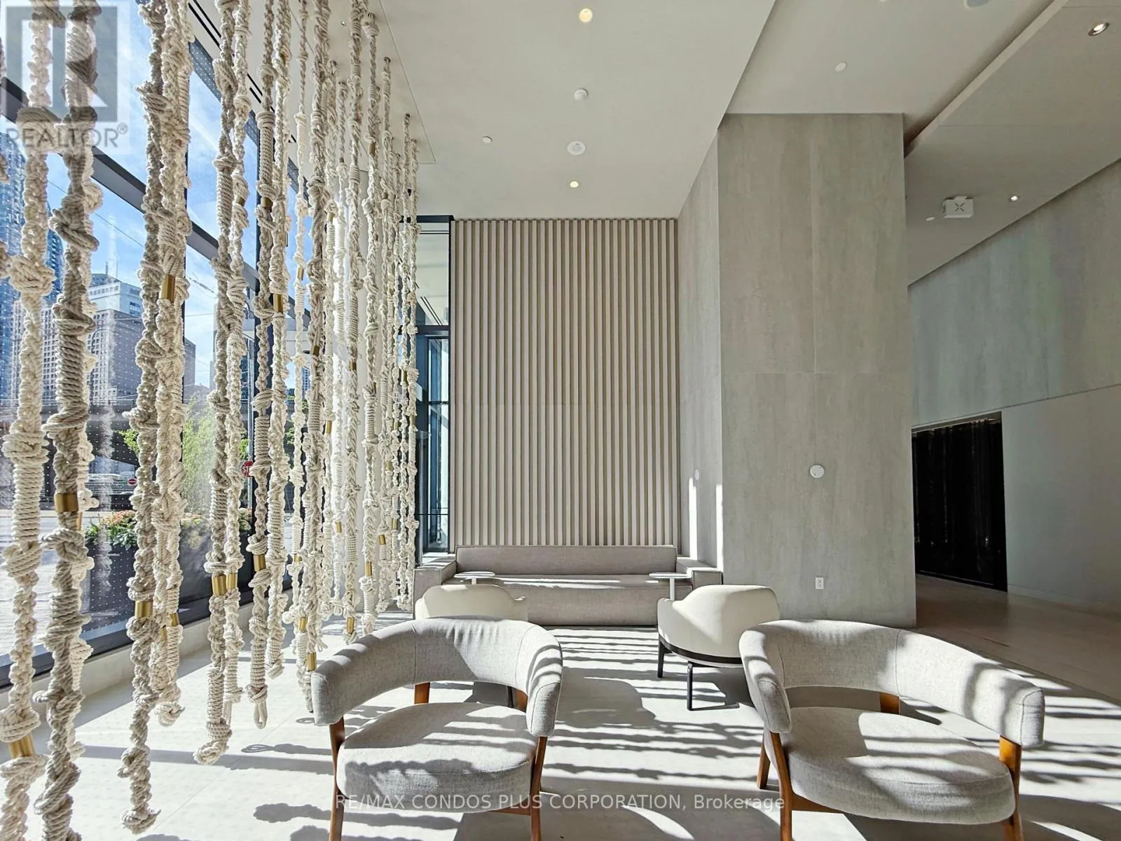 Queens Quay E & Cooper St 1+Den unit with 1 bath in family-oriented Sugar Wharf condos by Menkes, offering 664 sq. ft. of interior space plus a 157 sq. ft. balcony. This suite features 9' smooth-finish ceilings, laminate flooring throughout, and floor-to-ceiling windows. The open-concept kitchen includes custom-designed cabinetry with a pantry, engineered quartz countertops, a porcelain slab backsplash, integrated appliances, and track lighting. The primary bedroom offers a walk-in closet. The spacious den can function comfortably as a second bedroom. The modern 4-piece bathroom features a shower with a frameless clear glass door and open wall-mounted shelving for extra storage. The angled, architecturally designed balcony offers a partial south-facing view of the lake. Residents enjoy premium amenities including a grand 2-storey lobby with 24-hour concierge, a state-of-the-art fitness centre with aerobics and basketball courts, indoor lap pool, co-working rooms, party room with kitchen, social lounges, theatre rooms, hobby studio, kids play zone, hammock lounge, BBQ terrace, and hotel-style guest suites. Walking distance to the waterfront, Sugar Beach, parks, Union Station, St. Lawrence Market, and the Financial District. Just steps to shops, restaurants, Farm Boy, Loblaws, LCBO, and future direct PATH access with an on-site school planned. (id:27476)