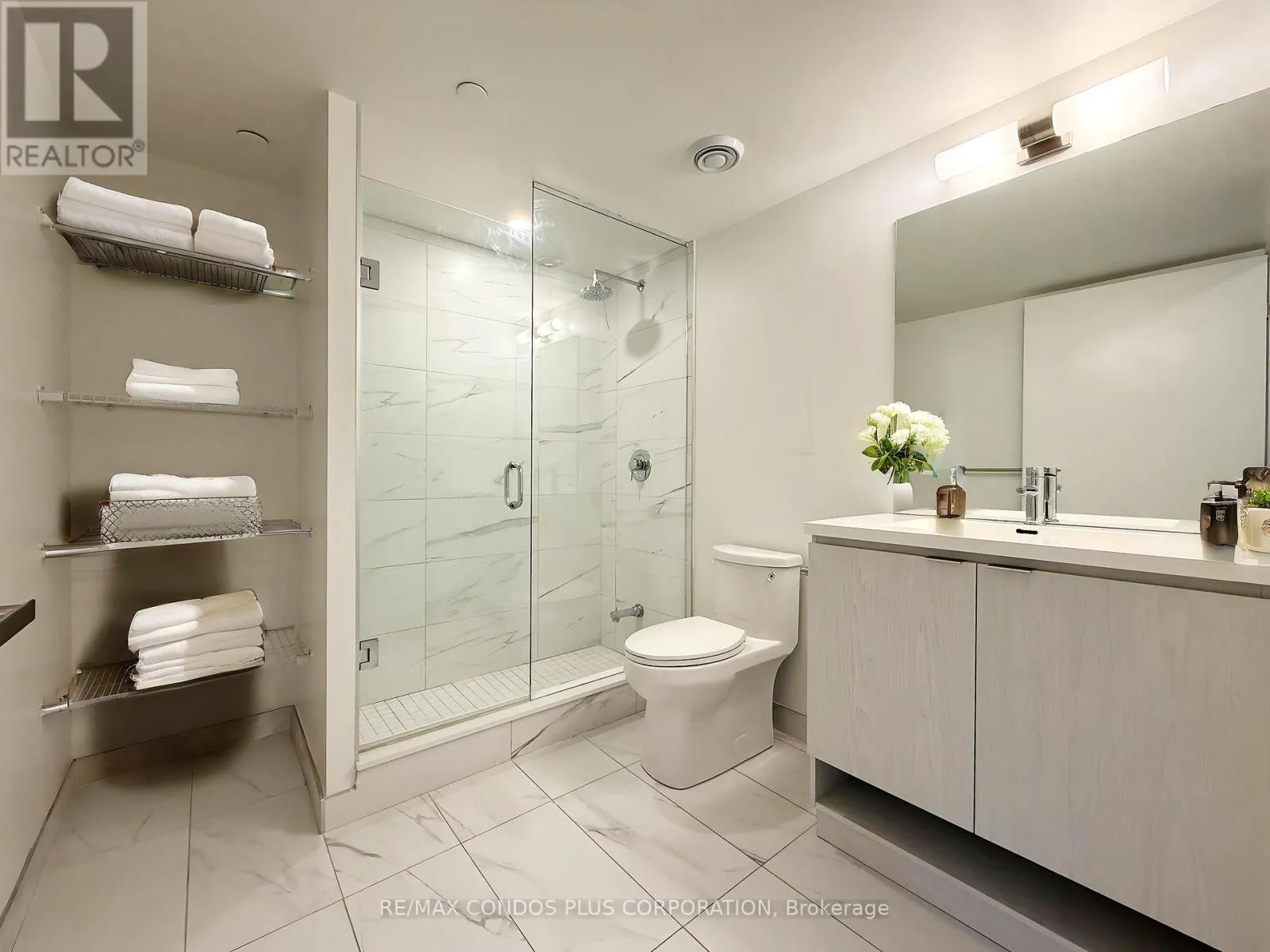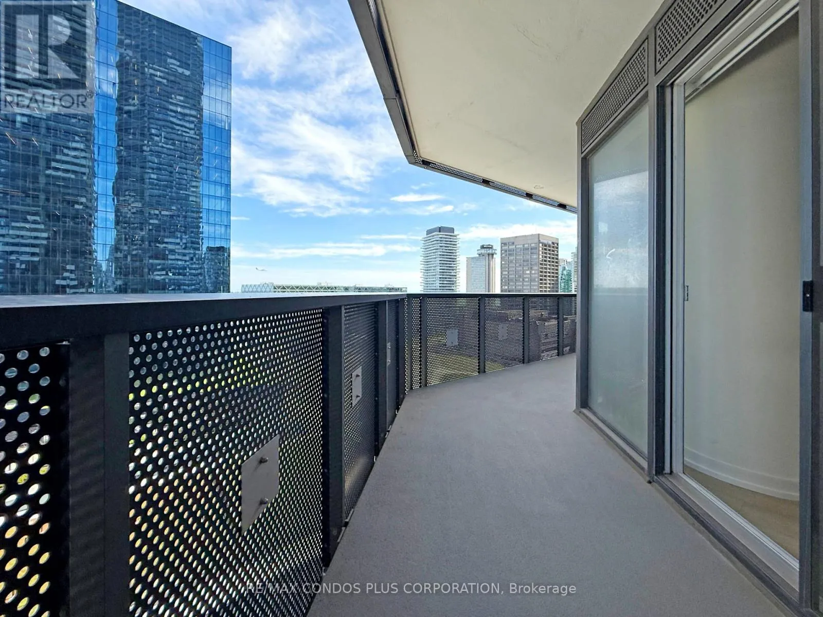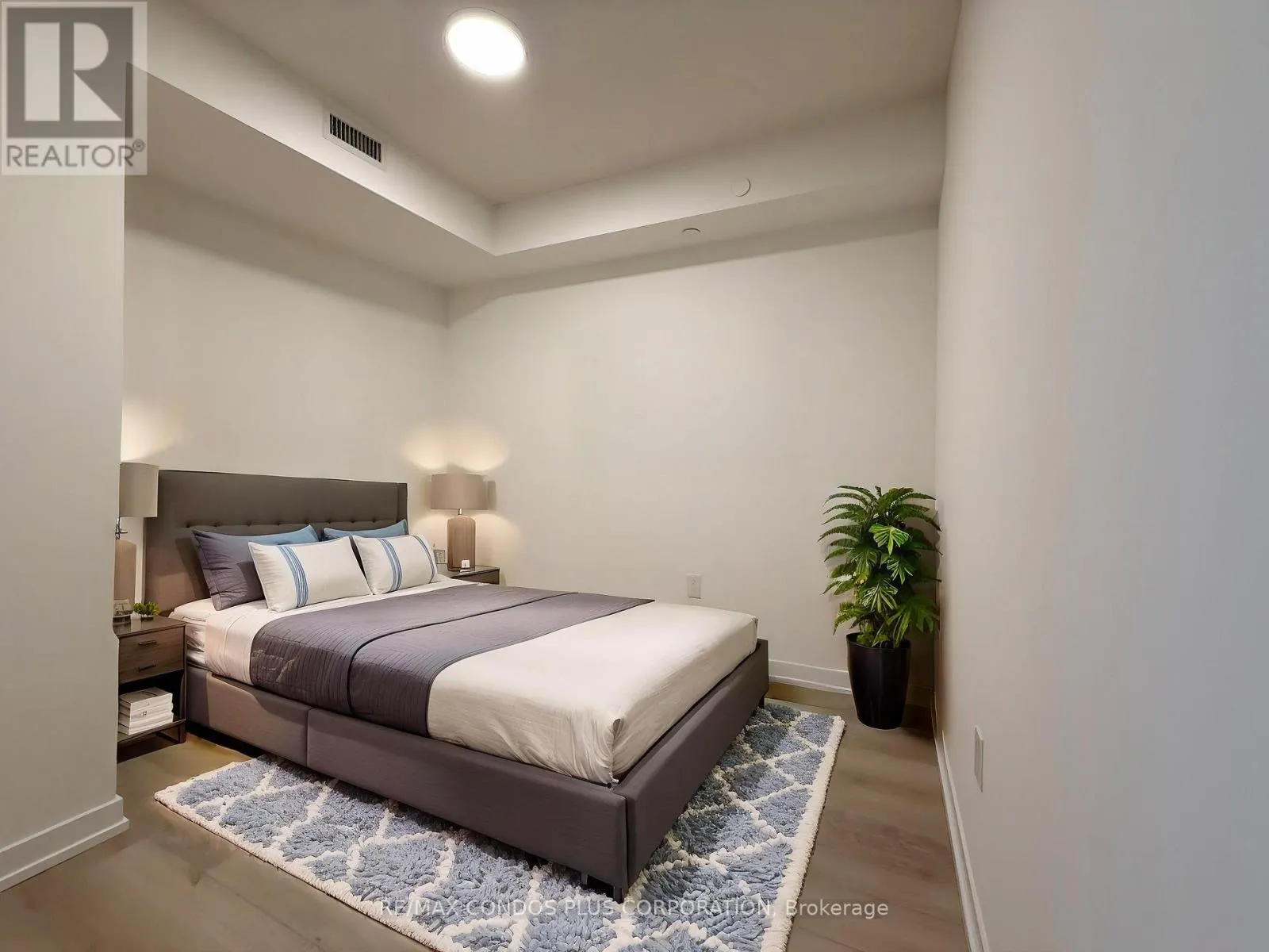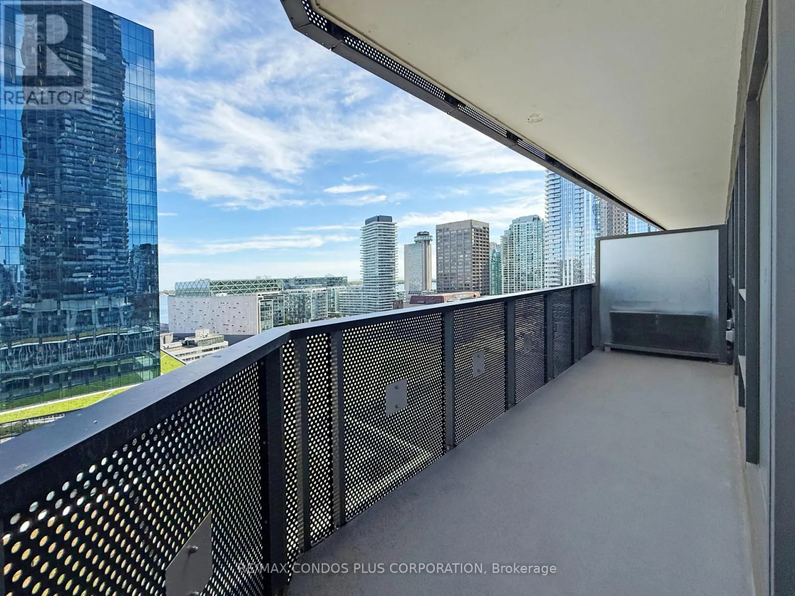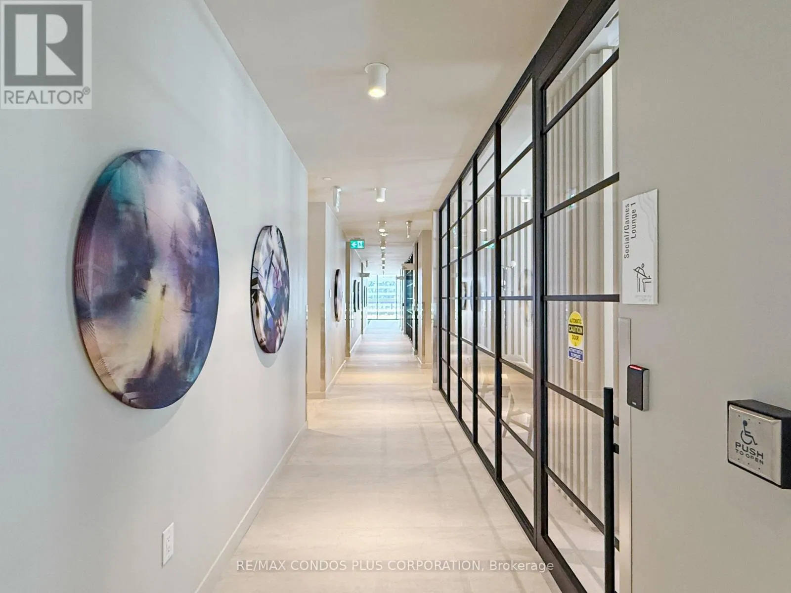 Queens Quay E & Cooper St 1+Den unit with 1 bath in family-oriented Sugar Wharf condos by Menkes, offering 664 sq. ft. of interior space plus a 157 sq. ft. balcony. This suite features 9' smooth-finish ceilings, laminate flooring throughout, and floor-to-ceiling windows. The open-concept kitchen includes custom-designed cabinetry with a pantry, engineered quartz countertops, a porcelain slab backsplash, integrated appliances, and track lighting. The primary bedroom offers a walk-in closet. The spacious den can function comfortably as a second bedroom. The modern 4-piece bathroom features a shower with a frameless clear glass door and open wall-mounted shelving for extra storage. The angled, architecturally designed balcony offers a partial south-facing view of the lake. Residents enjoy premium amenities including a grand 2-storey lobby with 24-hour concierge, a state-of-the-art fitness centre with aerobics and basketball courts, indoor lap pool, co-working rooms, party room with kitchen, social lounges, theatre rooms, hobby studio, kids play zone, hammock lounge, BBQ terrace, and hotel-style guest suites. Walking distance to the waterfront, Sugar Beach, parks, Union Station, St. Lawrence Market, and the Financial District. Just steps to shops, restaurants, Farm Boy, Loblaws, LCBO, and future direct PATH access with an on-site school planned. (id:27476)