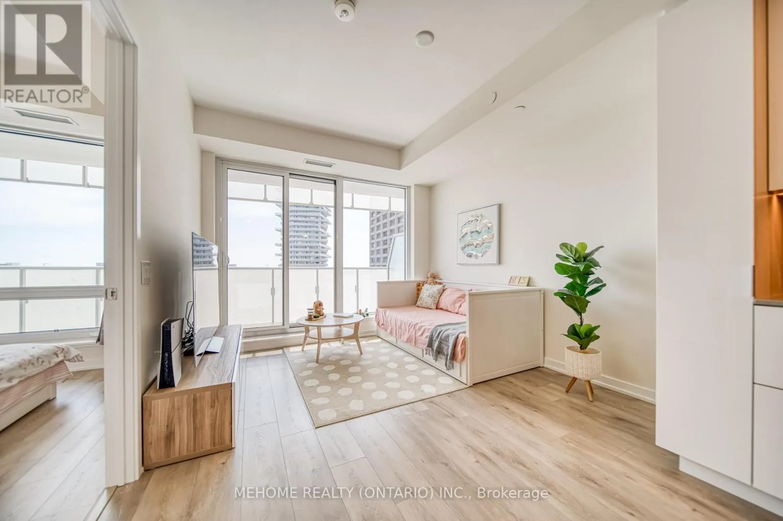 Yonge St. and Lakeshore Blvd. Experience luxury waterfront living at The Prestige at Pinnacle One Yonge with this spacious 646 sq. ft. south-facing 1+1 bedroom suite featuring breathtaking lake and city views through floor-to-ceiling windows. Designed with both style and function, the open-concept kitchen offers quartz countertops, a modern backsplash, stainless steel appliances, and integrated fridge and dishwasher, while sleek laminate flooring flows throughout. The large den provides versatile use as a home office or guest space, and the extra-deep 137 sq. ft. balcony extends your living space outdoors. Perfectly situated in Toronto's vibrant South Core and Harbourfront district, you are steps from Sugar Beach, Union Station, Scotiabank Arena, Rogers Centre, the CN Tower, and the Financial District, with future direct PATH access and easy connectivity to the Gardiner Expressway. Residents enjoy world-class amenities including an indoor pool, double gym, outdoor track, dog park, and community lounge, offering the ideal blend of urban convenience and waterfront tranquility. (id:27476)