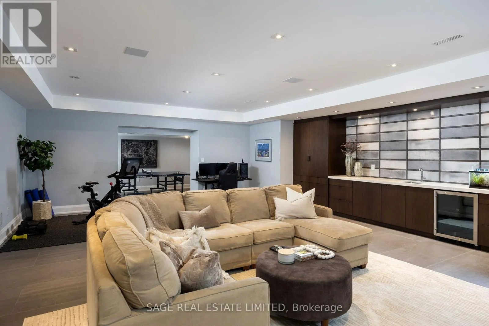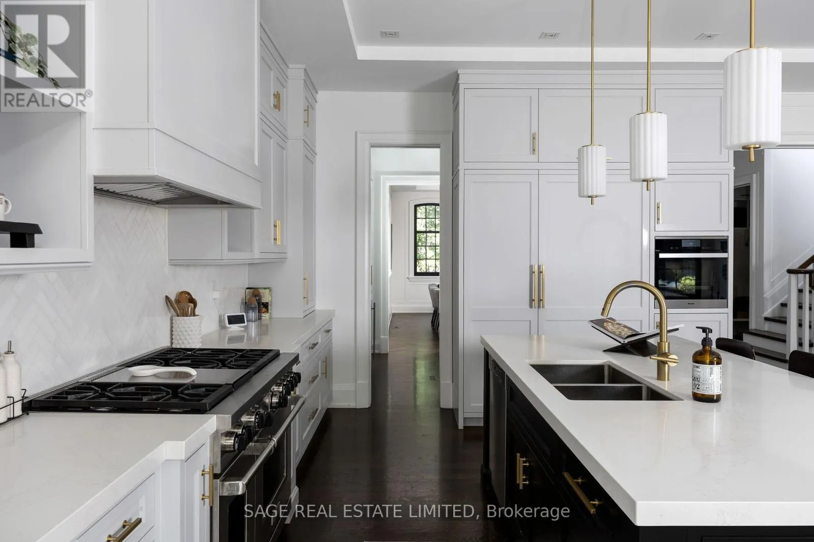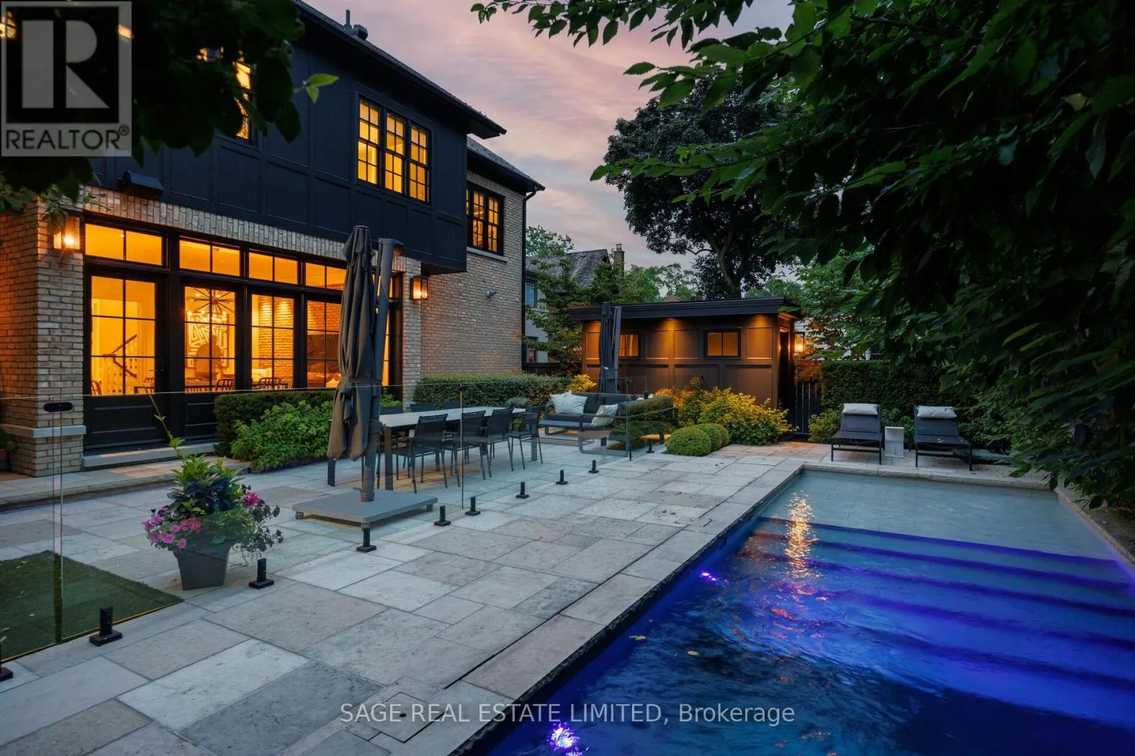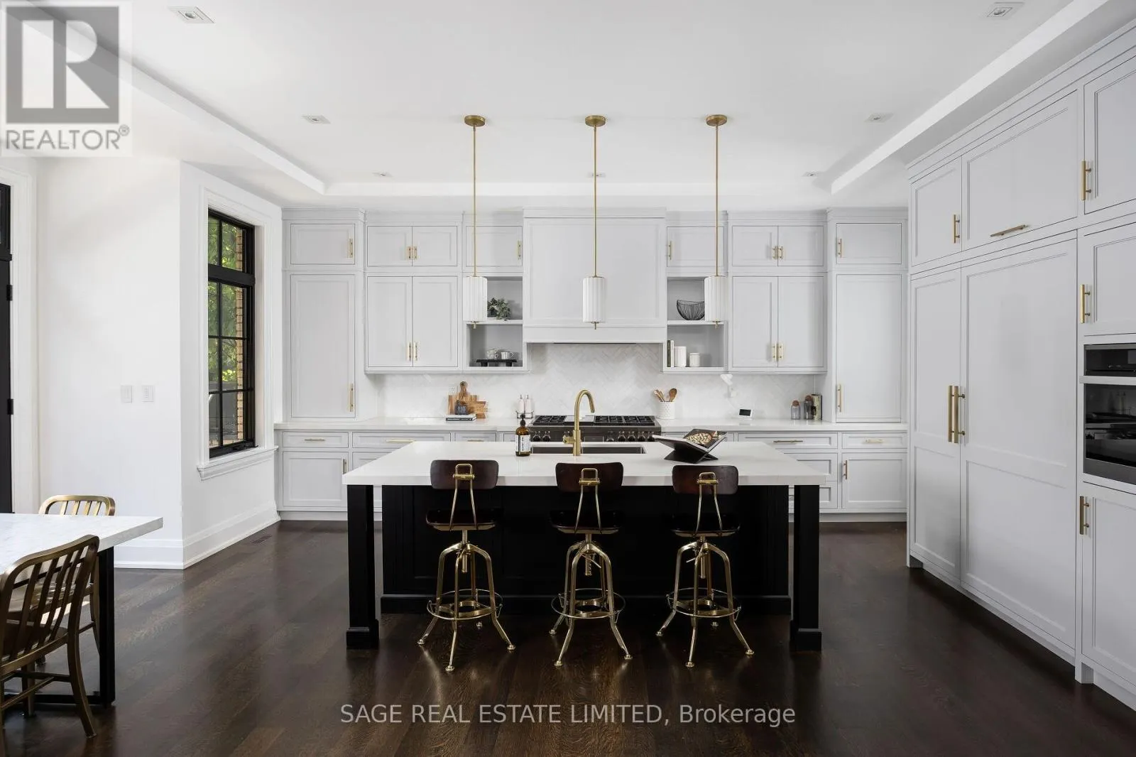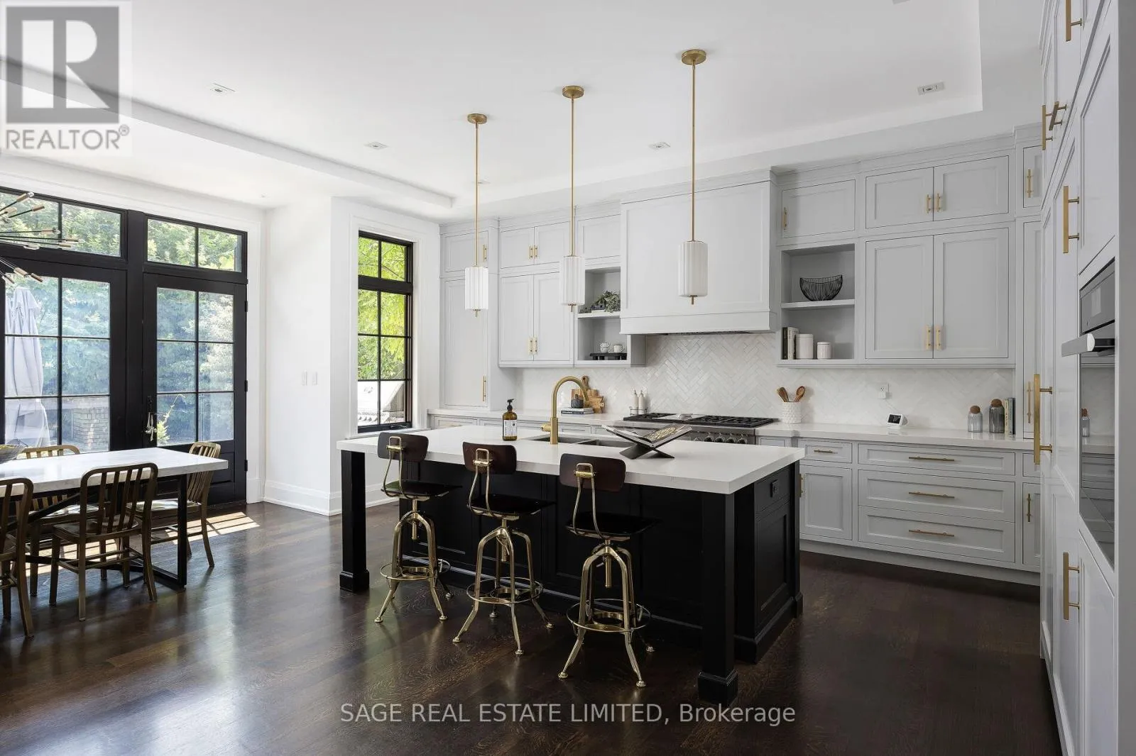 Cross Streets: Bloor St. W/Royal York. ** Directions: Strath via Prince Edward Drive. A Home of Quiet Distinction. Nestled on one of The Kingsways most admired streets, 55 Strath Avenue is a residence of rare calibre. Crafted in 2019 by Gallery Homes, this exquisite home is defined by its enduring architecture, refined detailing, and exceptional livability. From its hand-moulded brick exterior to its slate roof and concrete-poured saltwater pool, every element has been considered. This is not simply a home, but a statement of quality and permanence in one of Torontos most coveted neighbourhoods. Stained white oak flooring, detailed paneling, Ridley windows, Lutron lighting, and built-in speakers set a sophisticated tone throughout. Heated floors on all levels ensure comfort year-round. The formal living room features a classic wood-burning fireplace, while the chefs kitchen is equipped with premium appliances and opens to a warm, inviting great room with an exposed brick feature wall and walkout to the patio and pool. The upper level offers four well-planned bedrooms, including a generous primary suite with two walk-in closets, one large enough to serve as a private den, and a serene ensuite bath. A second bedroom features its own ensuite, while the remaining two overlook the front garden and share a family bath. A second-floor laundry room adds everyday convenience. The fully finished lower level includes a large recreation area, dedicated playroom, built-in wine cellar, a fifth bedroom or office with full bath, and a second laundry with laundry sink and pantry. Outside, the snow-melt driveway and front entry ensure easy winter access, completing a home designed for comfort, quality, and longevity. Ideally located near top schools, Bloor Street shops and dining, and some of Torontos best golf, with quick access to downtown and the airport. This is a home that brings both lifestyle and location into perfect balance. (id:27476)