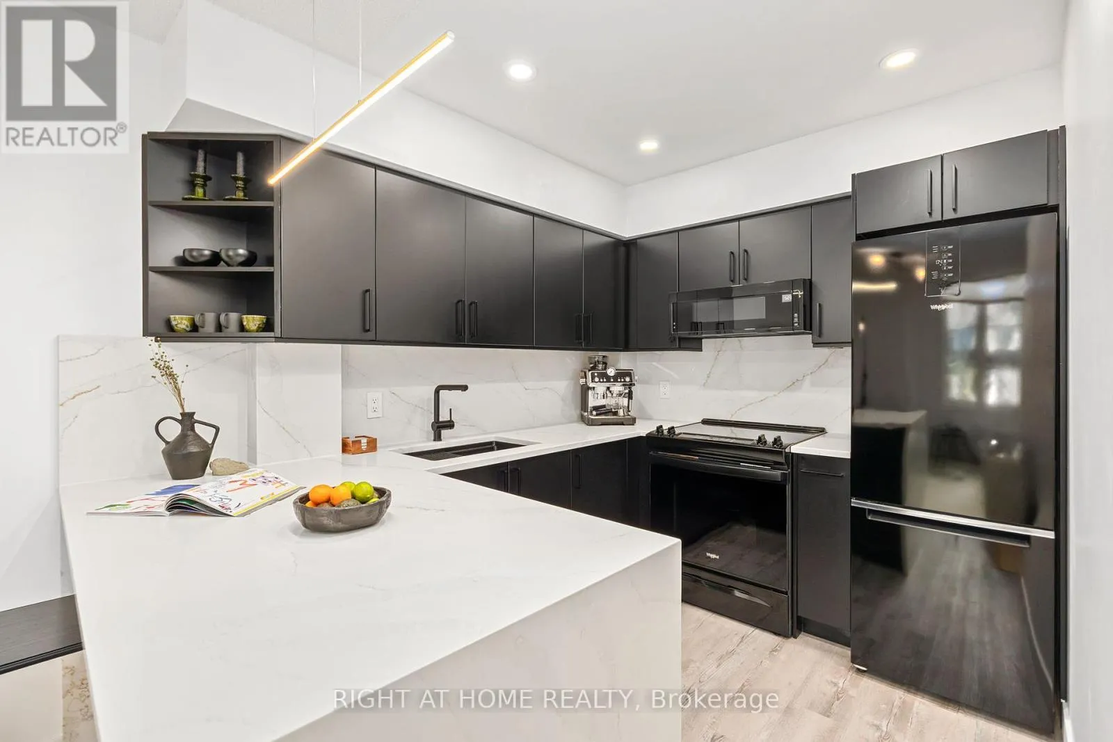 Cross Streets: King St West and Sudbury Street. ** Directions: Between Queen St W and King St W. A showcase of modern design, this fully renovated 3-bedroom, 2-bathroom townhouse has been reimagined in 2024 with an eye for detail and style. The chef-inspired kitchen features sleek quartz countertops, a continuous backsplash, and black appliances that create a striking contrast against clean lines and open space. Bathrooms have been elevated to spa quality, including a hotel-inspired main bath with black fixtures, sophisticated tilework, and a calming aesthetic. New flooring (2024) runs seamlessly throughout, enhancing the flow of natural light and emphasizing the homes contemporary palette. The private rooftop terrace offers a perfect vantage point for iconic CN Tower views. Designed for both form and function, this home balances minimalist elegance with everyday livability. Private parking completes the package, ensuring convenience without compromise. A rare opportunity to own a thoughtfully curated residence that embodies a modern design ethos. (id:27476)