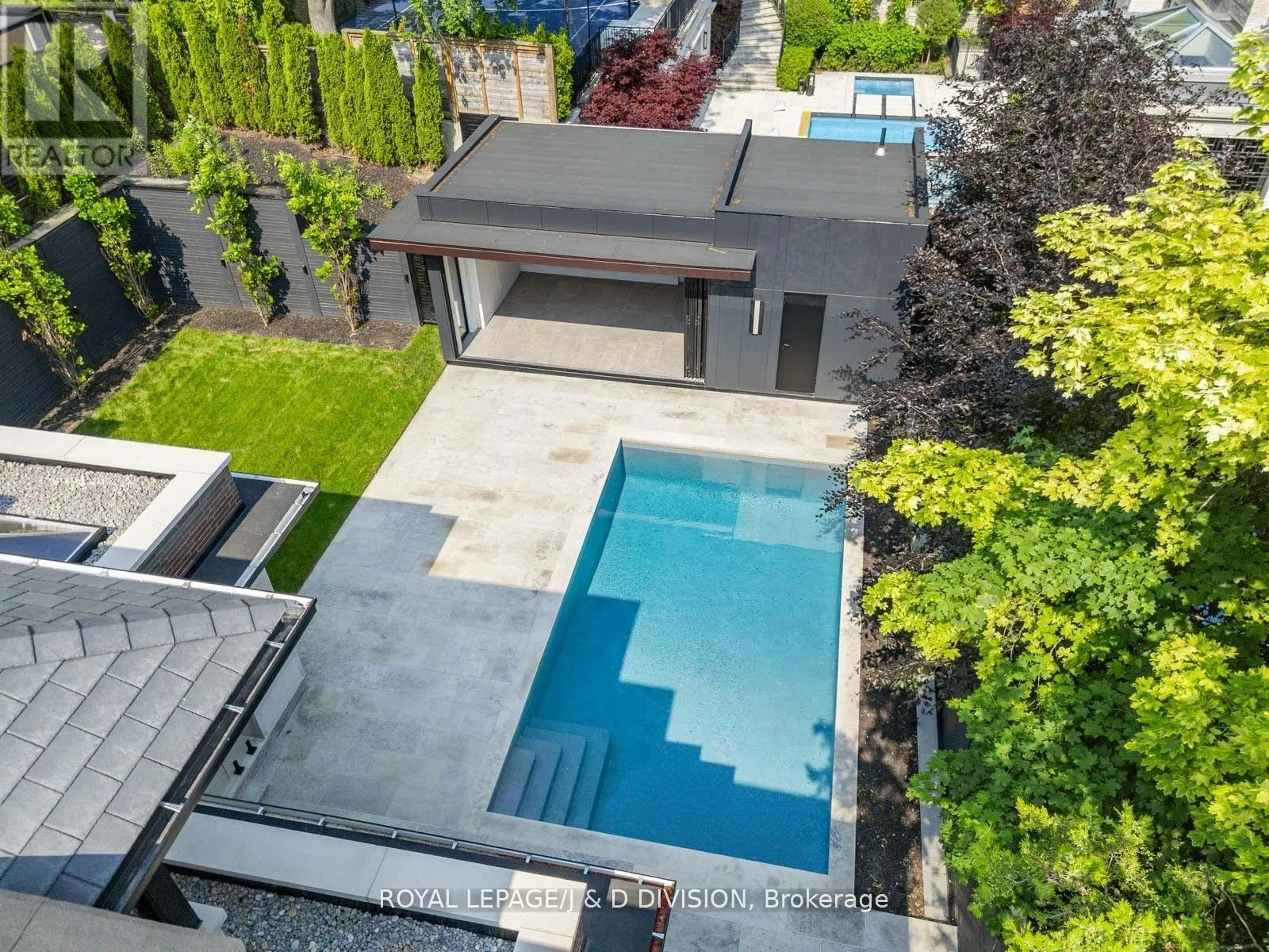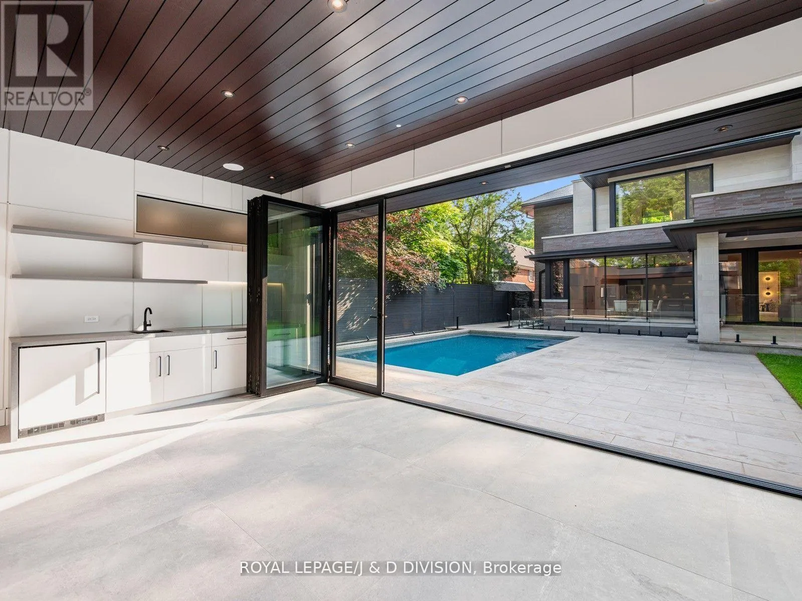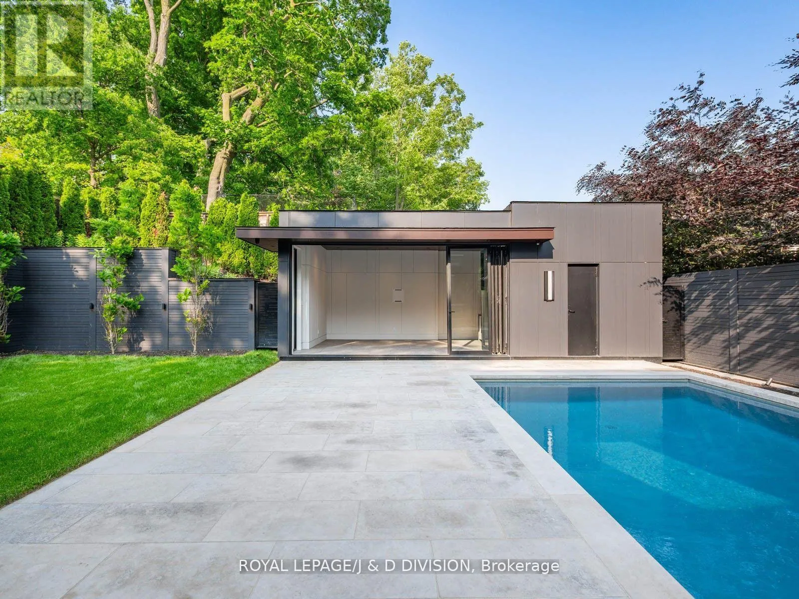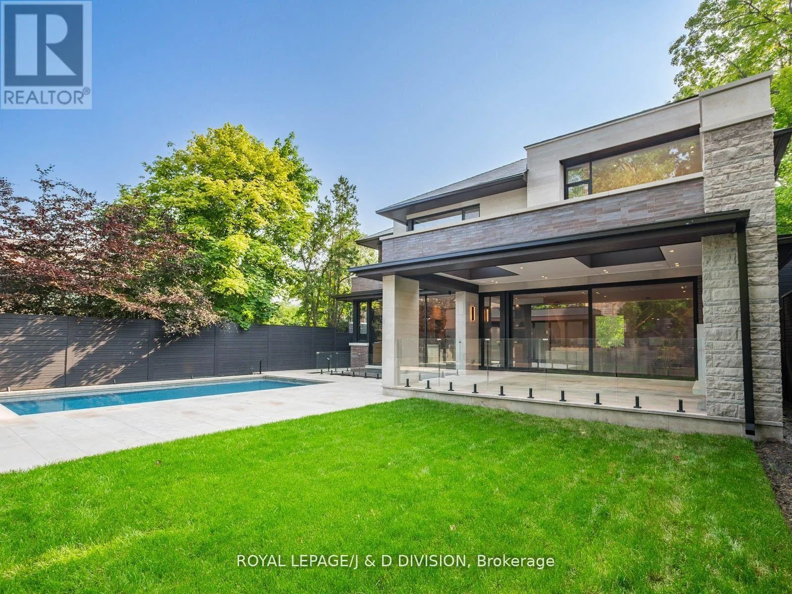 Cross Streets: Mt Pleasant / Lawrence. ** Directions: Between Dawlish and Strathgowan. Rarely offered contemporary custom crafted home in prime Lawrence Park. Quiet treelined street, sensational curb appeal with limestone, brick exterior, large floor to ceiling windows. Quality finishes throughout, cohesive designing and modern layout. Exceptional Great Room combining casual living space, dining and spectacular eat-in kitchen with clean lines and integrated finishes. Expansive glass windows and doors, all overlooking the incredible backyard pool, cabana and entertainer patio. Perfectly positioned powder room off the mudroom which has side door entry and direct access to the double car garage. Primary suite with a treetop view of the pool, 5 piece ensuite bathroom and unreal dressing room fit with a custom closet system. 3 remaining bedrooms with ensuite bathrooms and walk-in closets. Second floor laundry room for ease and convenience. 10 ft ceilings on the main floor and second floor. Sensational basement (9 foot ceilings) with supersized family room, the generous proportions allow for entertainment area and games room. There is a bonus home gym and an additional bedroom with 3-piece ensuite bathroom. This house boasts incredible natural light, custom paneling, oak hardwood floors and heated porcelain tile floors throughout. The backyard has been designed for entertaining in the city. The covered patio with gas fireplace is perfect for entertaining and the salt water pool and sundeck will keep the kids happy. The rear cabana offers bonus climate controlled space year round. Landscaped with column trees and sleek metal fencing for the ultimate in privacy. No expense spared in the construction of this contemporary masterpiece. (id:27476)