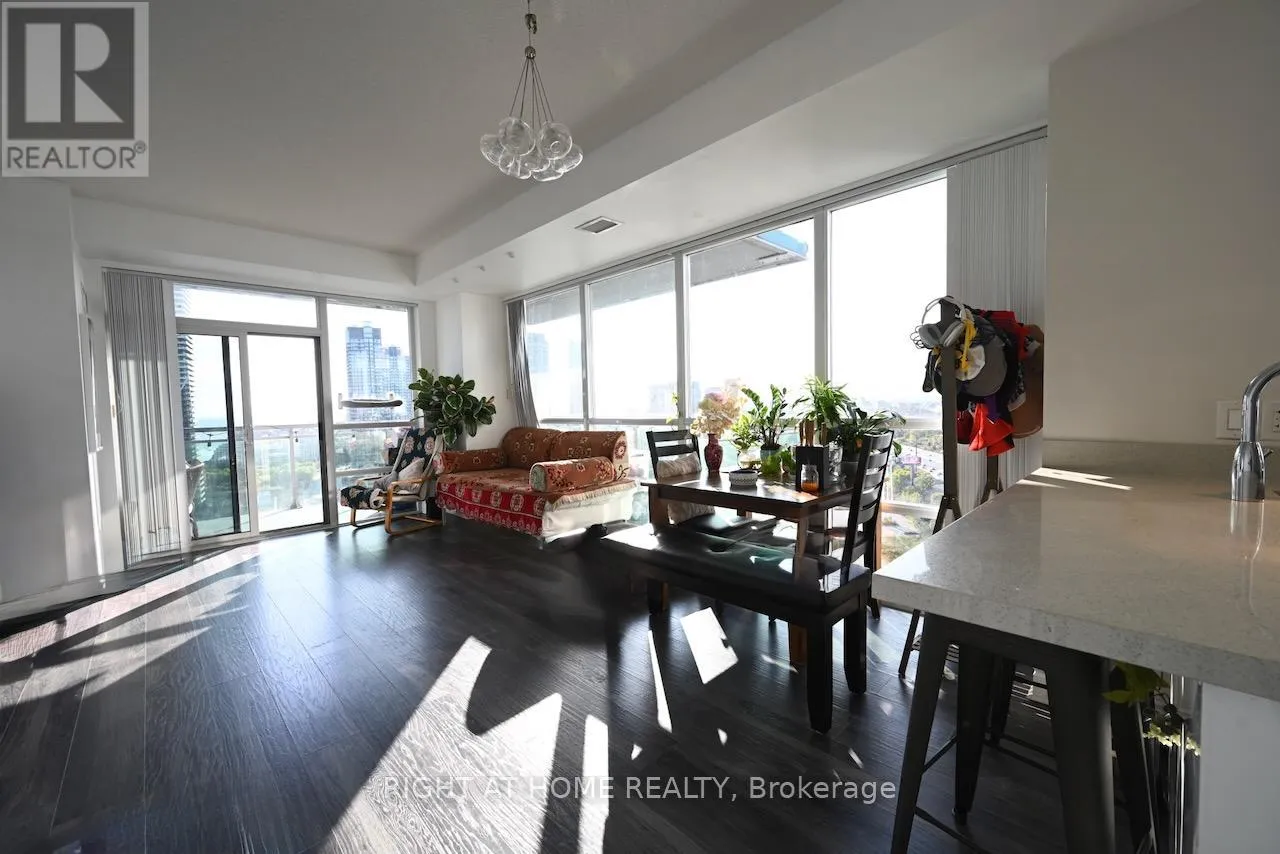 Cross Streets: Lake Shore Blvd. W / Brookers Lane. ** Directions: Take Lake Shore Blvd West and Right at Brookers Lane. This beautifully appointed 1-bedroom condo high above the city captures sweeping vistas of Lake Ontario from a coveted corner suite and open balcony on the 23rd floor. Perfectly positioned just moments from the tranquil Lake Shore waterfront, residents enjoy instant access to scenic walking and cycling trails, while a wealth of transit options nearby makes travel effortless and efficient. Step inside to find airy, open-concept living and dining areas, bathed in natural light and showcasing a sleek, modern design ideally suited for both unwinding after a busy day and entertaining guests. Enjoy premium amenities including a fully equipped fitness centre and an elegant party room for social gatherings.Set within one of Etobicoke's most desirable waterfront neighbourhoods, this rental promises a blend of relaxation, convenience, and urban lifestyle making it a truly exceptional opportunity for those seeking lakeside living with city access. (id:27476)