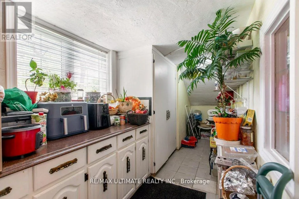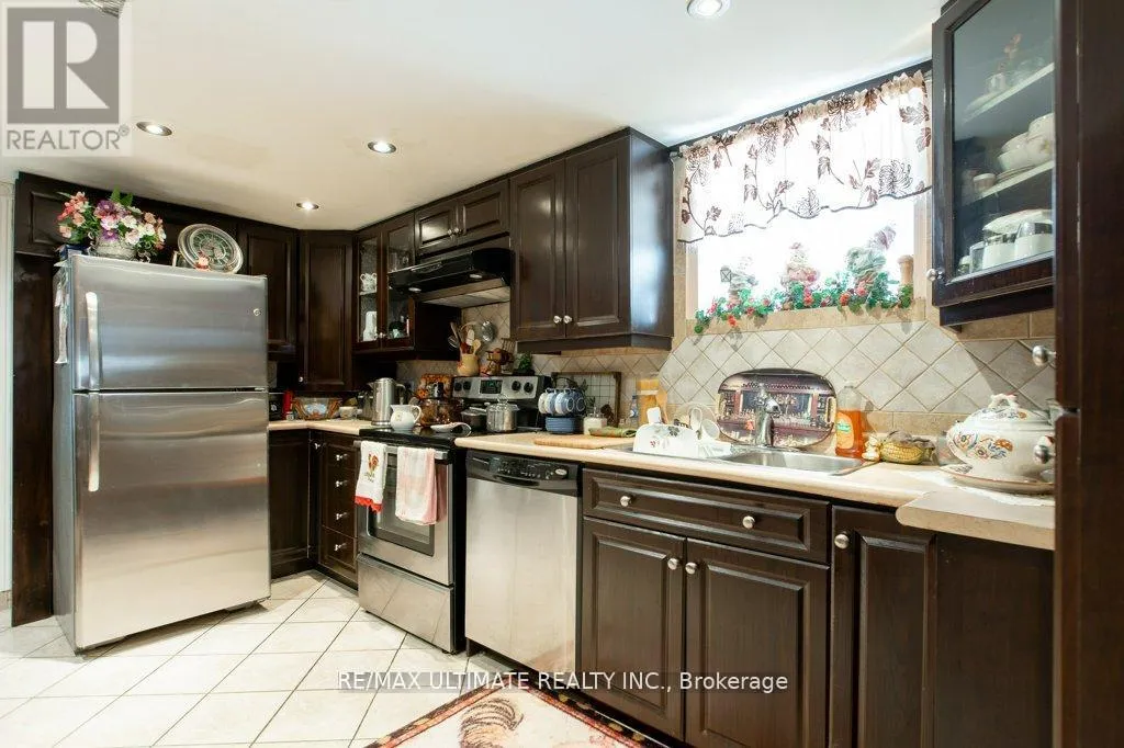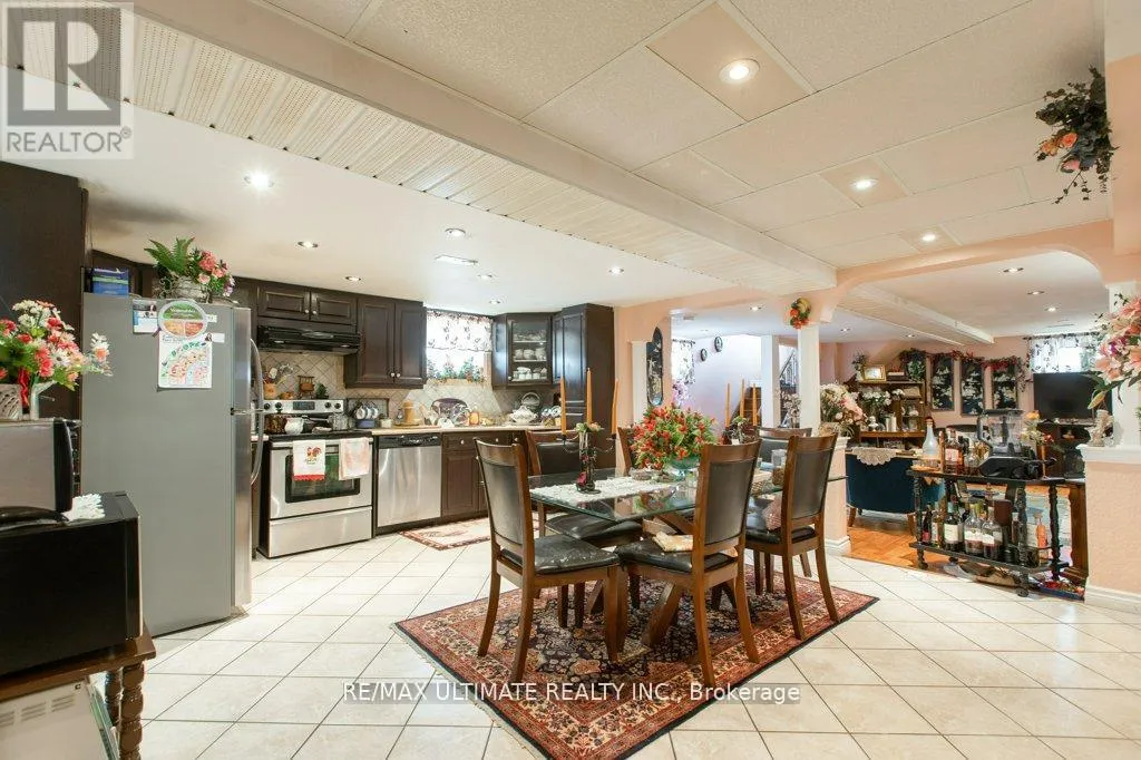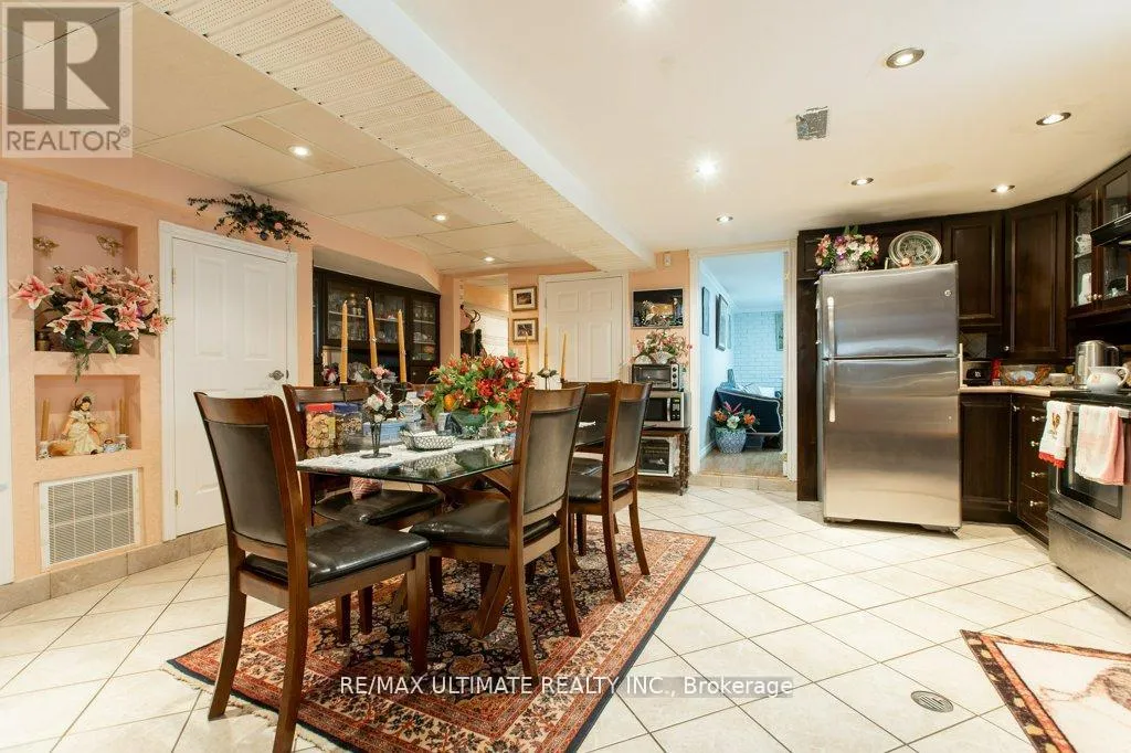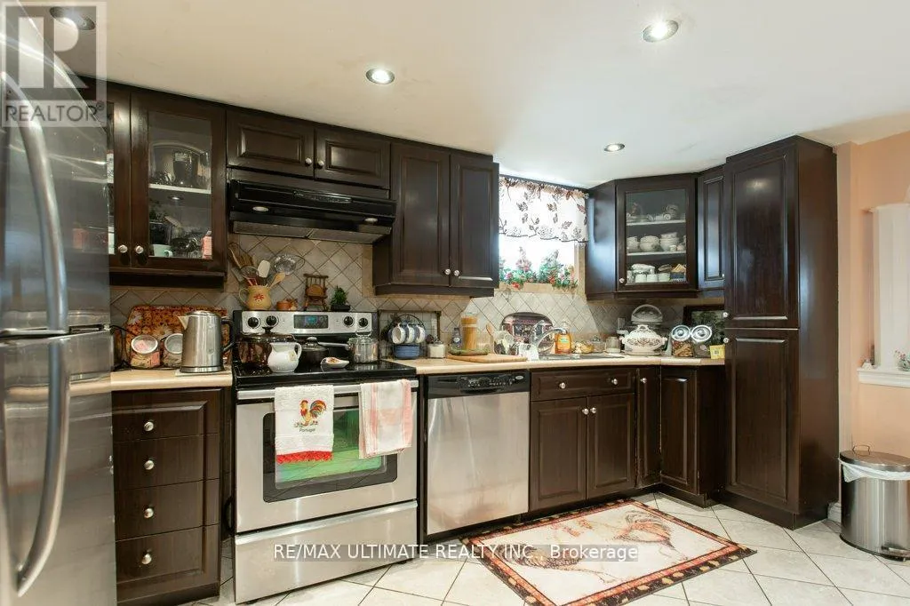 Rogers Rd & Silverthorn Ave Fabulous bungalow featuring a rear second-floor addition, offering a total of over 2,300 square feet of living space (1,569 square feet above ground and 800 square feet below ground). The home was fully renovated and extended in 2008, using high-quality materials and craftsmanship. It boasts a large front veranda and an entrance door with glass panels. The spacious open-concept living and dining area crown molding. Modern kitchen is equipped with stainless steel appliances, glass cabinets, and a ceramic backsplash, along with a large wall-to-wall window that leads out to an interlocking patio.An oak staircase leads to the primary bedroom, which features his and her closets and a four-piece washroom. The professionally finished basement has a separate entrance, a large living room and dining area, a modern kitchen with stainless steel appliances, and an additional bedroom. The property features a private driveway with a double garage, providing a total of six parking spaces. (id:27476)
