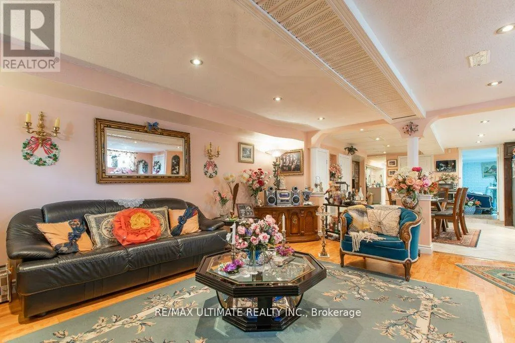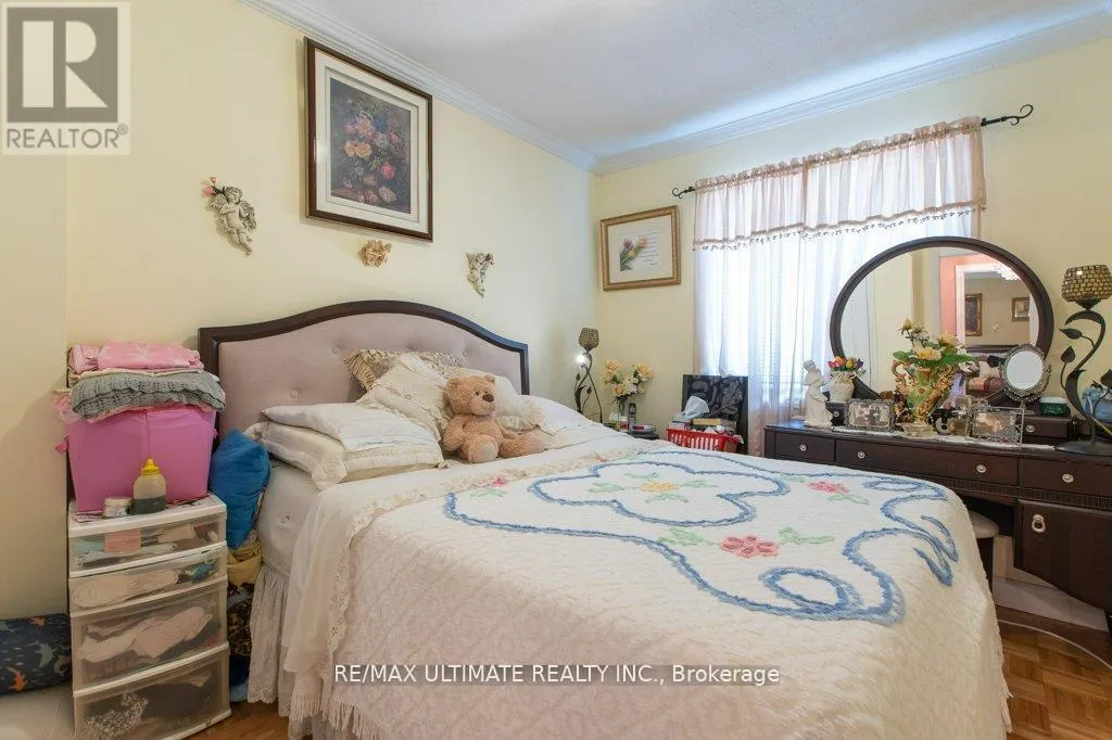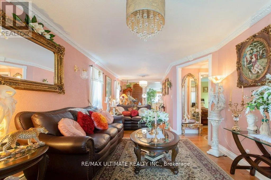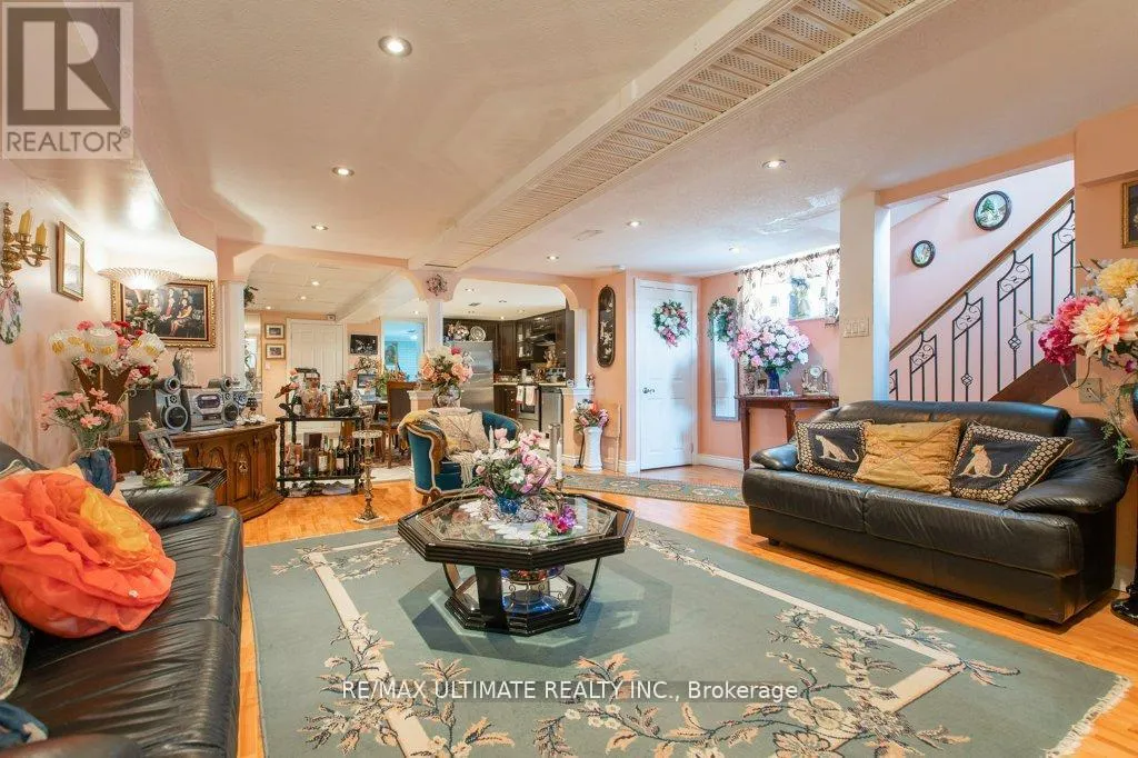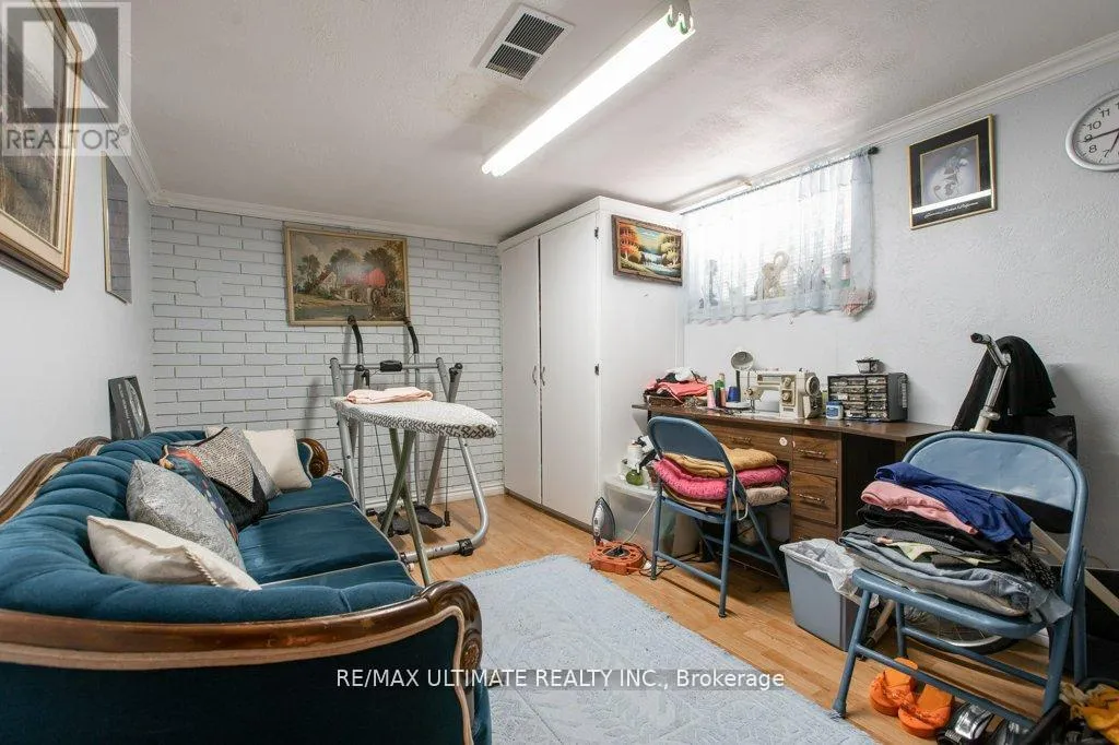 Rogers Rd & Silverthorn Ave Fabulous bungalow featuring a rear second-floor addition, offering a total of over 2,300 square feet of living space (1,569 square feet above ground and 800 square feet below ground). The home was fully renovated and extended in 2008, using high-quality materials and craftsmanship. It boasts a large front veranda and an entrance door with glass panels. The spacious open-concept living and dining area crown molding. Modern kitchen is equipped with stainless steel appliances, glass cabinets, and a ceramic backsplash, along with a large wall-to-wall window that leads out to an interlocking patio.An oak staircase leads to the primary bedroom, which features his and her closets and a four-piece washroom. The professionally finished basement has a separate entrance, a large living room and dining area, a modern kitchen with stainless steel appliances, and an additional bedroom. The property features a private driveway with a double garage, providing a total of six parking spaces. (id:27476)