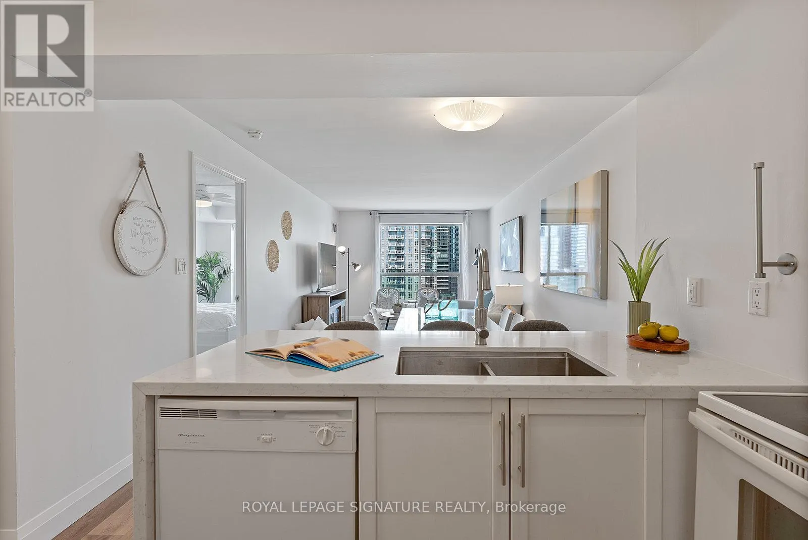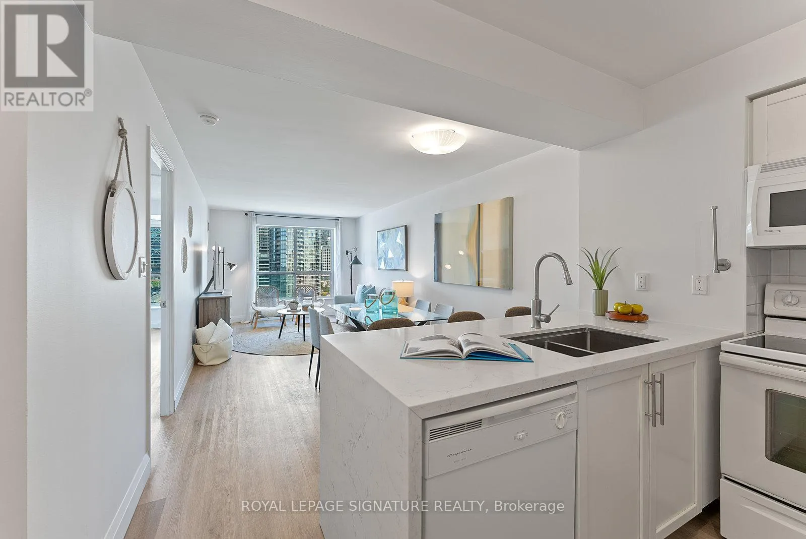 Spadina / Queens Quay Welcome to Aqua Condos on Toronto's Waterfront! This spacious 1-bedroom, 1-bathroom suite offers 652 sq. ft. of thoughtfully designed living space with a desirable north-facing city view. With 9-foot ceilings and floor-to-ceiling windows, the unit is filled with natural light, creating an inviting and open atmosphere. The generous living and dining areas provide plenty of room to entertain or relax in comfort. The primary bedroom is impressively large, offering flexibility for a king-sized bed and additional furnishings. The bathroom features both a soaker tub and a separate glass-enclosed shower, giving you the luxury of choice. Recently freshly painted throughout, this home is move-in ready and waiting for its next owner. Practical features include one underground parking spot and access to hotel-inspired building amenities. Residents enjoy visitor parking, a fully equipped fitness centre, a stylish party room, and an expansive rooftop terrace with BBQ areas and panoramic views of both the city skyline and Lake Ontario. Aqua Condos is known for its exceptional lifestyle and exclusivity, with suites in the building rarely offered for sale. Located at Queens Quay and Spadina, you'll be steps from the Harbourfront Centre, waterfront trails, shops, restaurants, and cafés. With the TTC at your doorstep and Union Station just minutes away, the entire city is easily accessible. Whether youre seeking a vibrant urban lifestyle or a serene retreat by the lake, this condo truly offers the best of both worlds. Experience downtown lakefront living at its finest don't miss your opportunity to call Aqua Condos home! (id:27476)