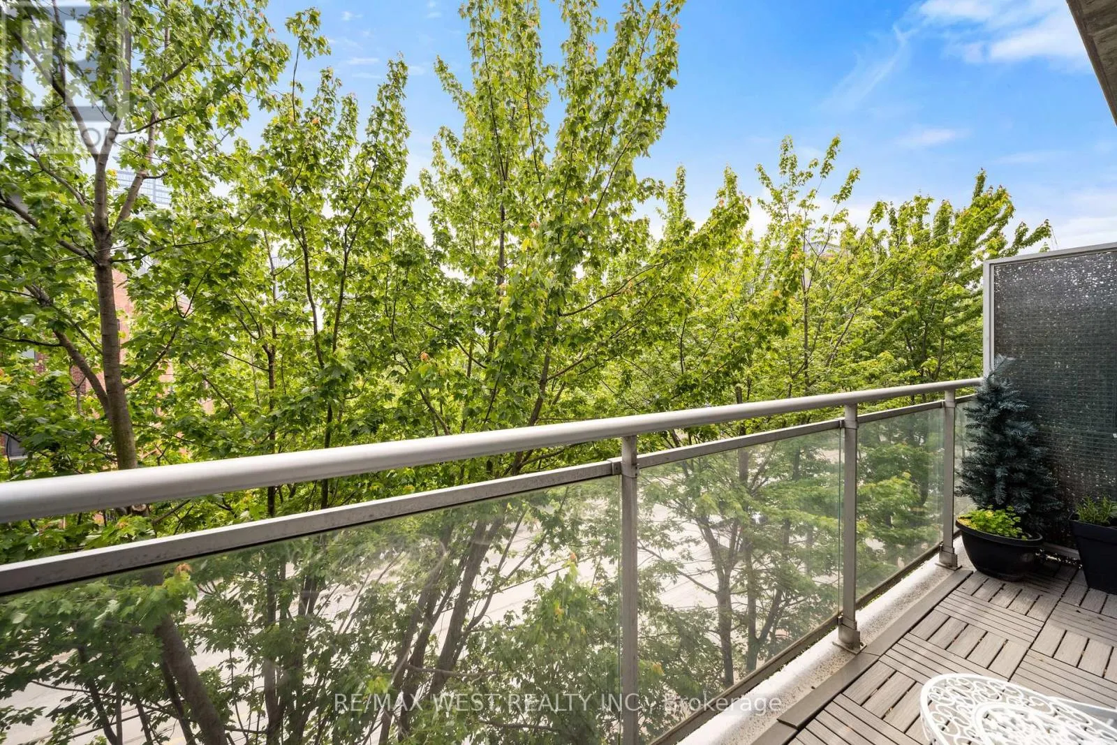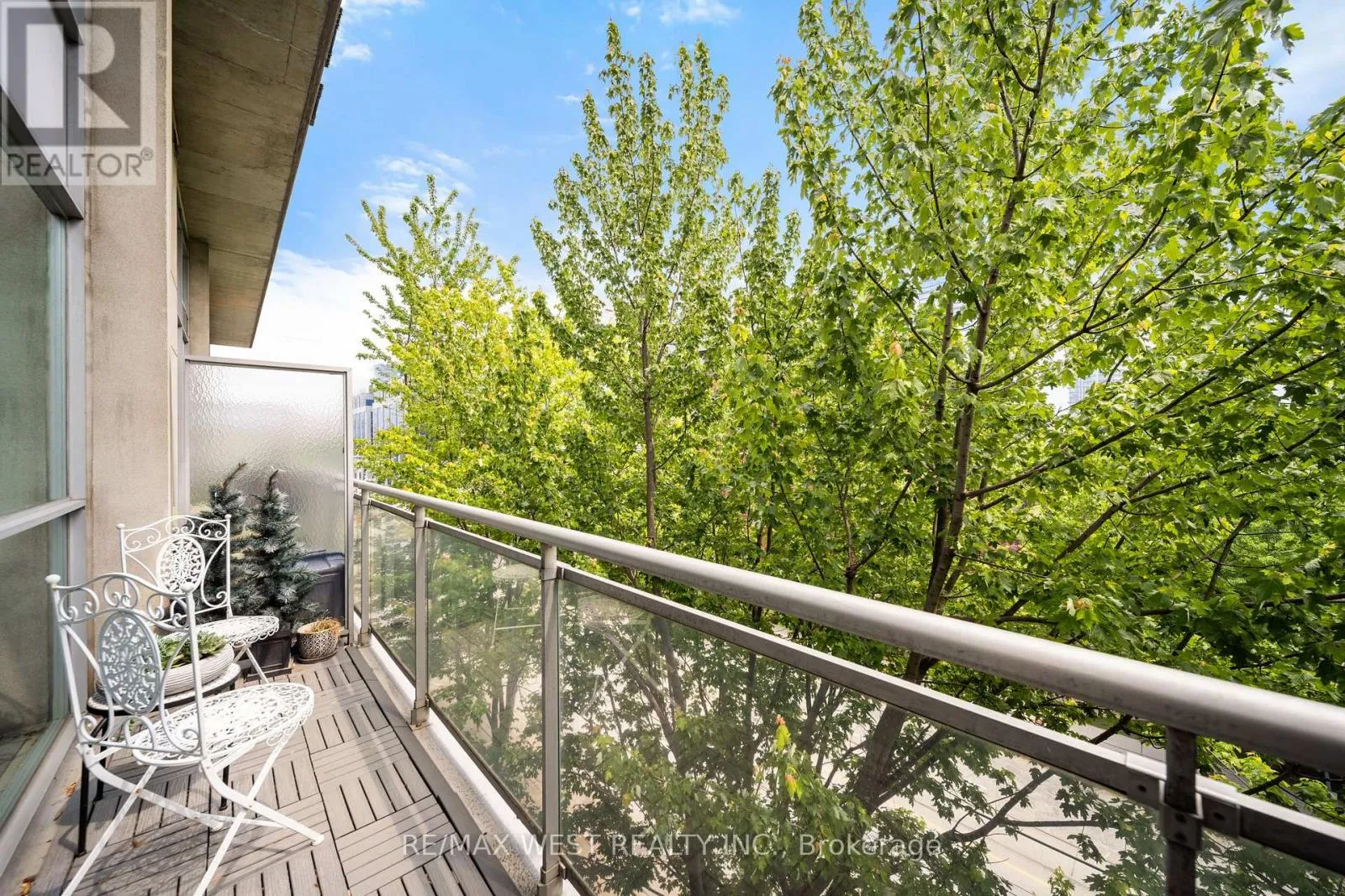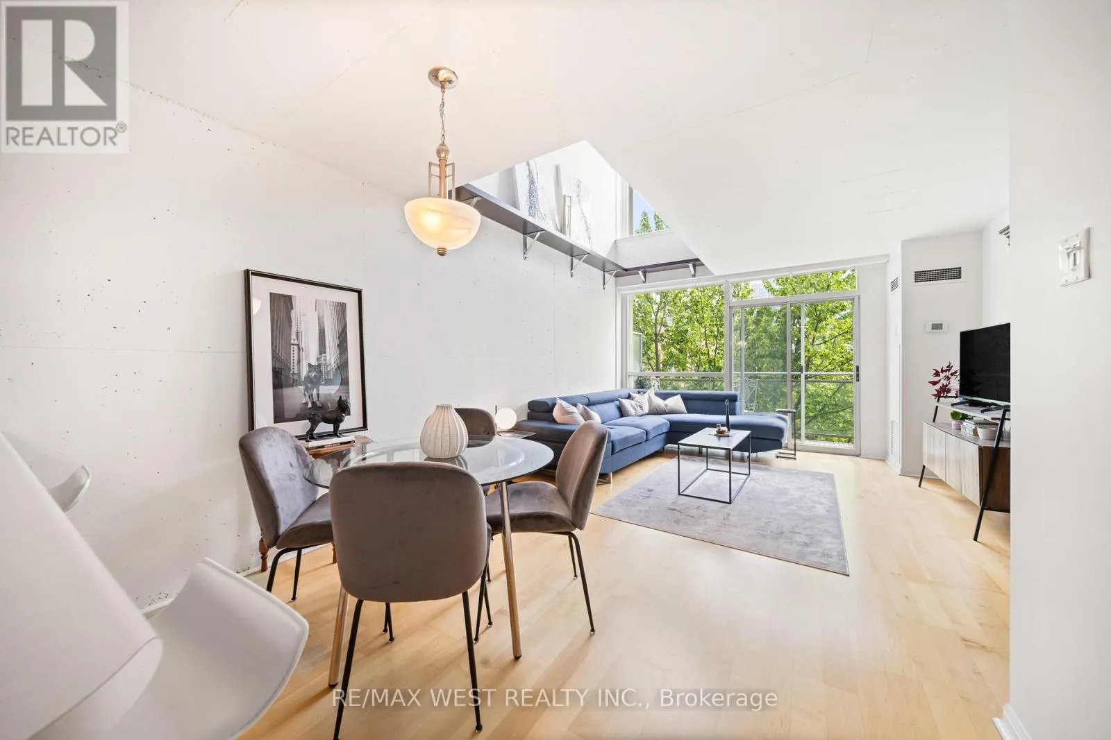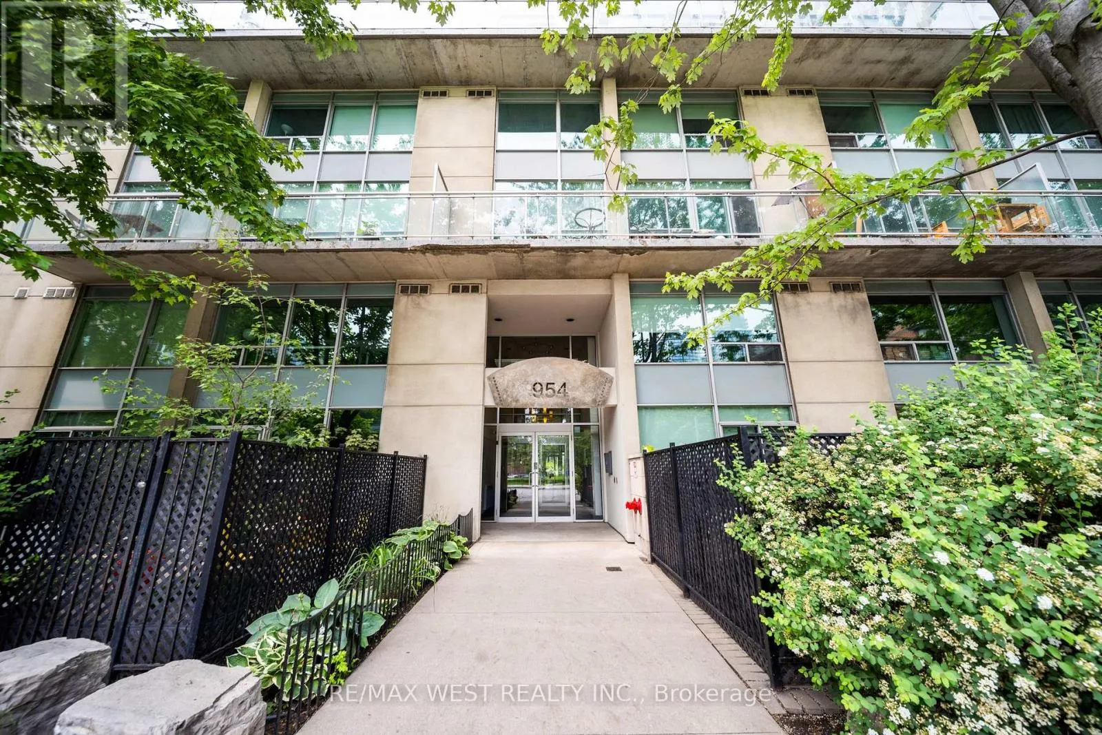 King St and Crawford Welcome to 954 King St West, suite 510, a bright and airy 2 storey, 1+1 bedroom, 2 bathroom unit in the King West Village Lofts.Nestled in the heart of King West, this condo is within easy walking distance of the fashion, entertainment, dining, shopping and night life attractions of this vibrant downtown neighbourhood. You can walk to Trinity Bellwoods Park and have a picnic, or stroll down to Liberty Village and the Exhibition grounds.We are also close to many local TTC routes as well as the Exhibition GO station. This suite features an open plan main level with hardwood floors and double height floor-to-ceiling windows letting in an abundance of natural light.The spacious living room has soaring 17ft ceilings, amplifying the sense of spaciousness, and a quiet balcony where you can enjoy your morning coffee.The functional kitchen is open to the living and dining area and has a large breakfast bar - perfect for entertaining. There is also a powder room on the main level. Upstairs there are two bright rooms; the primary bedroom with a double closet and ensuite 4 peice bathroom with a laundry room, as well as a second speacious room can be used as a bright, open office or even a spare bedroom. This unit comes with a parking spot and a locker. The building amenities include a gym, a party room, a meeting room and a media room. What a great opportunity to enjoy a downtown life style in the sought after King West neighbourhood! (id:27476)