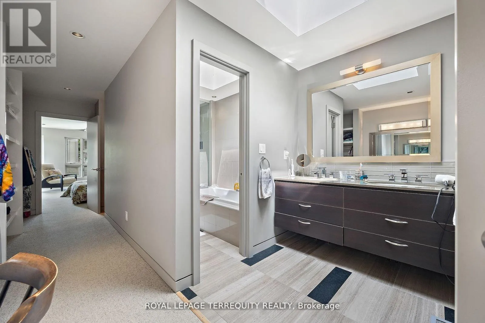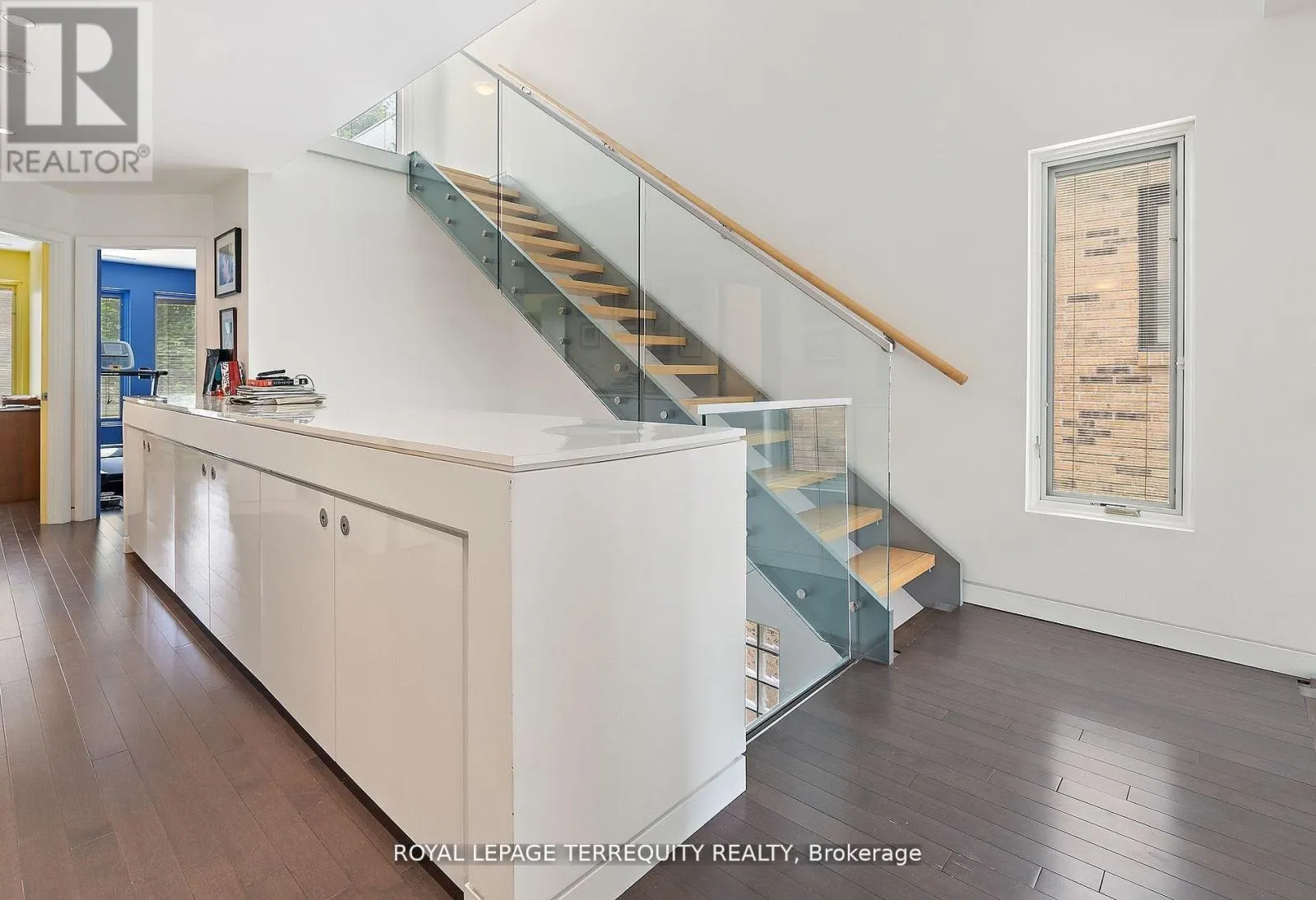 Cross Streets: Mount Pleasant Rd. and Eglinton Ave. E. ** Directions: Runs East of Mount Pleasant Rd South of Blythwood Road. Outstanding architect-designed-and-built home on 4 levels includes a central atrium and an airy 3rd floor Primary suite with 2 decks, a sitting room, skylights, built-ins and a 6-piece bathroom with heated floors. The open floor plan is flooded with natural light and the Pella windows are equipped with built-in blinds. Stainless steel ceiling fans in the high ceilings complement the contemporary design of the floating staircases and the functionality of the dual HVAC. The second floor boasts a unique workstation/storage unit with generous cupboards and a large countertop overlooking the dining room and its glass block feature, as well as the laundry room, 3 bedrooms and 2 full bathrooms, one of them ensuite. The Binns galley kitchen and dining room overlook the main floor family room with its wood burning fireplace and walk-out to the deep wooded lot. The recreation room or 5th bedroom also has a walk-out to the garden as well as a 3-piece bathroom. There is direct access to the garage and a separate front entrance on this floor. Located on a quiet, neighbourly, dead-end street in an eminently walkable area, there are three parking spaces. Motivated seller. (id:27476)