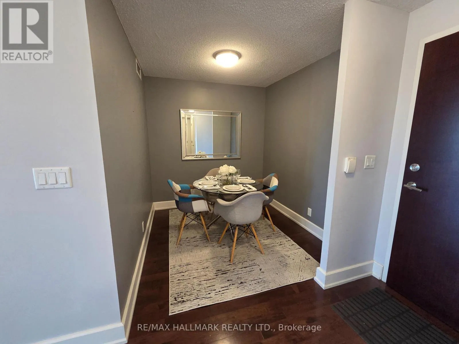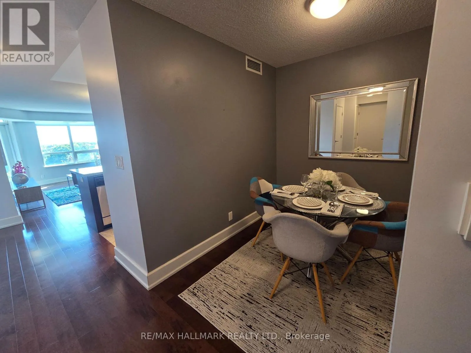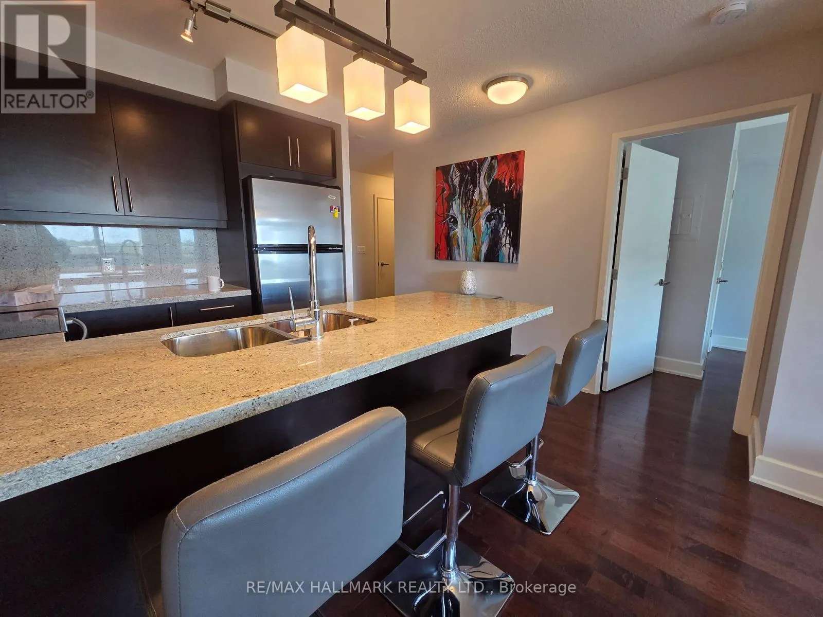 Cross Streets: Bayview & Sheppard. ** Directions: NE of Bayview & Sheppard. Prestigious Shane Baghai Boutique Luxury! Bright and spacious 1 Bedroom + Den, 2 Bath suite with over 700 sq.ft. of well-designed living space and soaring 9' ceilings. Highly desirable open-concept floor plan. The sleek kitchen features granite countertops, a breakfast bar, and stainless steel appliances perfect for everyday meals or entertaining. Flooded with natural light from large windows, the open-concept living and dining area flows seamlessly with elegant hardwood floors, and sleek window roller shades. Walk out to a private south-facing balcony from the living room and view the city from the bedroom. Residents enjoy access to exceptional building amenities such as a rooftop deck, outdoor patio, meeting room, recreation room, and visitor parking. Ideally located in the heart of Bayview Village, youre just steps to Bayview Village Shopping Centre, dining, cafés, transit, excellent schools nearby and with quick access to Hwy 401, commuting is effortless. This unit is the perfect blend of modern style, comfort, and convenience. (id:27476)