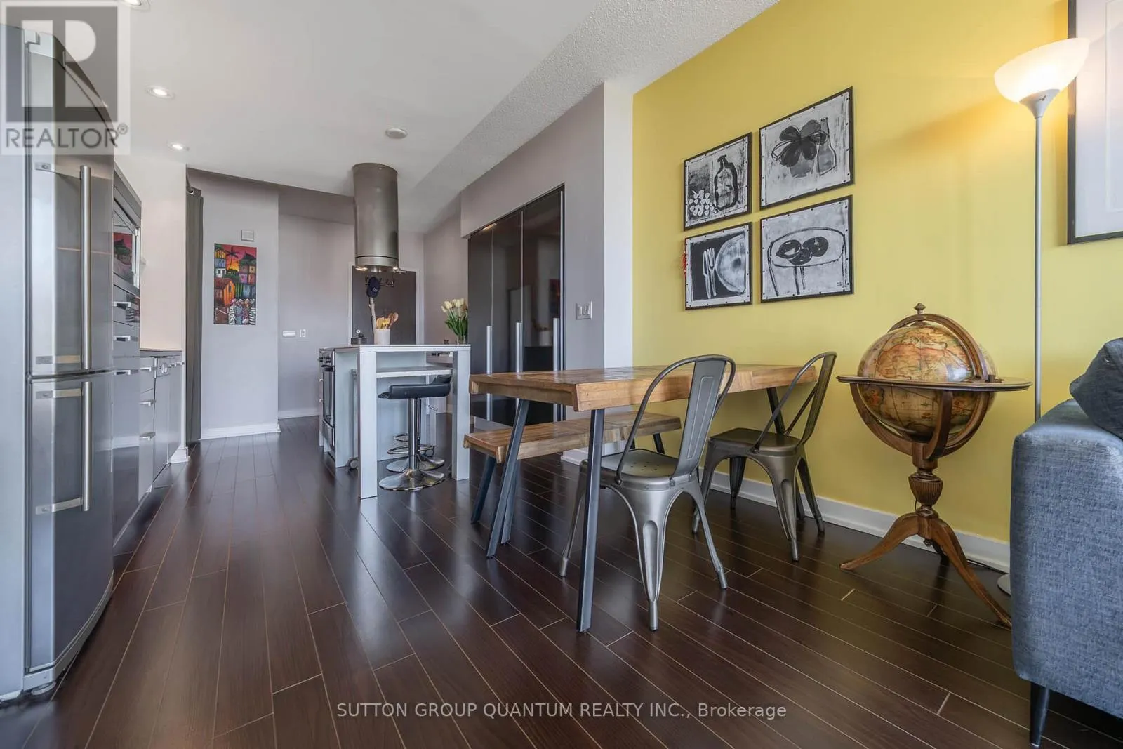 Dan Leckie Way / Lake Shore Blvd. West Welcome To The Panorama Condominiums. This High Floor 1 Bedroom + Den Suite Features Approximately 705 Interior Square Feet. Designer Kitchen Cabinetry With Stainless Steel Appliances, An Undermount Sink & A Centre Island. Bright 9Ft. Floor-To-Ceiling Windows With Laminate Flooring Throughout The Living Areas With A Large Full Length 98 Square Foot Balcony Facing Stunning Unobstructed C.N. Tower & Lake Views. Main Bedroom With A 4-Piece Semi-Ensuite, Mirrored Double Closets & Large Windows. A Separate Den Area That Can Also Be Used As A 2nd Bedroom, Home Office Or Nursery. Steps To Toronto's Harbourfront, Loblaws, Shoppers Drug Mart, Starbucks, Restaurants, Cafes, Banks, Parks, Canoe Landing Community Recreation Centre, Library, Schools, T.T.C. Street Car, C.N. Tower, Rogers Centre, Ripley's Aquarium, Scotiabank Arena, Union Station, Underground P.A.T.H. Network, The Financial, Entertainment & Theatre Districts. 1-Parking Space & 1-Locker Is Included. Click On The Video Tour! E-Mail Elizabeth Goulart - Listing Broker Directly For A Showing. (id:27476)