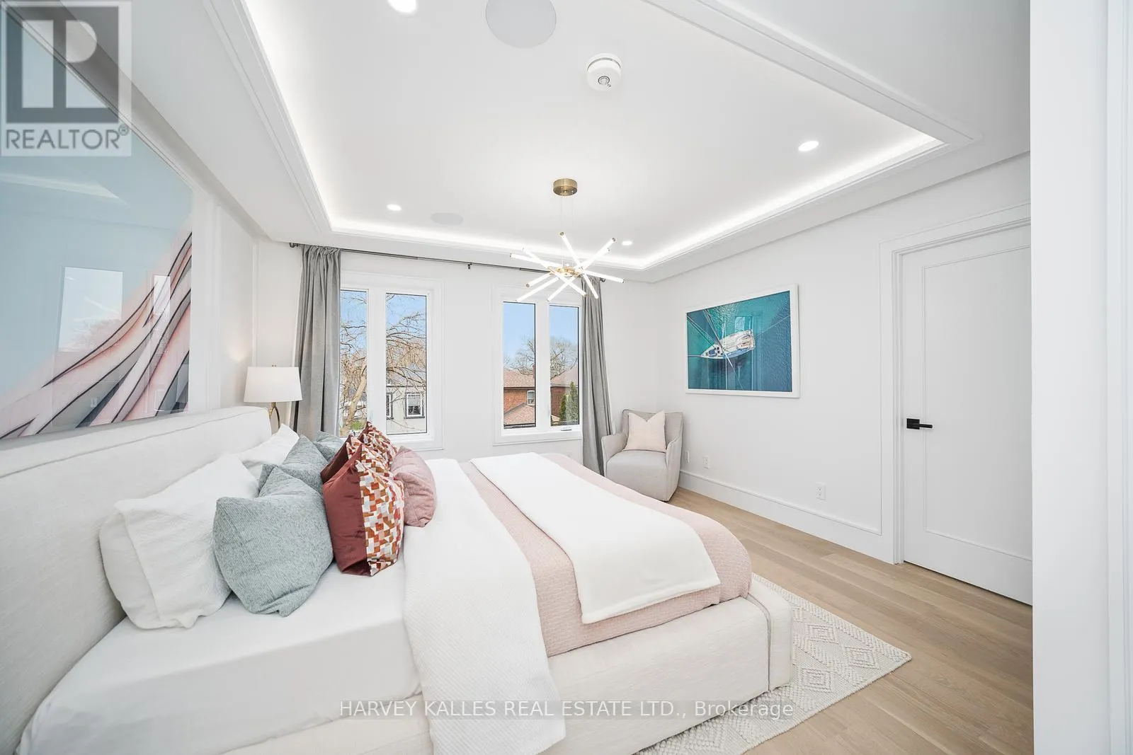 COSBURN AVE. & DONLANDS AVE. Step into the elegance of 67 Lesmount Avenue, where sophisticated interiors effortlessly blend with a touch of timeless luxury. From the moment you enter, you'll be captivated by the soaring 11-foot ceilings and the abundant natural light that pours through large windows, creating an inviting sense of openness. The main floor seamless flow is highlighted by a meticulously designed cozy and inviting family room boasting a walkout to a fabulous pressure-treated deck (read no maintenance) that overlooks a vibrant garden lined with Cedar trees. The chef-inspired kitchen features top-of-the-line Decor appliances, a spacious island with a breakfast bar, and plenty of counter space ideal for entertaining with ease. Upstairs, you'll find four generously sized bedrooms and a skylight that infuses the space with natural light. The primary suite is a sanctuary of relaxation, featuring a walk-in closet, a spa-like five-piece ensuite and a soaking tub. Venture down to the lower level to discover additional living space, complete with a well-designed mudroom and a flexible recreation area with 10-foot ceilings, perfect for transforming into a home theater, kids playroom, or your own cozy lounge. A convenient walkout leads to a backyard oasis that's perfect for outdoor gatherings or quiet moments. Nestled just steps from the serene green spaces of Dieppe and Four Oaks Gate Park, and with easy access to TTC, downtown, shops, and the vibrant Danforth area including the renowned Serrano Bakery this home offers an exceptional lifestyle in one of Toronto's most sought-after neighborhoods. **EXTRAS** Modern Limestone facade. Brand New Construction/New Foundation. COA approved for xtra sq footage. B/I Garage with epoxy flrs & direct interior access. Convenient 2nd Storey Laundry.**All Bathrooms & Foyer have Heated Floors** (id:27476)