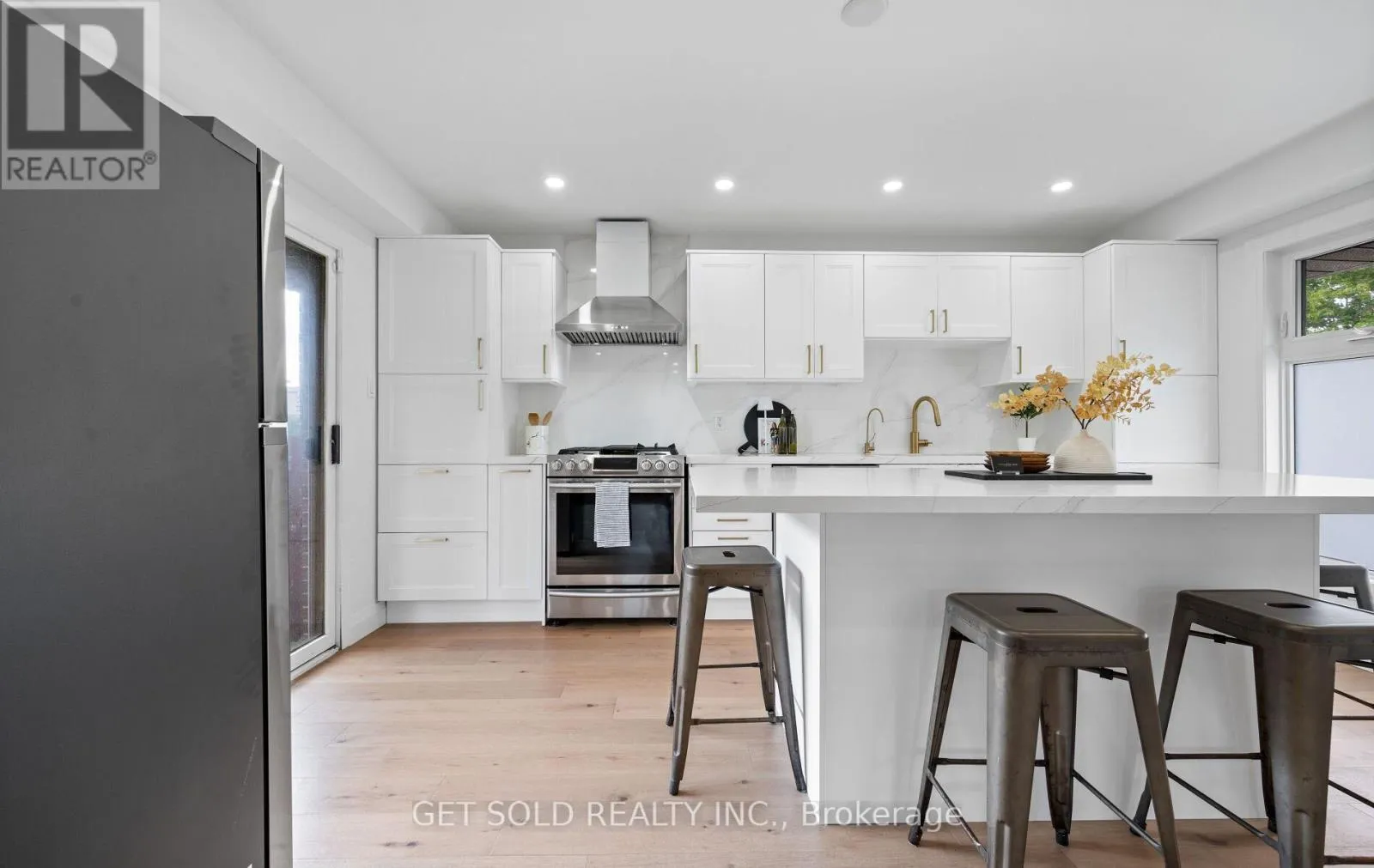 Martin Grove Rd./ Finch Ave. Welcome to 36 Shalom Crescent , this fully updated and meticulously renovated property offers a blend of modern elegance and comfortable living. With fresh paint and new flooring throughout, this home feels bright, clean, and truly move-in ready. The main floor showcases a bright and airy layout anchored by a stunning chefs kitchen, complete with stainless steel appliances, sleek cabinetry, and generous counter space, designed to inspire culinary creativity! A contemporary powder room on the main floor adds convenience and functionality for guests. Upstairs you'll find three spacious bedrooms, each filled with natural light and ample closet space. The primary bedroom is a true retreat featuring a luxurious ensuite. A second full bathroom serves the remaining bedrooms. The basement presents an exciting opportunity to customize and expand the living space to suit your personal preferences and needs. Whether you envision a cozy family room, a home gym or office, the possibilities are endless. Perfectly positioned on a HUGE corner lot with approx. 51ft frontage, 90ft along the rear and approx. 89ft along the south property line. This home offers excellent curb appeal, a welcoming front entrance, and plenty of parking. Close to transit, schools and shopping don't miss the opportunity to call this exquisite property your home. (id:27476)