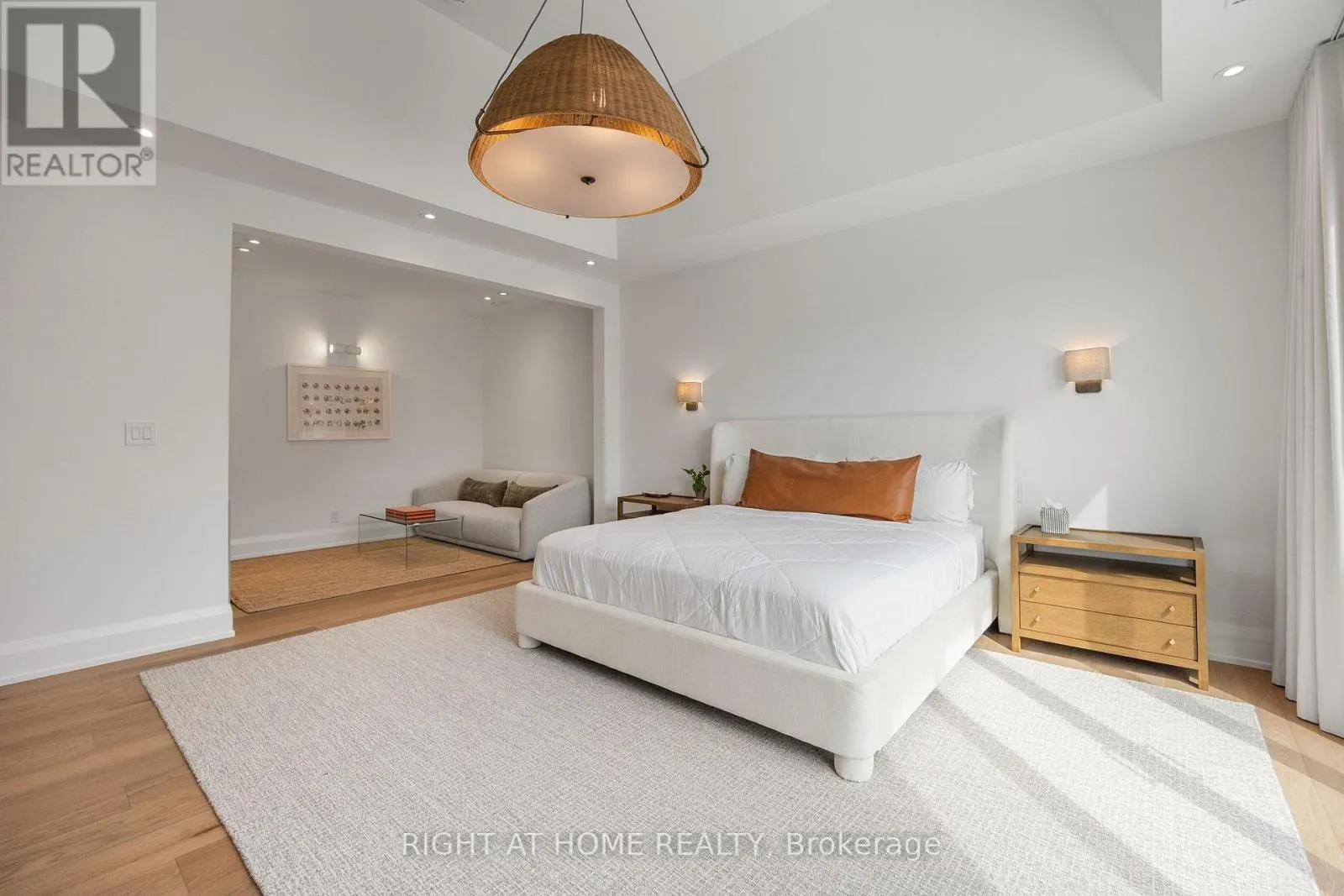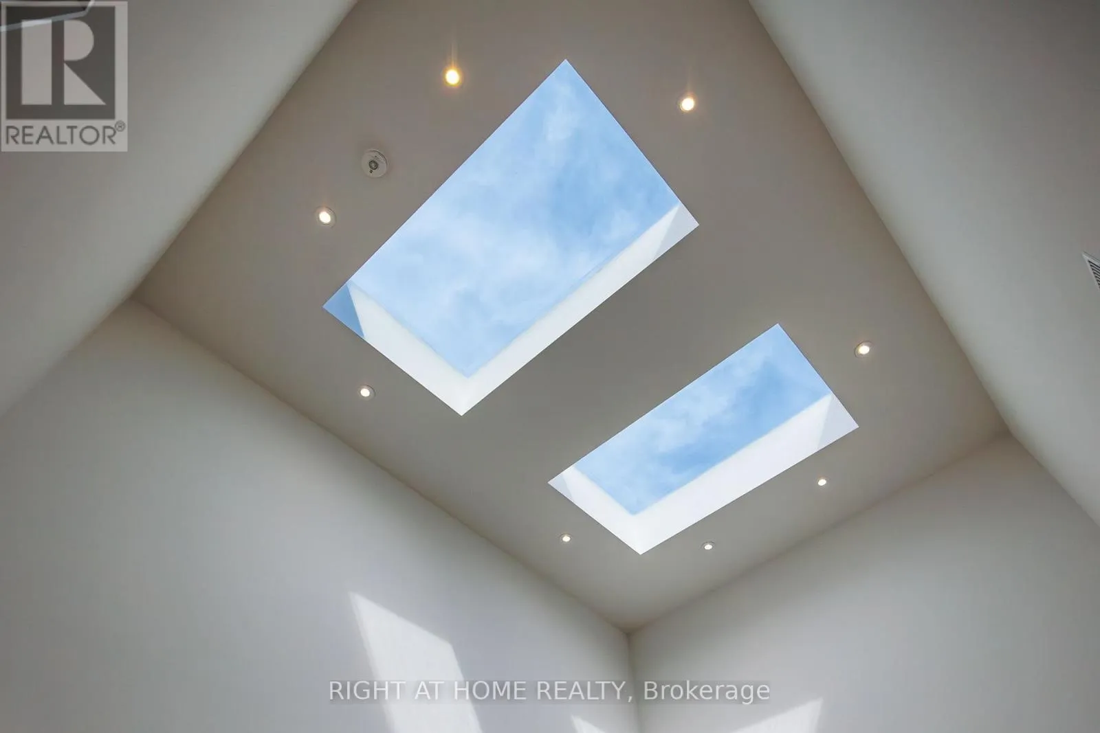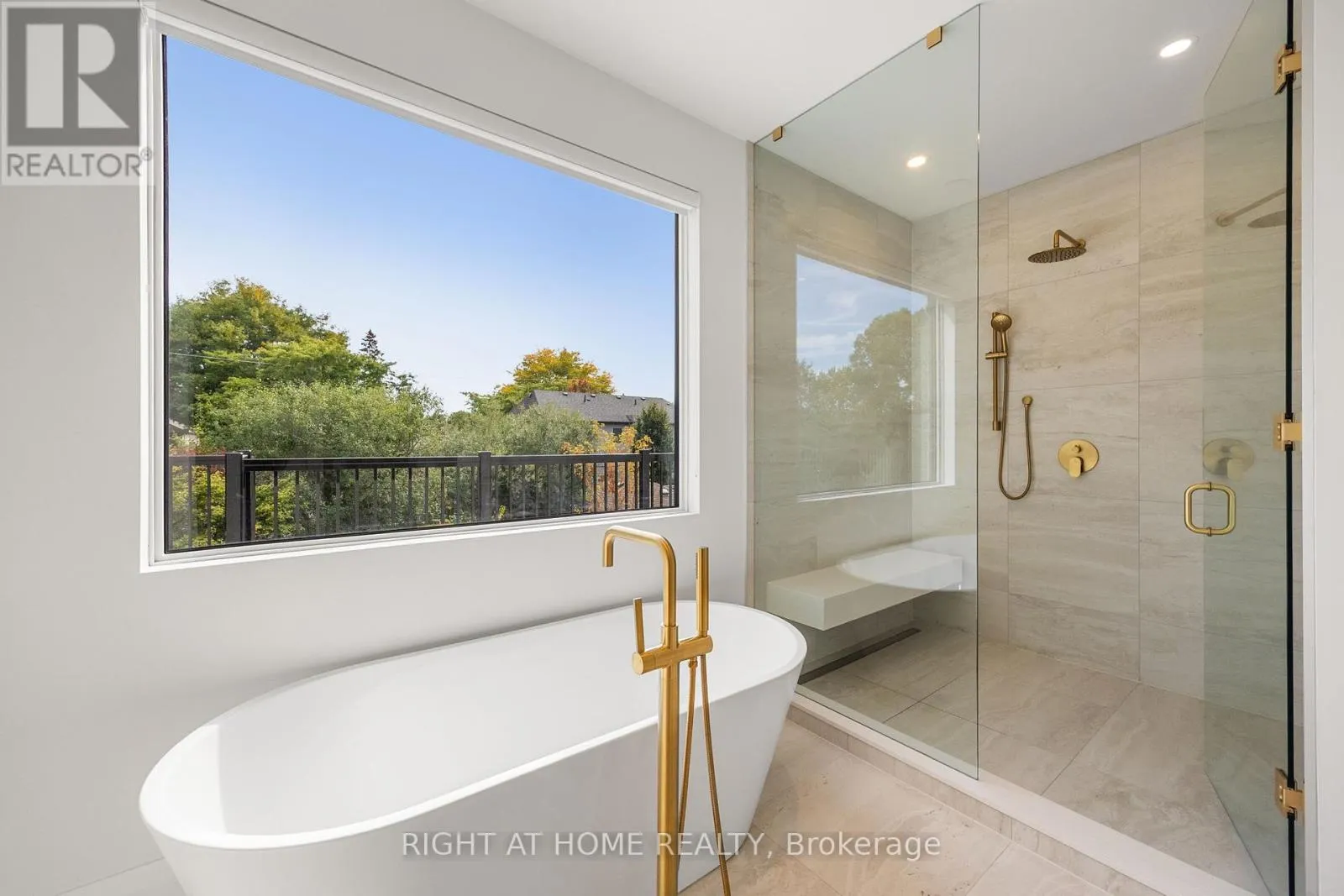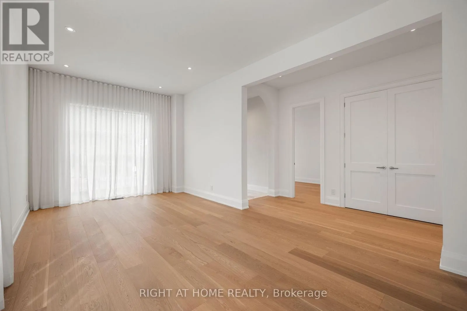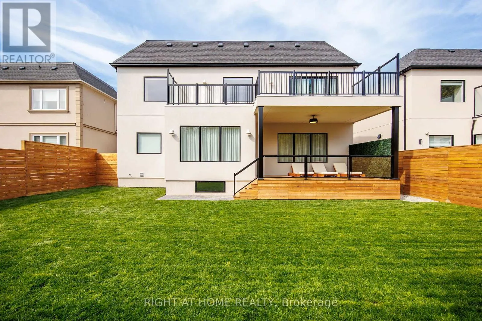 Cross Streets: Bathurst St. & Sheppard Ave. W. ** Directions: South West. Welcome to this meticulously crafted 5-bedroom custom home, tucked away on a rare and quiet cul-de-sac. With 5,700 SF of refined living space, this residence is set on an ultra-wide, south-facing lot, allowing for a distinctive design and layout rarely found on narrower properties. The architectural detail is unmistakable: the bold inverted front roofline, elegant limestone and brick exterior, Kingshore windows with sleek drywall reveals, cantilevered porch, custom wrought-iron railings create a striking first impression. Beautiful arched doorways elegantly define the interior, leading to the private home office, mudroom w/ custom millwork & built-in bench, and family room w/ gas travertine fireplace set in a stylish built-in. The chefs kitchen has a dramatic rounded custom hood, an oversized Taj Mahal stone island, appliance garage, servery w glass cabinetry and second sink rough-in, and a walk-in pantry. Professional Kitchen Aid appliances, including a 48" gas range & 48" panel-ready fridge, complete the space. Fluted doors frame the bar area, finished with a bevelled white oak floating shelf and micro-cement accent wall. A striking white oak staircase w/ custom wrought-iron railings leads to the impressive 2nd floor foyer, crowned by massive skylights. The second floor offers five spacious bedrooms, each with generous closet space and ensuites. The grand primary suite, accessed through a private hallway, features a sitting room, custom TV built-in/desk, an oversized walk-in closet with vanity and linen closet. Its spa-like marble ensuite offers a double vanity with Taj Mahal countertops and handcrafted wood pulls, heated floors, private water closet & oversized shower with floating bench and travertine surround.The fully finished lower level features a home theatre, large rec area, home gym with rubber flooring, two bedrooms, secondary laundry, and ample storage. Large private yard with covered terrace, glass railings, green wall, and sleek ceiling design. (id:27476)