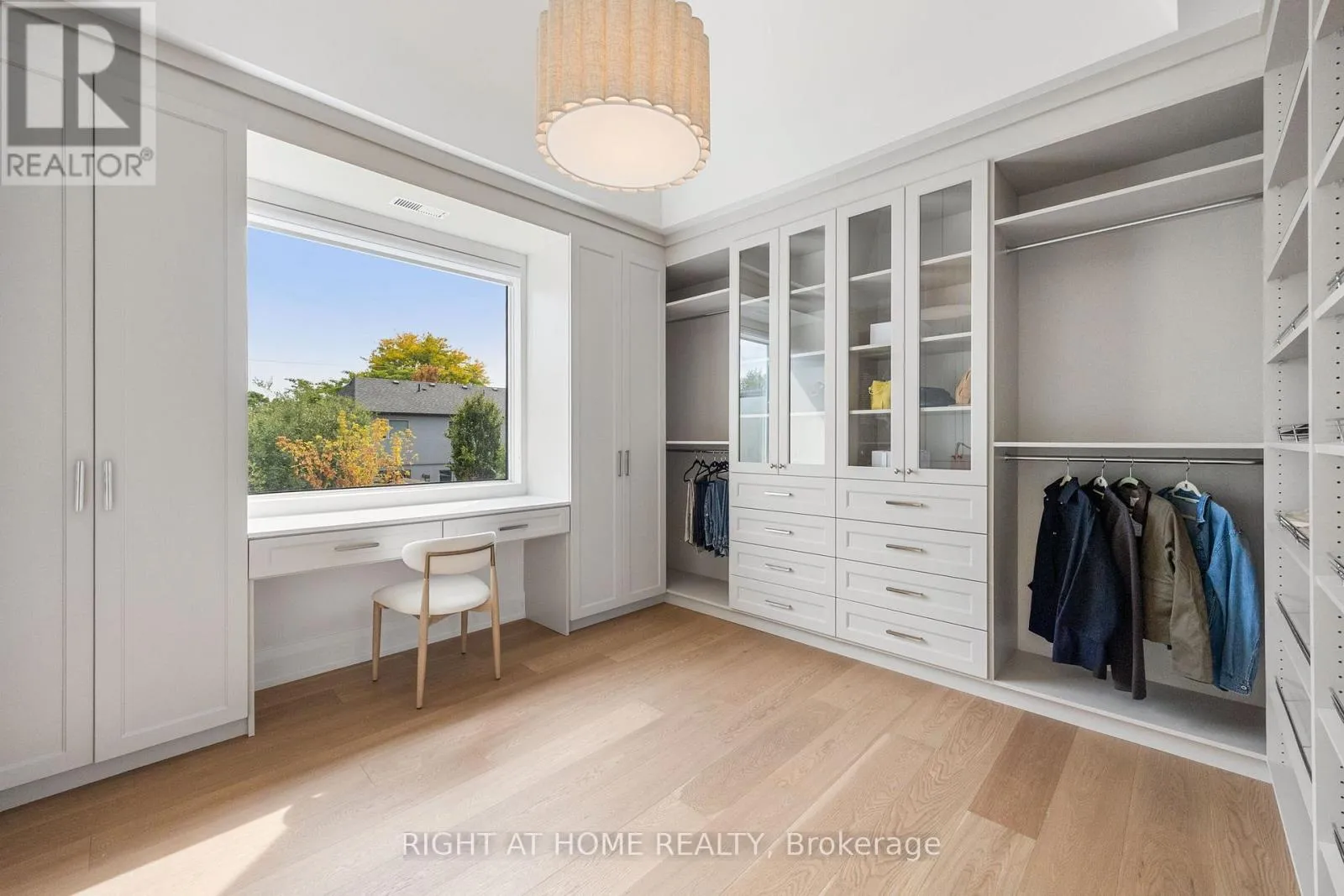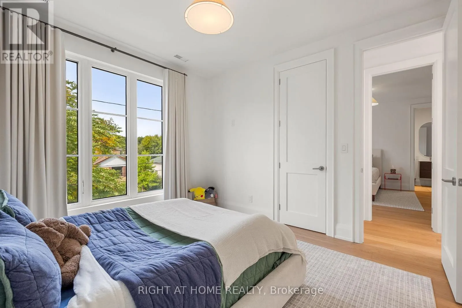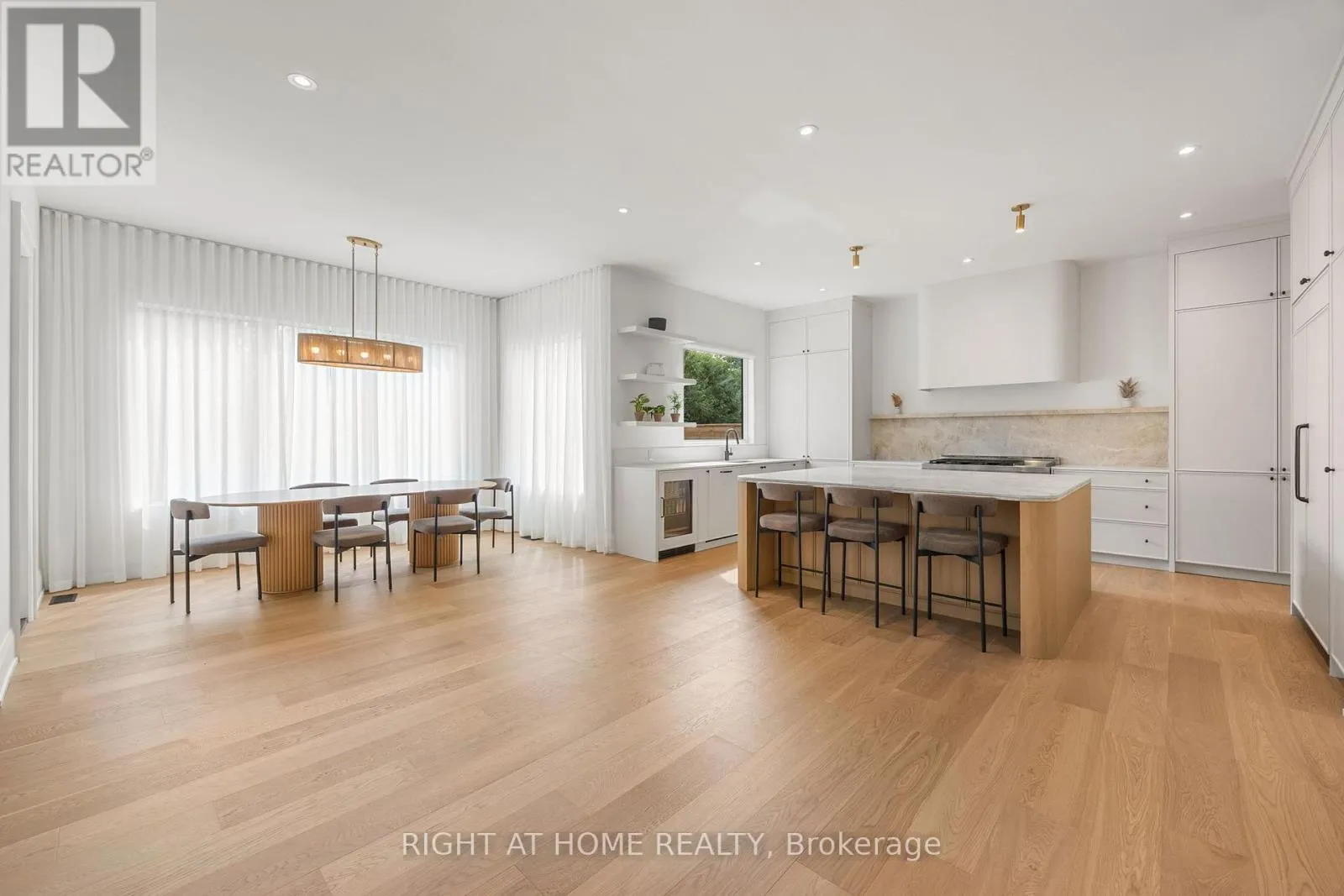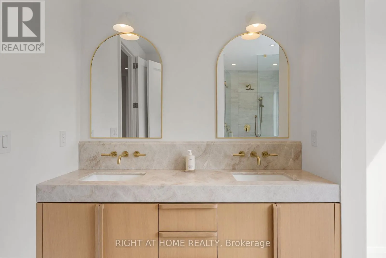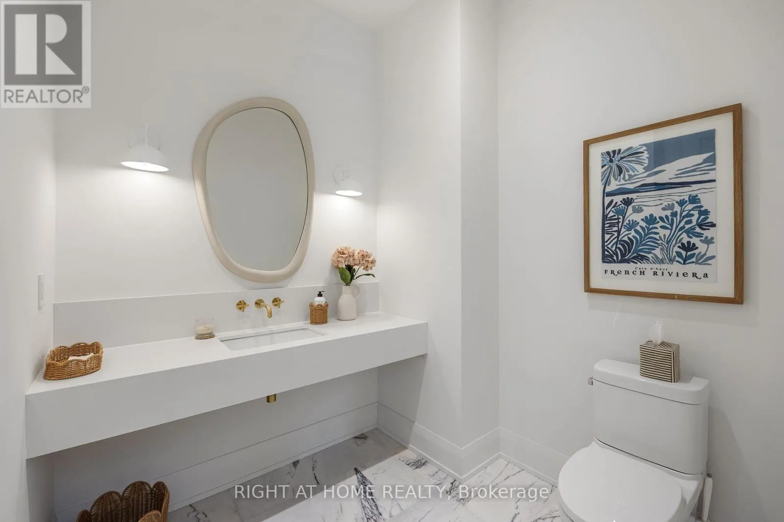Cross Streets: Bathurst St. & Sheppard Ave. W. ** Directions: South West. Welcome to this meticulously crafted 5-bedroom custom home, tucked away on a rare and quiet cul-de-sac. With 5,700 SF of refined living space, this residence is set on an ultra-wide, south-facing lot, allowing for a distinctive design and layout rarely found on narrower properties. The architectural detail is unmistakable: the bold inverted front roofline, elegant limestone and brick exterior, Kingshore windows with sleek drywall reveals, cantilevered porch, custom wrought-iron railings create a striking first impression. Beautiful arched doorways elegantly define the interior, leading to the private home office, mudroom w/ custom millwork & built-in bench, and family room w/ gas travertine fireplace set in a stylish built-in. The chefs kitchen has a dramatic rounded custom hood, an oversized Taj Mahal stone island, appliance garage, servery w glass cabinetry and second sink rough-in, and a walk-in pantry. Professional Kitchen Aid appliances, including a 48" gas range & 48" panel-ready fridge, complete the space. Fluted doors frame the bar area, finished with a bevelled white oak floating shelf and micro-cement accent wall. A striking white oak staircase w/ custom wrought-iron railings leads to the impressive 2nd floor foyer, crowned by massive skylights. The second floor offers five spacious bedrooms, each with generous closet space and ensuites. The grand primary suite, accessed through a private hallway, features a sitting room, custom TV built-in/desk, an oversized walk-in closet with vanity and linen closet. Its spa-like marble ensuite offers a double vanity with Taj Mahal countertops and handcrafted wood pulls, heated floors, private water closet & oversized shower with floating bench and travertine surround.The fully finished lower level features a home theatre, large rec area, home gym with rubber flooring, two bedrooms, secondary laundry, and ample storage. Large private yard with covered terrace, glass railings, green wall, and sleek ceiling design. (id:27476)