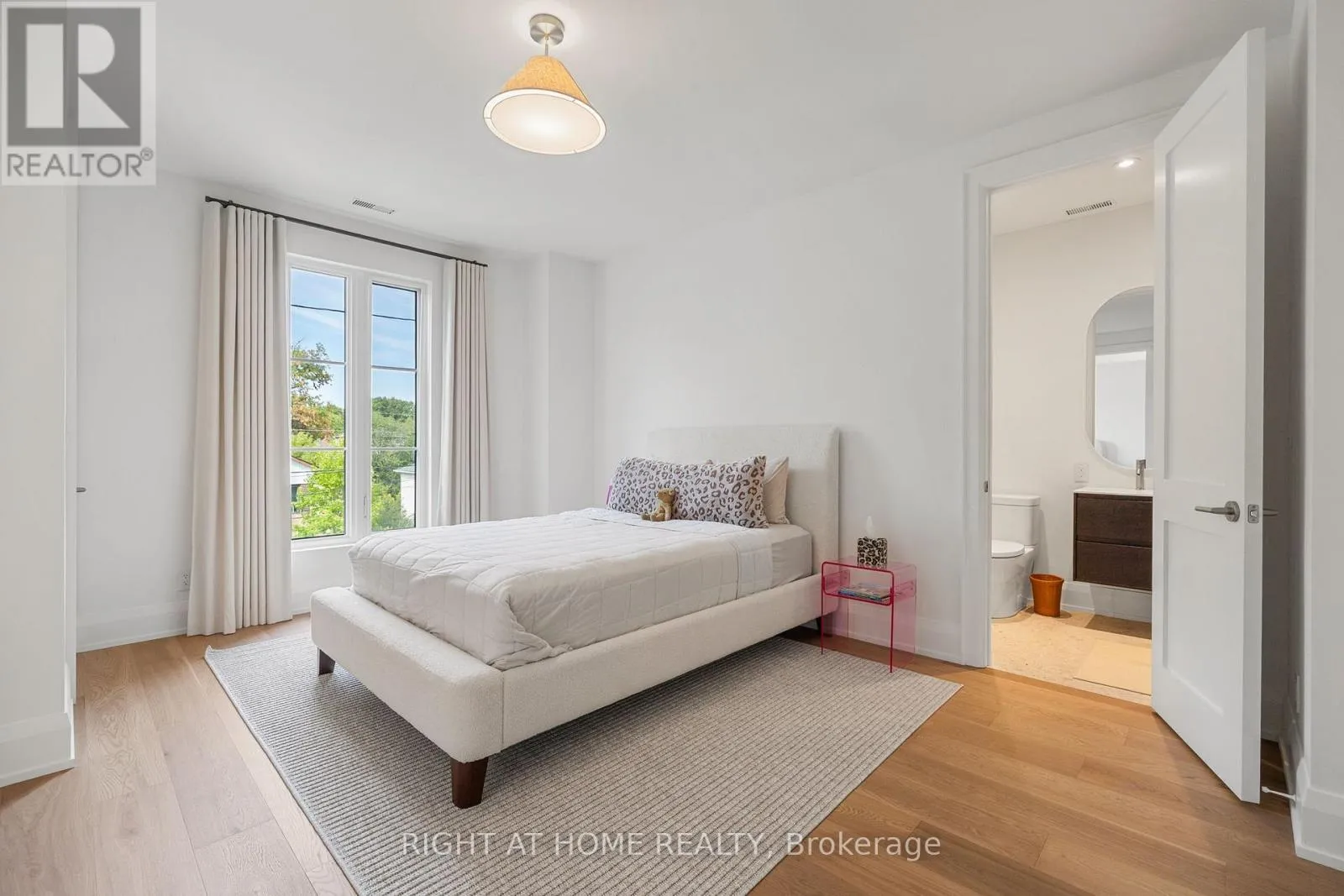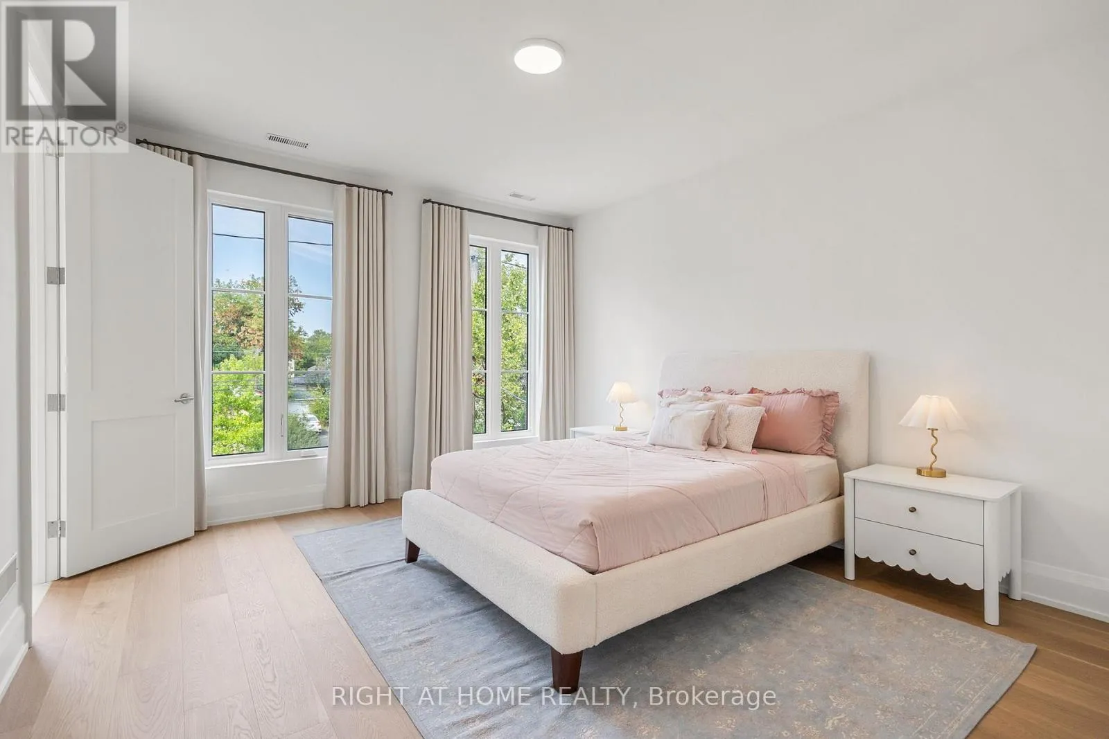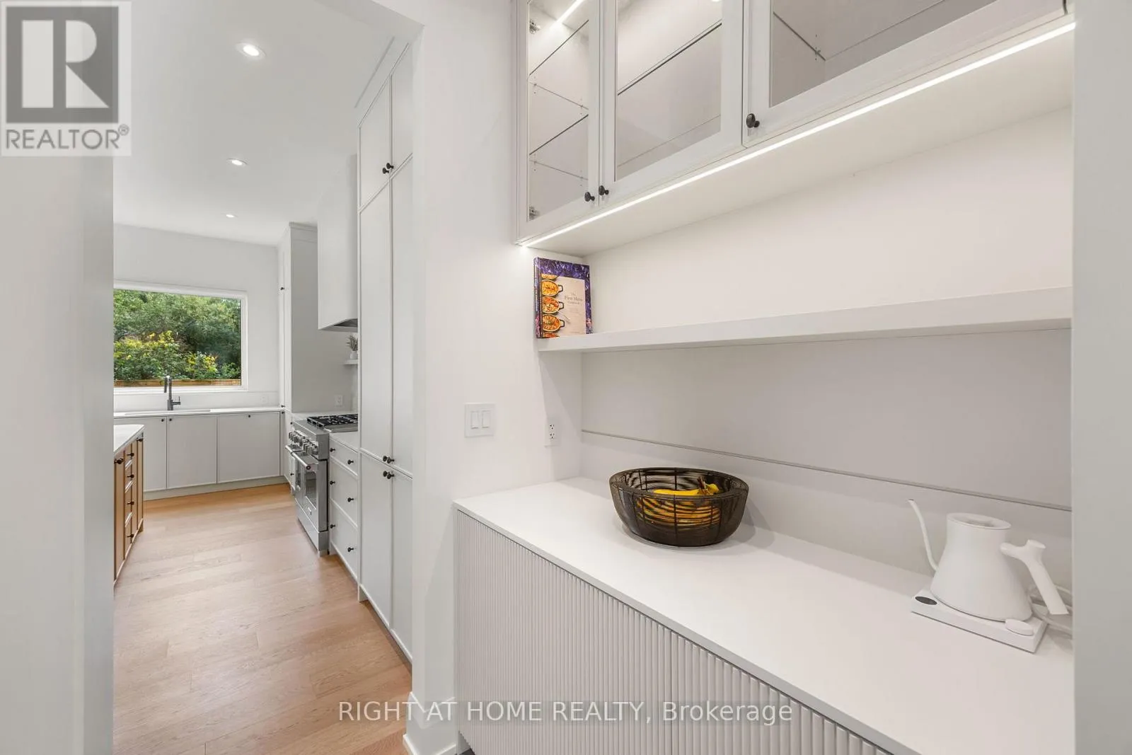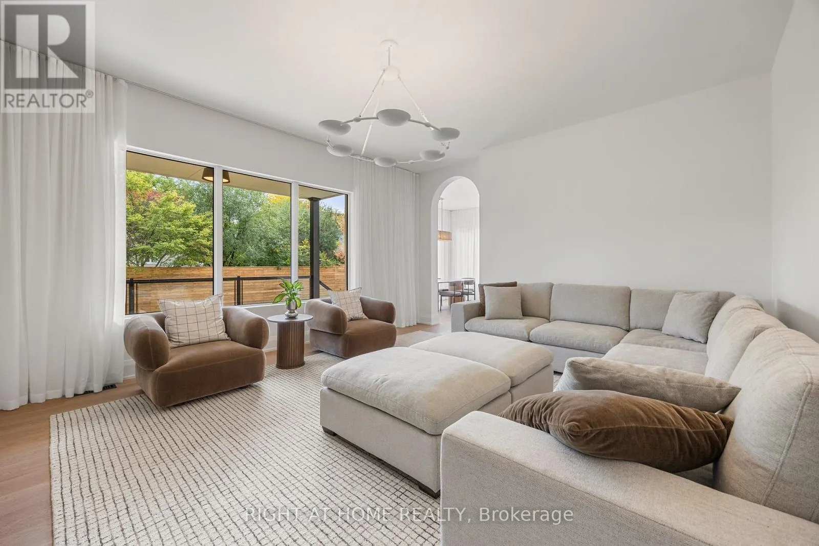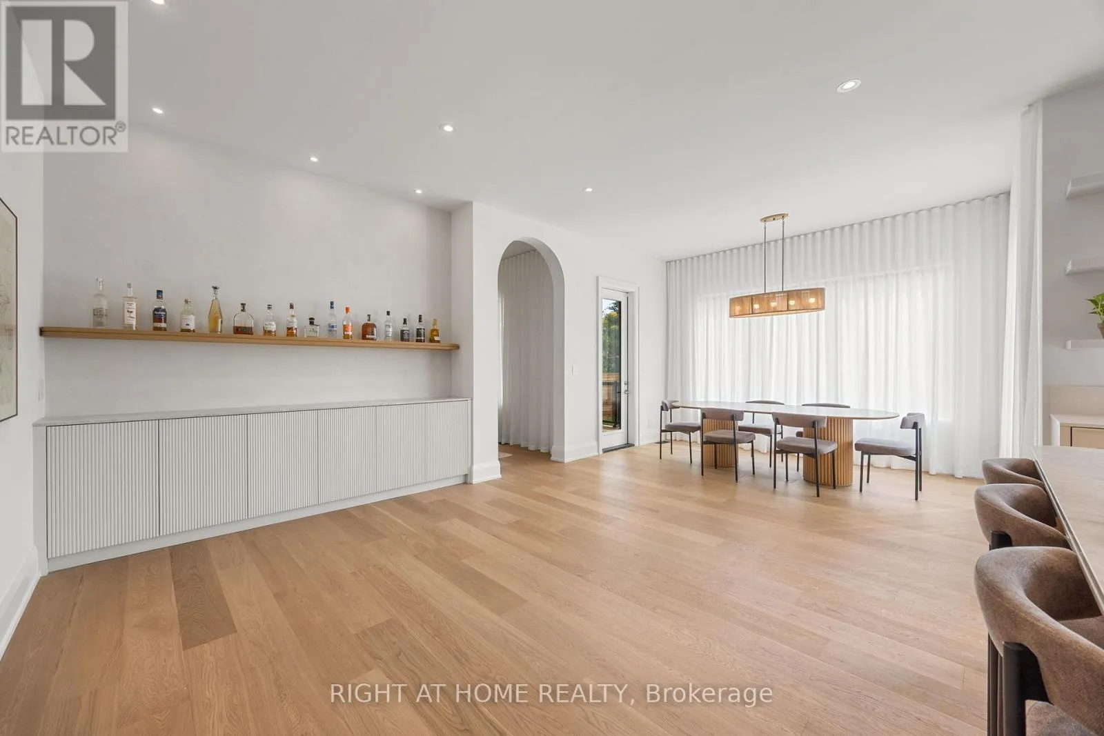 Cross Streets: Bathurst St. & Sheppard Ave. W. ** Directions: South West. Welcome to this meticulously crafted 5-bedroom custom home, tucked away on a rare and quiet cul-de-sac. With 5,700 SF of refined living space, this residence is set on an ultra-wide, south-facing lot, allowing for a distinctive design and layout rarely found on narrower properties. The architectural detail is unmistakable: the bold inverted front roofline, elegant limestone and brick exterior, Kingshore windows with sleek drywall reveals, cantilevered porch, custom wrought-iron railings create a striking first impression. Beautiful arched doorways elegantly define the interior, leading to the private home office, mudroom w/ custom millwork & built-in bench, and family room w/ gas travertine fireplace set in a stylish built-in. The chefs kitchen has a dramatic rounded custom hood, an oversized Taj Mahal stone island, appliance garage, servery w glass cabinetry and second sink rough-in, and a walk-in pantry. Professional Kitchen Aid appliances, including a 48" gas range & 48" panel-ready fridge, complete the space. Fluted doors frame the bar area, finished with a bevelled white oak floating shelf and micro-cement accent wall. A striking white oak staircase w/ custom wrought-iron railings leads to the impressive 2nd floor foyer, crowned by massive skylights. The second floor offers five spacious bedrooms, each with generous closet space and ensuites. The grand primary suite, accessed through a private hallway, features a sitting room, custom TV built-in/desk, an oversized walk-in closet with vanity and linen closet. Its spa-like marble ensuite offers a double vanity with Taj Mahal countertops and handcrafted wood pulls, heated floors, private water closet & oversized shower with floating bench and travertine surround.The fully finished lower level features a home theatre, large rec area, home gym with rubber flooring, two bedrooms, secondary laundry, and ample storage. Large private yard with covered terrace, glass railings, green wall, and sleek ceiling design. (id:27476)