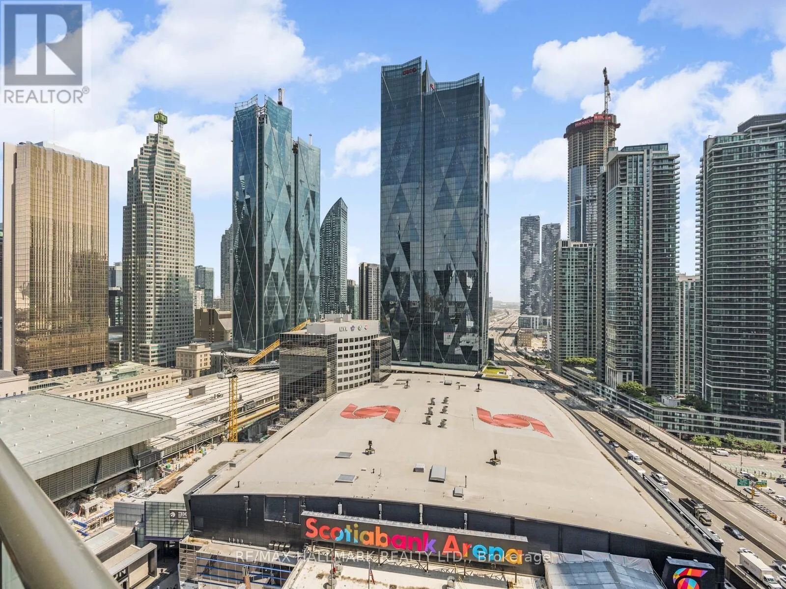Bremner And York Sleek 1+den with parking in iconic Maple Leaf Square. Rare east-facing layout with sweeping city and lake views from a spacious balcony. Bright and airy with 9' ceilings, floor-to-ceiling windows, granite counters and an open, functional plan. Generous primary bedroom plus a den large enough to be used as a second bedroom or private office. Direct indoor access to Longos, Starbucks, Union Station, Scotiabank Arena and the PATH downtown living doesn't get more connected. Steps to the Harbourfront, Financial District, dining, nightlife and transit. Prime parking spot included. (id:27476)
