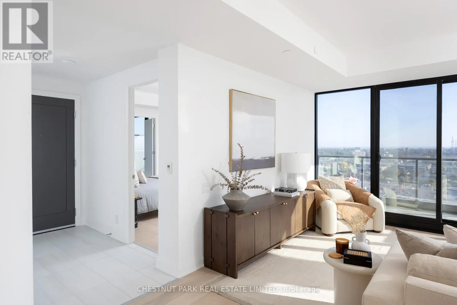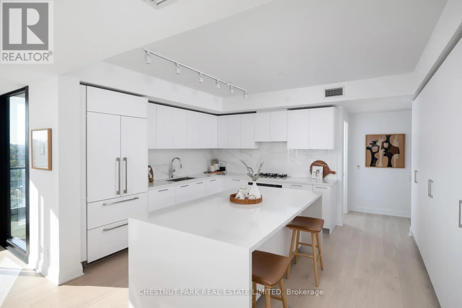 Eglinton & Brentcliffe Welcome to this exquisite 2-bedroom, 3-bathroom southwest corner suite in Leaside's Upper East Village. The inviting foyer features a powder room and two coat closets, leading to an expansive open-concept living and dining area with floor-to-ceiling windows, two walkouts to generous balconies, and unobstructed southwest city views. The gourmet kitchen boasts abundant counterspace, a full wall of pantry storage, and a large island with a breakfast bar. A split-bedroom layout ensures privacy: the serene primary suite offers a walk-in closet, 5-piece ensuite, and balcony access, while the guest bedroom includes a 3-piece ensuite, double closet, and balcony walkout. Neutral tones, natural light, and thoughtful design create a warm, elevated living experience ideal for any lifestyle. Unit comes with 1 Parking and 1 Locker. One Parking is an extra $76.71 per month and one locker is $22.63 per month over and above the current monthly maintenance fees for the unit. (id:27476)
