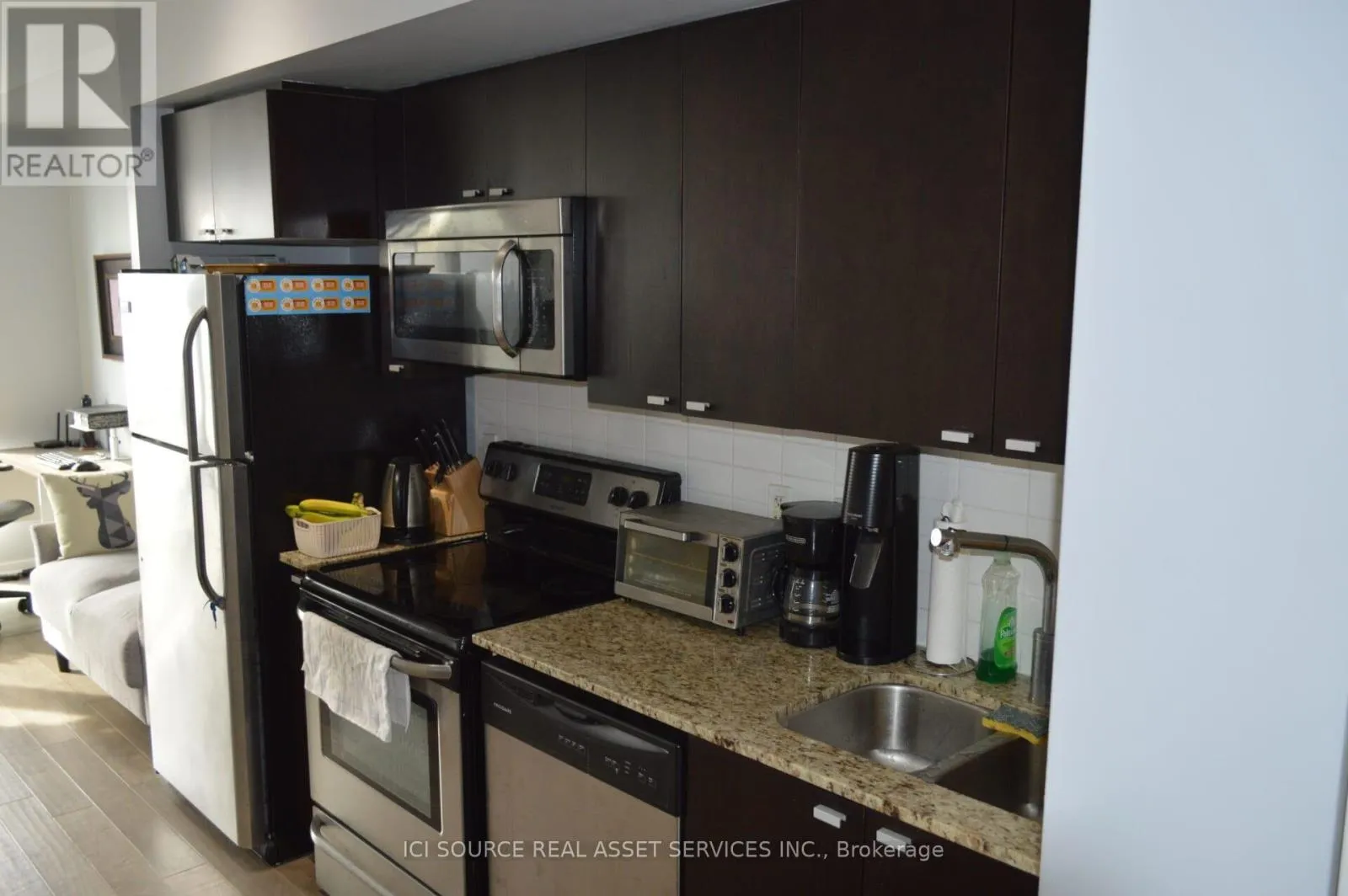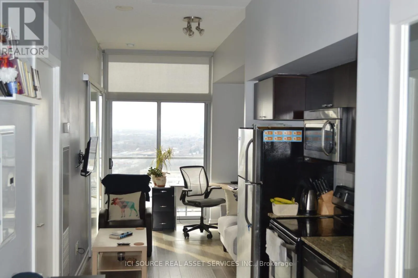 Queensway/Windermere Luxury lake living at NXT! This 1 bed 1 bath sub-penthouse suite boasts 11-ft ceilings (highest in the building!) and foor-to-ceiling windows give sweeping views of Lake Ontario and the Humber River. Western exposure means plenty of natural light + gorgeous sunset views! Stainless steel appliances all included ,hardwood throughout, the perfect starter home. Steps to TTC streetcar +2 bus routes, High Park, waterfront boardwalk, and beaches, nearby onramps in both directions to the Gardiner. Resort-style amenities come with the LOW FEES: pools x2 (1 indoor, 1 outdoor), gyms x2, tennis court, sauna, barbecue, movie theatre, party room, and guest suites. Water, heat included in strata. 24/7 front-desk security and underground visitor parking. *For Additional Property Details Click The Brochure Icon Below* (id:27476)