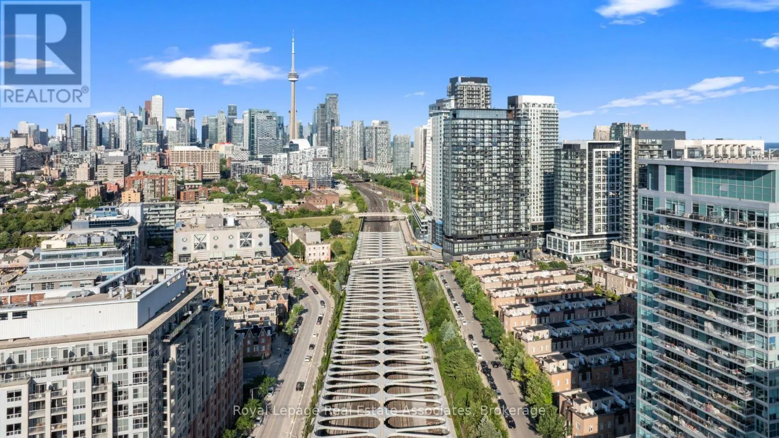 King/Strachan Beautifully Maintained And Upgraded Condo Offers 646 Sq.Ft. Of Stylish, Functional Living Space, Natural Light From Floor-To-Ceiling Windows With South-West Exposure, Open-Concept Layout Features A Contemporary Kitchen With Granite Countertops, A Large Centre Sit-Up Island, And Coordinating Backsplash - Perfect For Entertaining. The Combined Living+Dining+Office Area Offers A Seamless Walkout To A Massive ~39'x6' Balcony, While The Well-Appointed Bedroom Includes A large Closet + Second Walkout. Plenty of storage space! 4-Piece Bathroom And Ensuite Laundry. Steps From TTC, GO, Shops, Gyms, Restaurants, And Parks - Everything At Your Doorstep. Enjoy Premium Building Amenities: Gym, Guest Suites, Theatre Room, Party Room, Concierge And More. Whether You're Searching For Your Next Home Or An Income Property With Incredible Potential just in time for the 2026 FIFA World Cup! One Of The Few Buildings In The City That Permits AirBnb. (id:27476)
