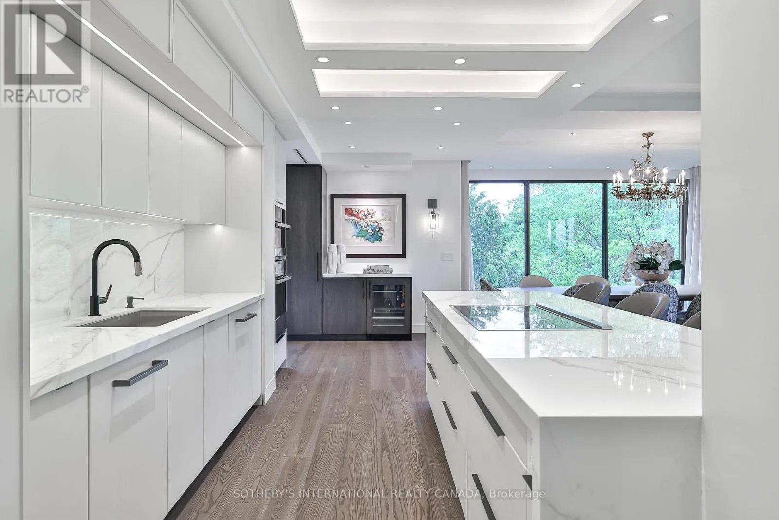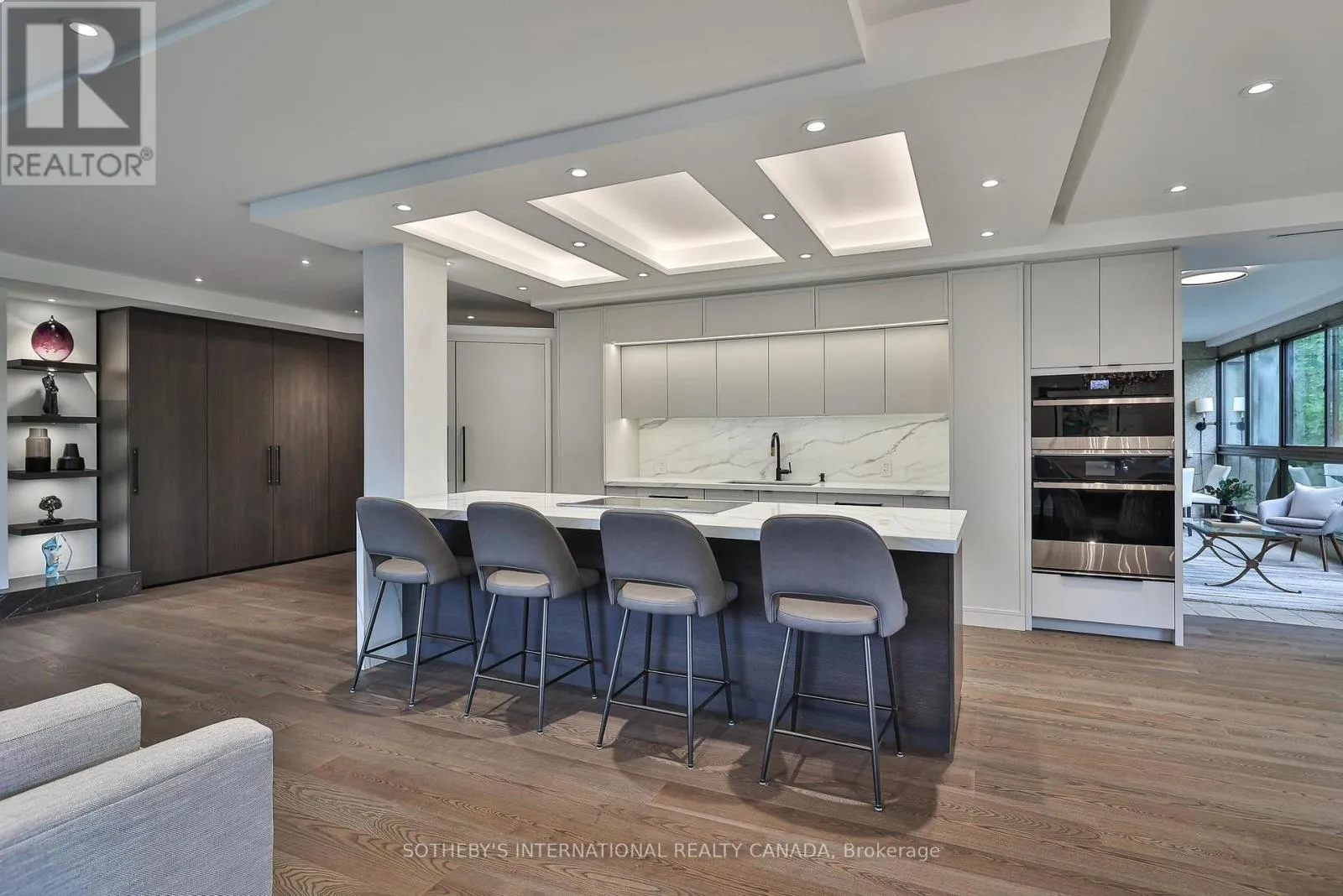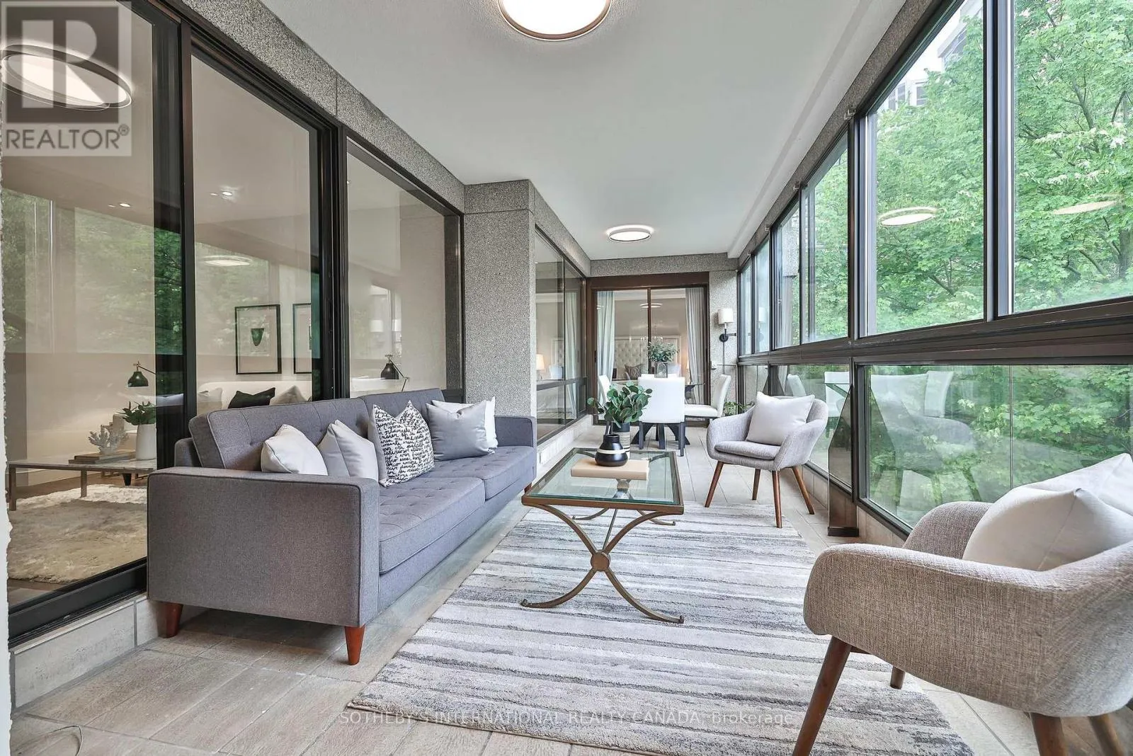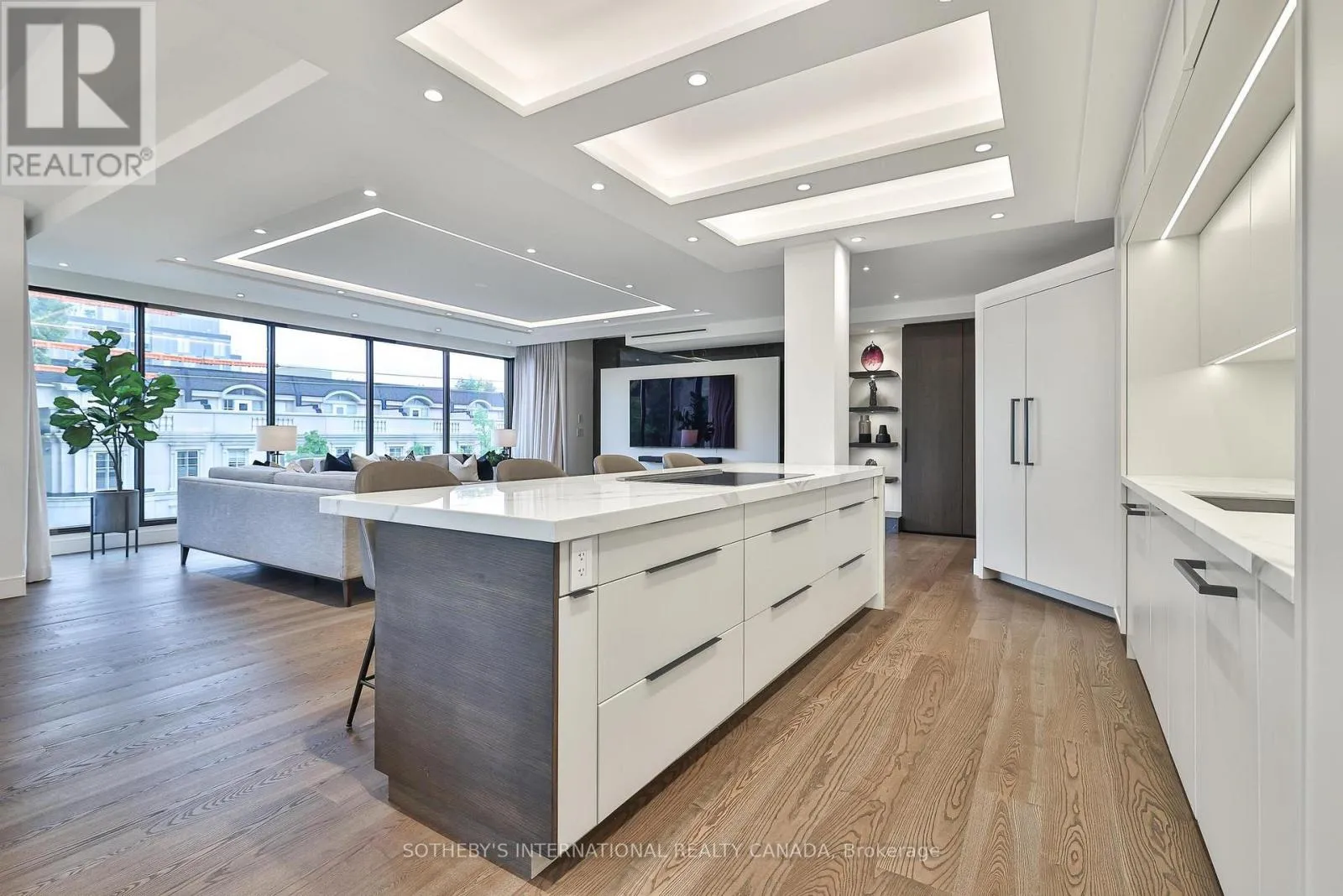 Cross Streets: Spadina Rd/St Clair Ave West. ** Directions: Please, follow you GPS. Welcome to Suite 405 at 342 Spadina Road, where luxury and comfort meet in the heart of Forest Hill South. This exquisite 2,534 sq. ft. condo including sunroom in a boutique 20-unit building has been completely reimagined, offering a modern, turnkey lifestyle for discerning buyers. As you step inside, you'll be captivated by the abundant natural light streaming through floor-to-ceiling windows. The open-concept layout showcases breathtaking views of downtown Toronto and lush treetops. European wide-plank hardwood floors, architectural ceilings with indirect lighting, & custom finishes create a sophisticated ambiance perfect for both entertaining and quiet evenings at home. The chef's kitchen is a showstopper with custom painted finish & rift-cut oak cabinetry, premium quartz counters and backsplash, and top-of-the-line Jennair appliances including a 36" induction cooktop, twin fridge/freezer columns, convection ovens, & an under counter dual temperature wine fridge. A large island, ultra-quiet Bosch dishwasher, indirect lighting & a sleek Jennair downdraft venting system add to the seamless functionality & clean sightlines. Relax in the luxurious living room featuring a stunning slab quartz feature wall, Evonik frameless electric fireplace, & floating oak shelves. The serene primary suite offers tree-top views, custom walk-in closet, spa-like ensuite featuring a Bain Ultra tub, heated floors, & premium Kohler fixtures. The sunroom/terrace provides a tranquil 240 sq. ft. retreat, perfect for morning coffee or evening cocktails. Additional highlights include a bright laundry room, two owned parking spaces, an owned locker room, & building amenities like such as a concierge, party room, gym, EV-ready charging capability & convenient above grade visitor parking. Enjoy an unbeatable location, steps from Forest Hill Village, transit and top private schools. Suite 405 is an invitation to live life beautifully in one of Toronto's most coveted neighbourhoods. (id:27476)