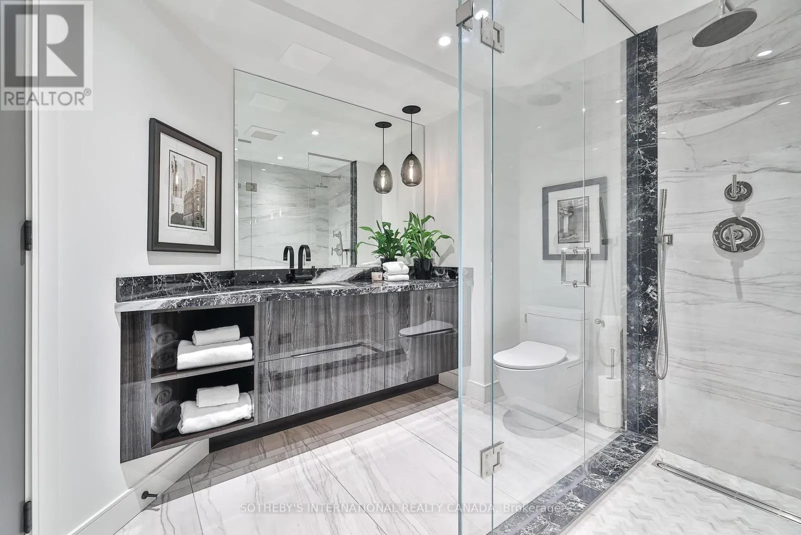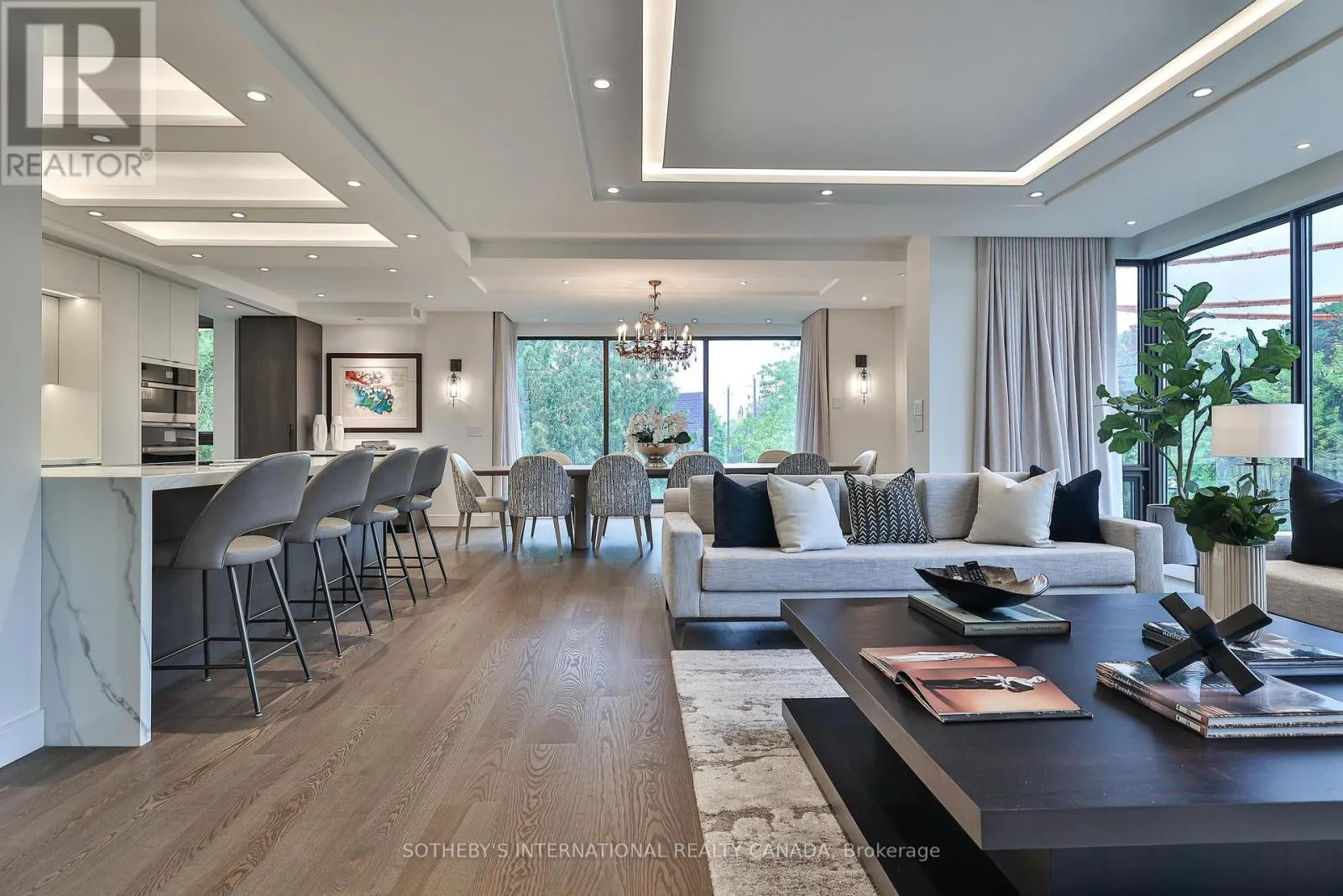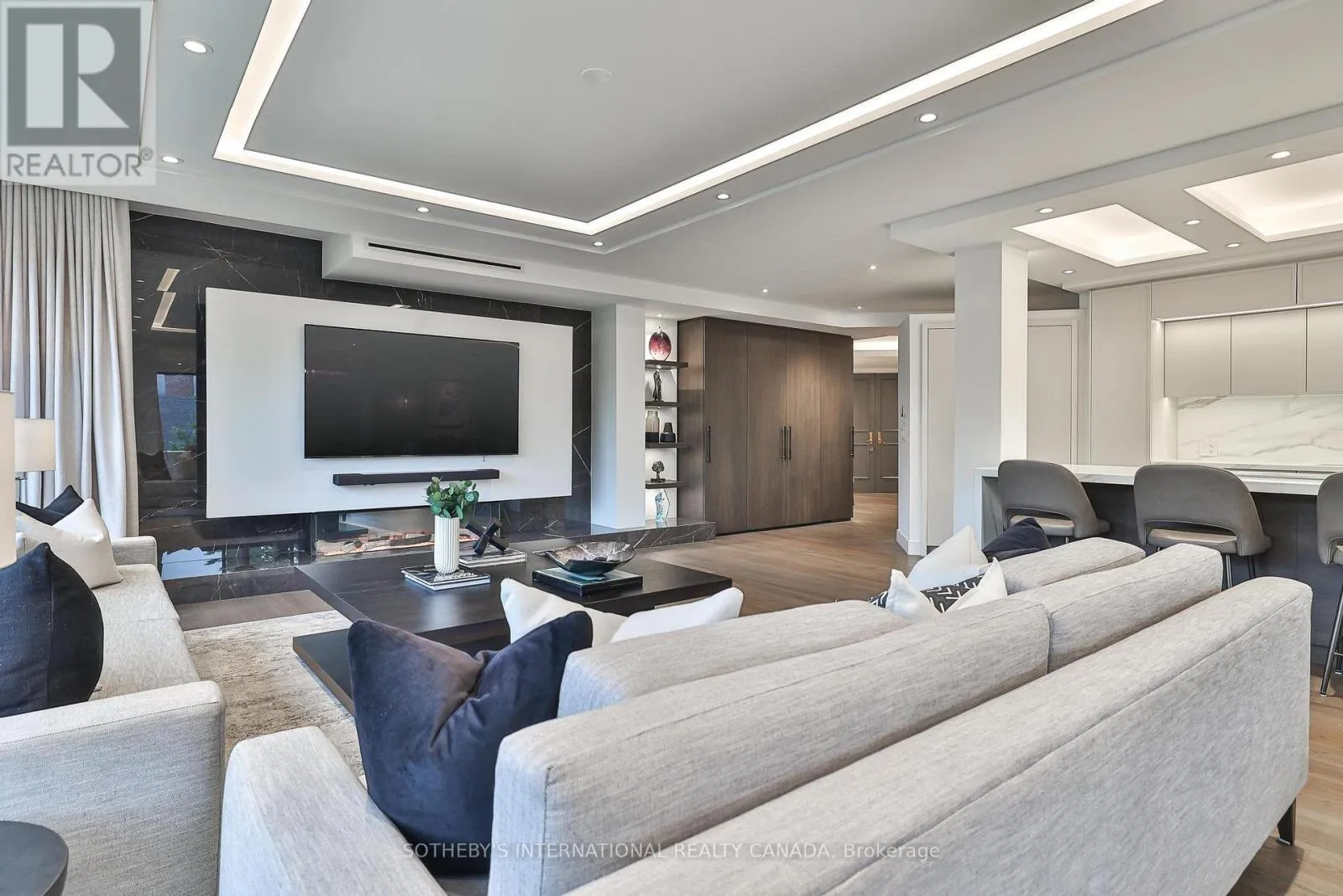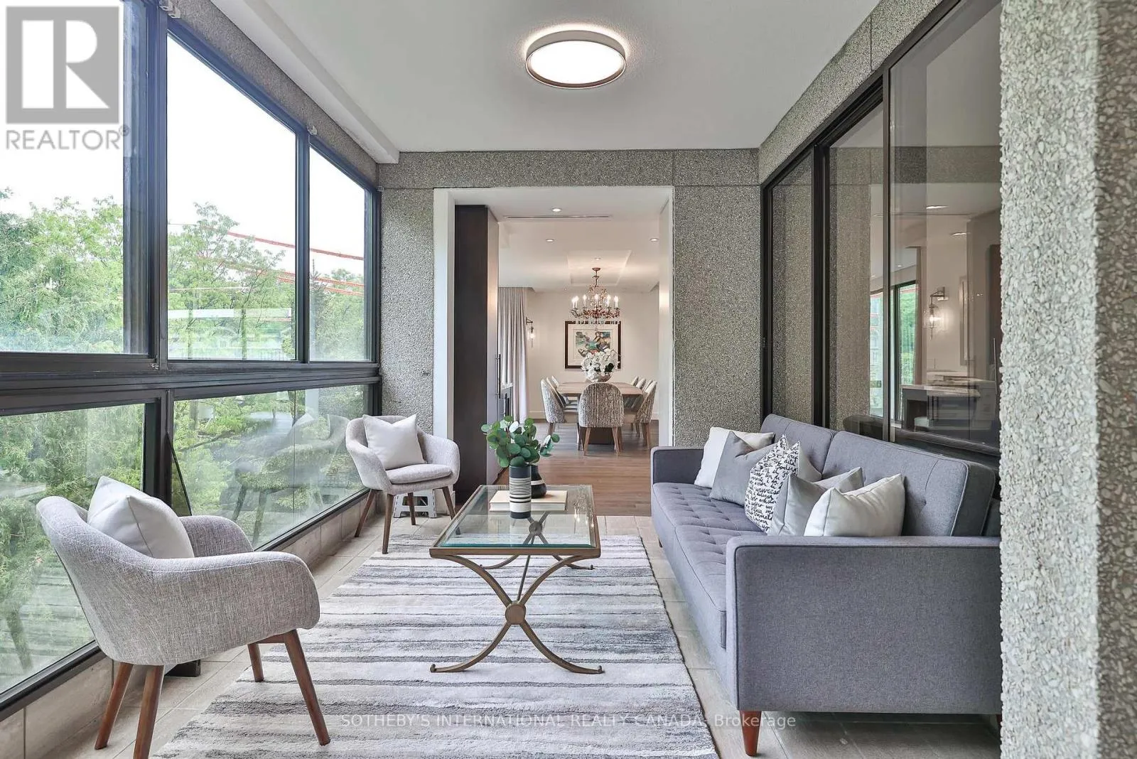 Cross Streets: Spadina Rd/St Clair Ave West. ** Directions: Please, follow you GPS. Welcome to Suite 405 at 342 Spadina Road, where luxury and comfort meet in the heart of Forest Hill South. This exquisite 2,534 sq. ft. condo including sunroom in a boutique 20-unit building has been completely reimagined, offering a modern, turnkey lifestyle for discerning buyers. As you step inside, you'll be captivated by the abundant natural light streaming through floor-to-ceiling windows. The open-concept layout showcases breathtaking views of downtown Toronto and lush treetops. European wide-plank hardwood floors, architectural ceilings with indirect lighting, & custom finishes create a sophisticated ambiance perfect for both entertaining and quiet evenings at home. The chef's kitchen is a showstopper with custom painted finish & rift-cut oak cabinetry, premium quartz counters and backsplash, and top-of-the-line Jennair appliances including a 36" induction cooktop, twin fridge/freezer columns, convection ovens, & an under counter dual temperature wine fridge. A large island, ultra-quiet Bosch dishwasher, indirect lighting & a sleek Jennair downdraft venting system add to the seamless functionality & clean sightlines. Relax in the luxurious living room featuring a stunning slab quartz feature wall, Evonik frameless electric fireplace, & floating oak shelves. The serene primary suite offers tree-top views, custom walk-in closet, spa-like ensuite featuring a Bain Ultra tub, heated floors, & premium Kohler fixtures. The sunroom/terrace provides a tranquil 240 sq. ft. retreat, perfect for morning coffee or evening cocktails. Additional highlights include a bright laundry room, two owned parking spaces, an owned locker room, & building amenities like such as a concierge, party room, gym, EV-ready charging capability & convenient above grade visitor parking. Enjoy an unbeatable location, steps from Forest Hill Village, transit and top private schools. Suite 405 is an invitation to live life beautifully in one of Toronto's most coveted neighbourhoods. (id:27476)
